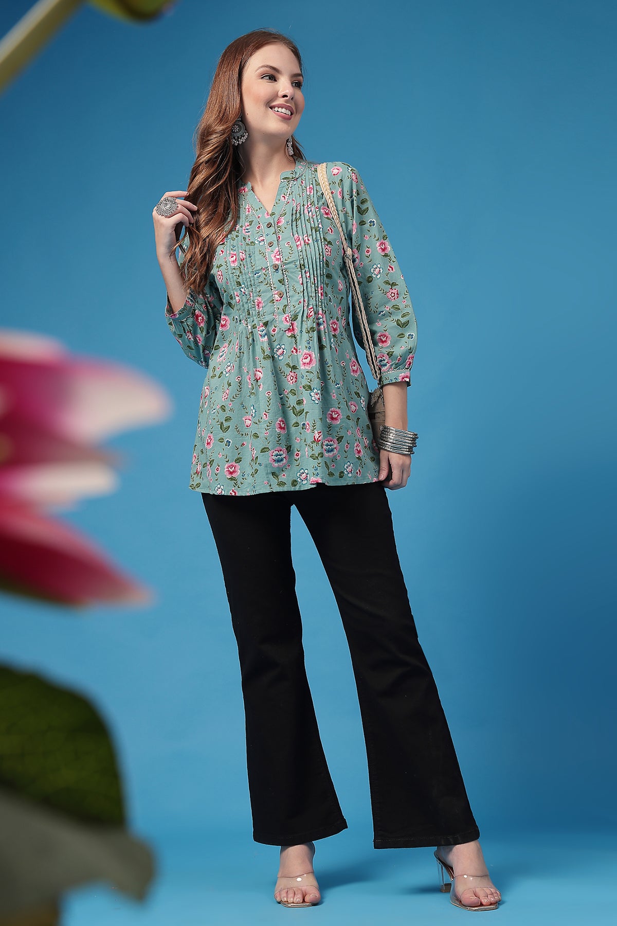 Pair Sitara with silver jhumkas, denim, or juttis — dress her up or keep her casual. Either way, she’ll light up your celebrations.