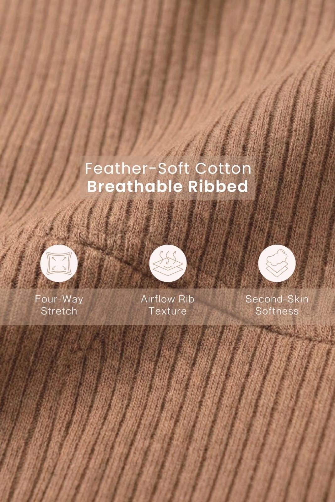 Designed to stay steady and dependable, this ribbed mom set pairs breathable comfort with everyday support. The fixed-pad bra features soft modal lining for a gentle feel against sensitive skin, while built-in padding stays securely in place. Easy pull-and-feed access keeps nursing simple and fuss-free.