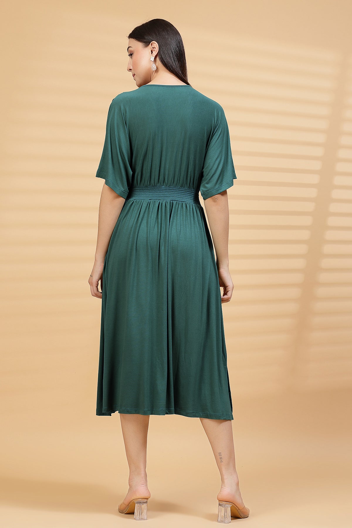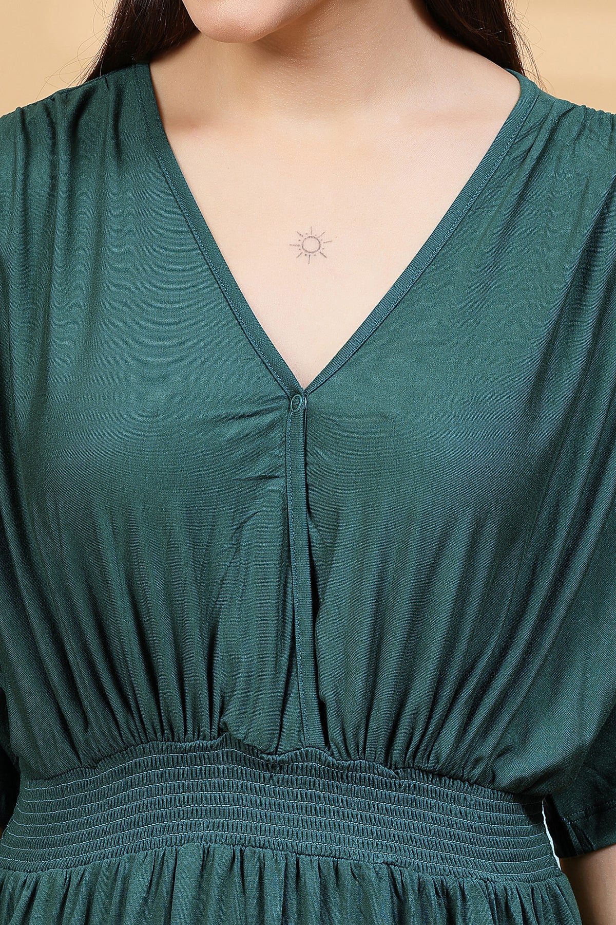 Deep Emerald Solid Smocked Waist Zipless Feeding Dress