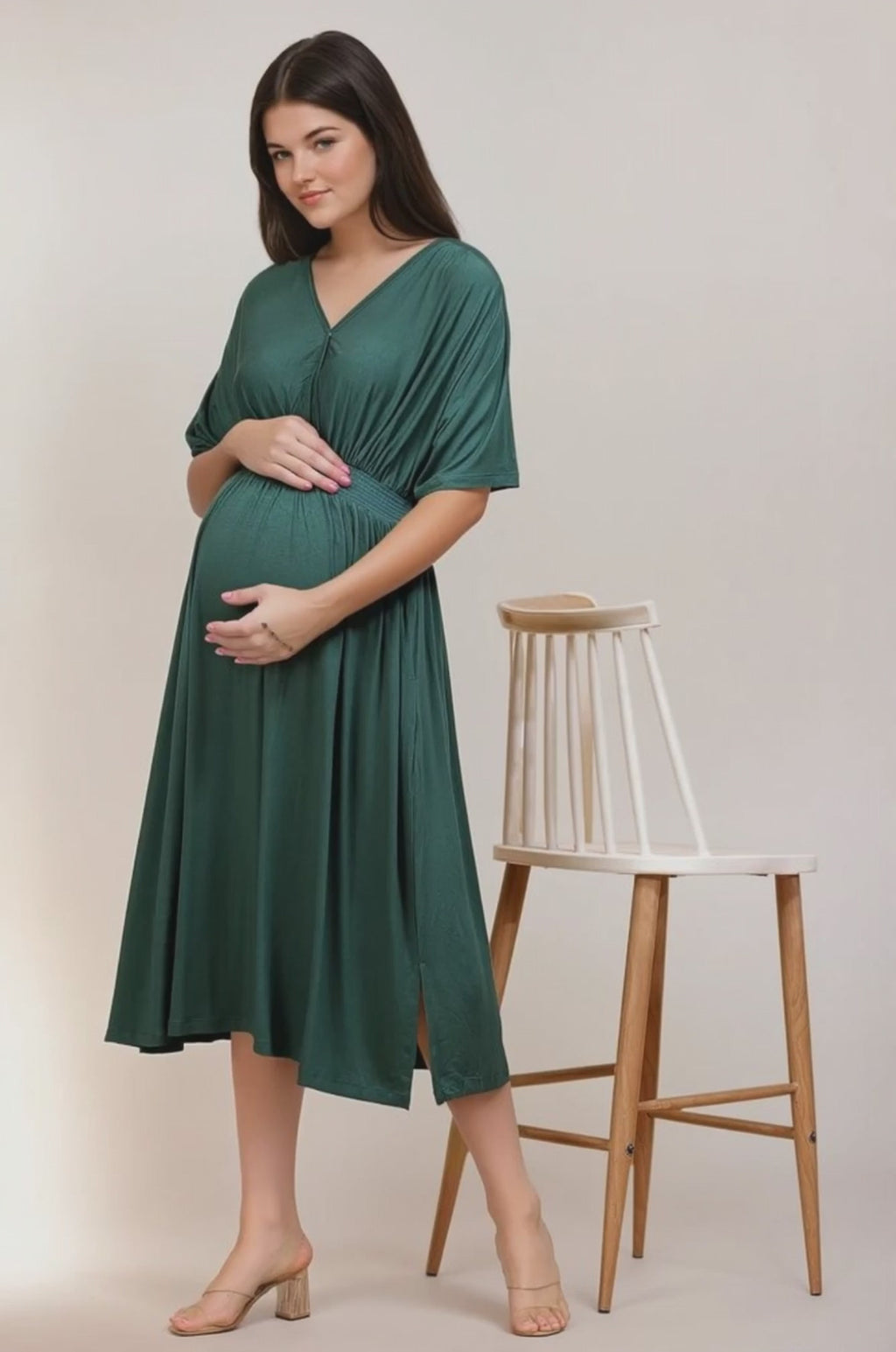 The Solid Smocked Waist Zipless Feeding Dress is crafted from 95% viscose and 5% elastane fabric. It features an openable surplice V-neck for easy and comfortable breastfeeding, and a smocked elasticated waist to accommodate an expanding belly. With two pockets and a relaxed fit, this dress ensures all-day comfort, making it perfect for both pregnancy and post-pregnancy.
