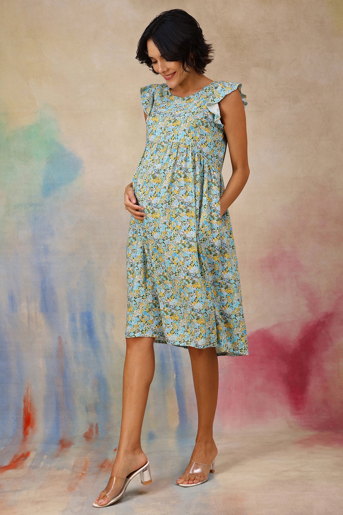 A dress that feels like a walk in a field of flowers . Crafted in soft, breathable cotton, this midi dress is designed to flatter your body through this special journey of yours.