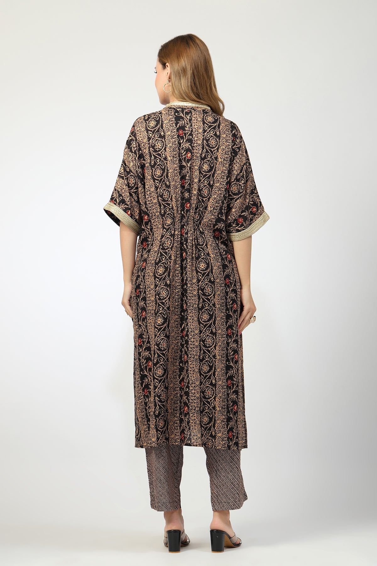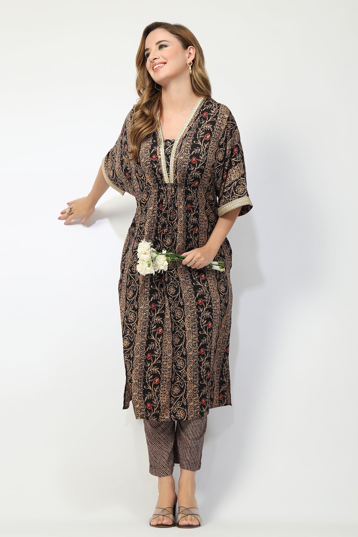 The V-neck design enhances the neckline and gives the kurta dress a flattering, modern silhouette.