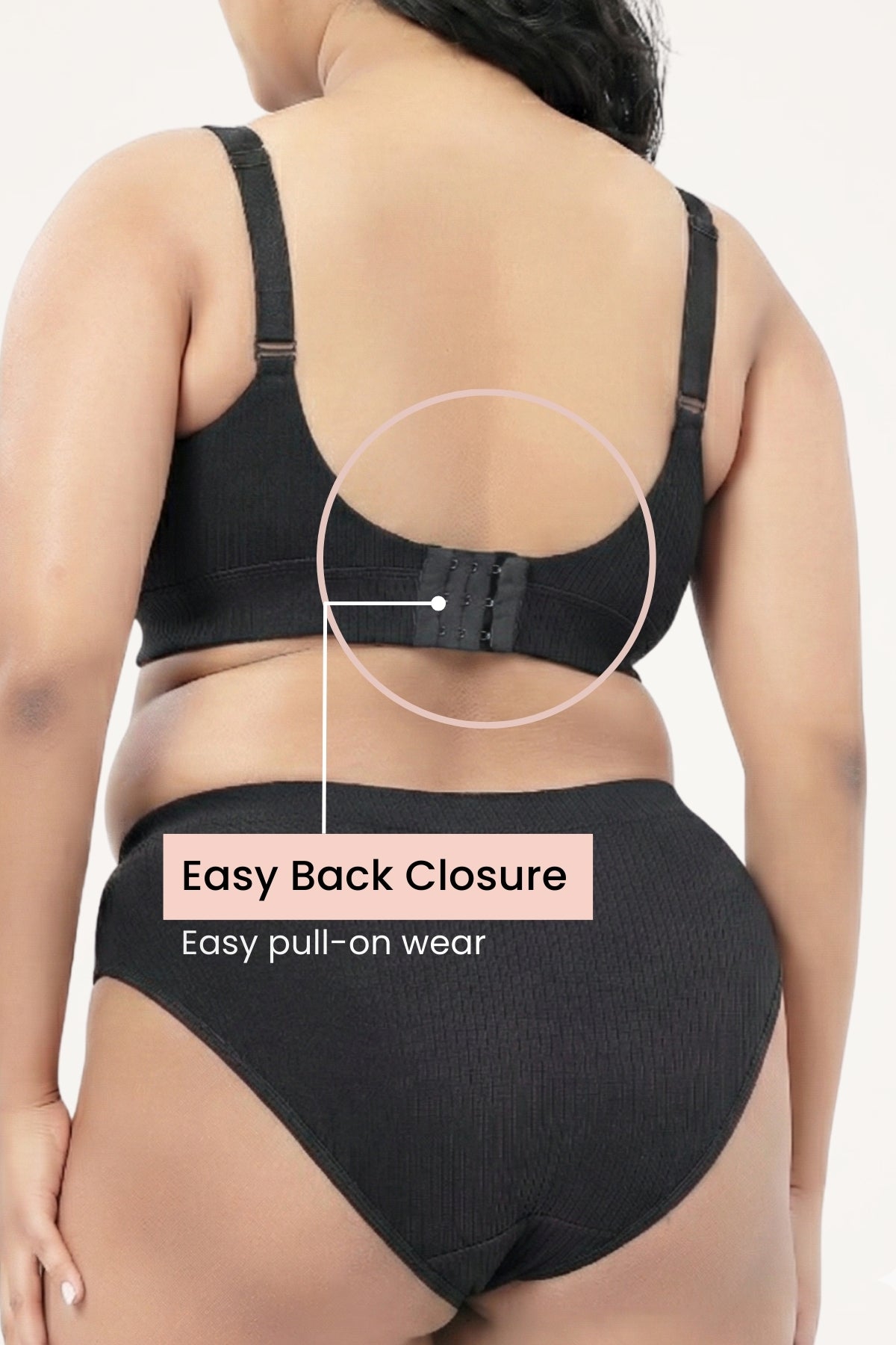Adjustable straps, an easy back closure, and a rash-free, label-free design ensure all-day and all- night comfort.