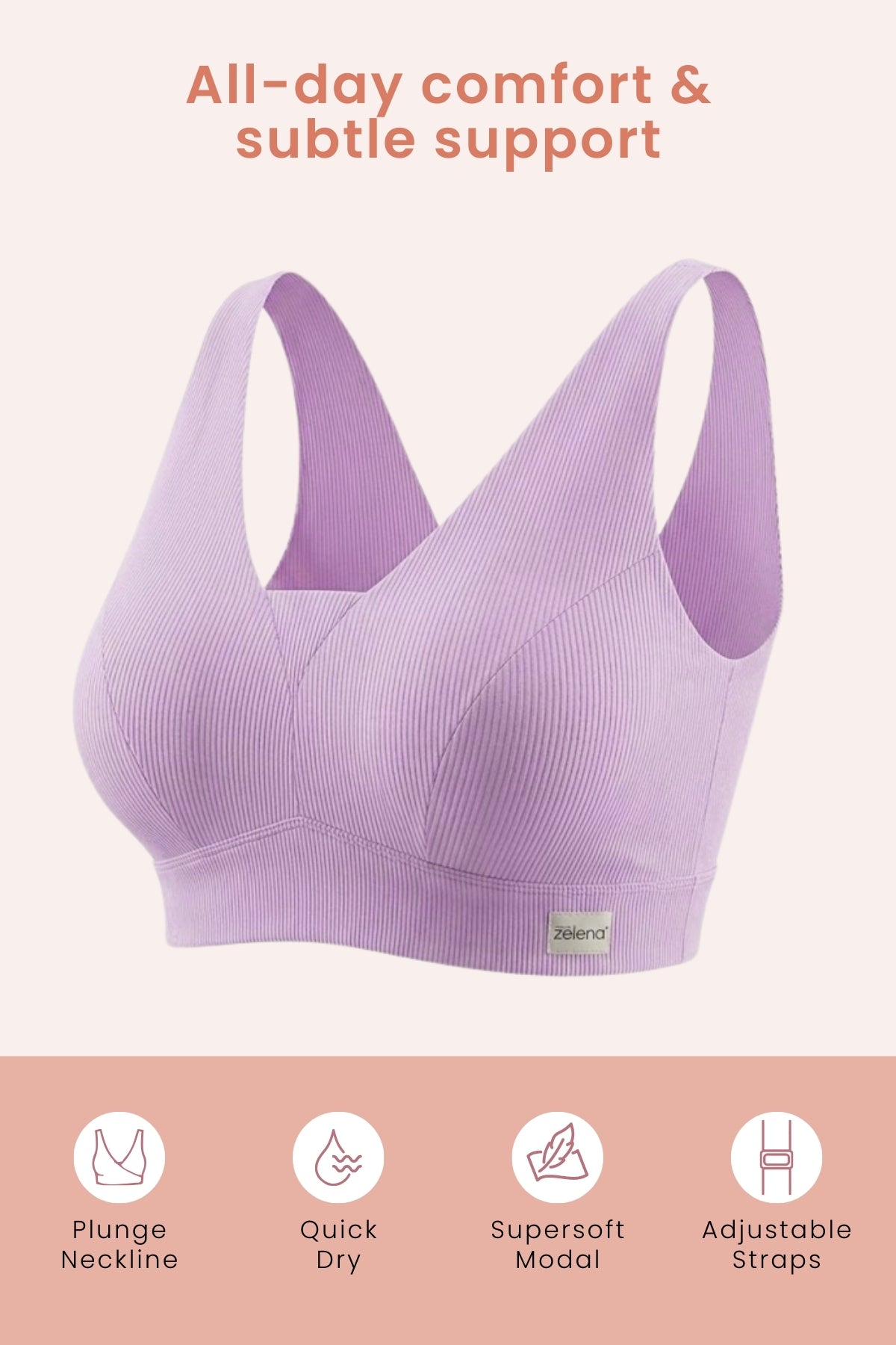 Ribbed Fabric with Modal LiningThe rib texture enhances airflow and helps regulate moisture, while the ultra-soft modal lining feels gentle and soothing on sensitive skin.