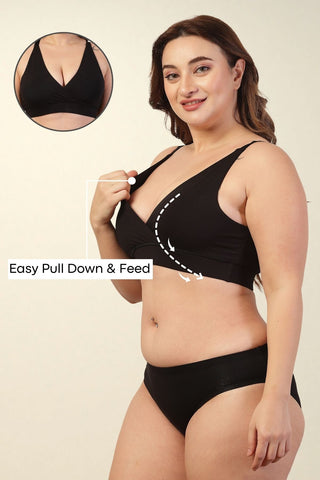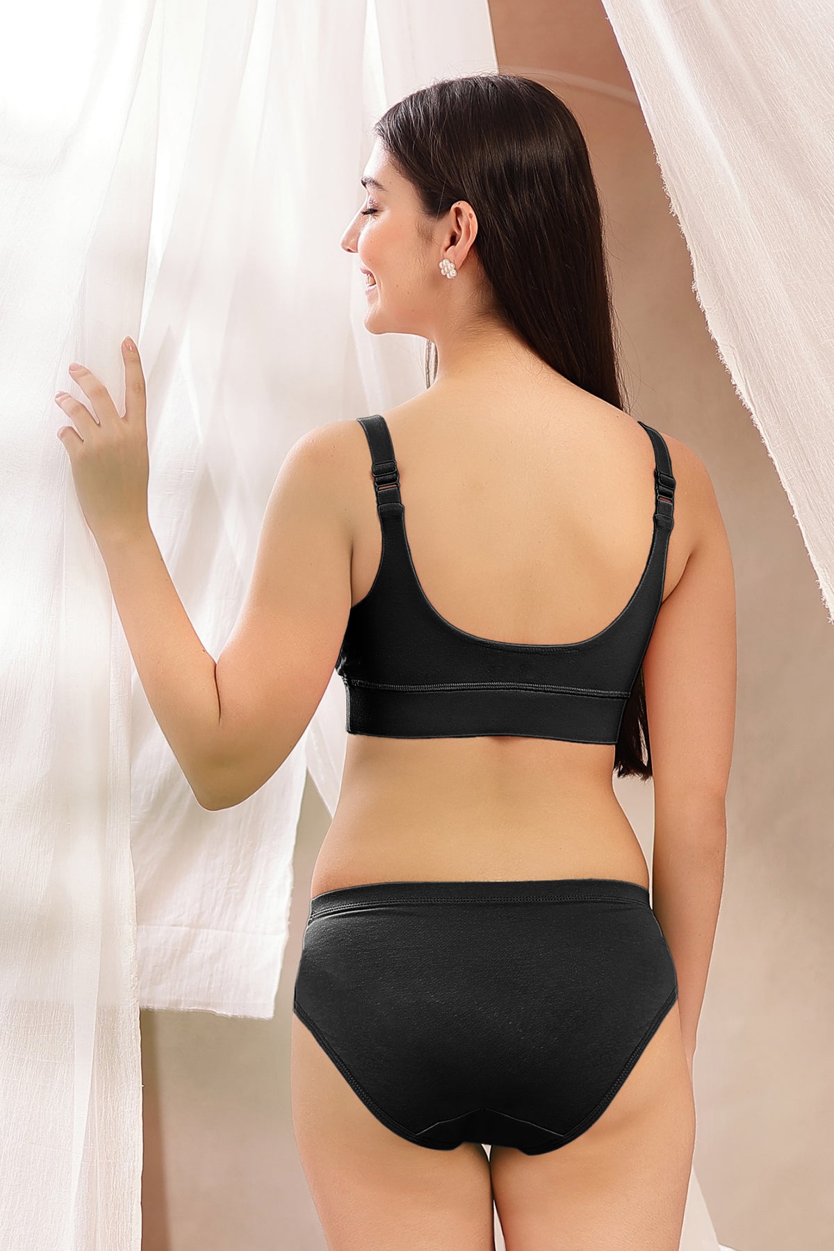 247 Extra Support Cotton Feeding Bra with Adjuster - Black