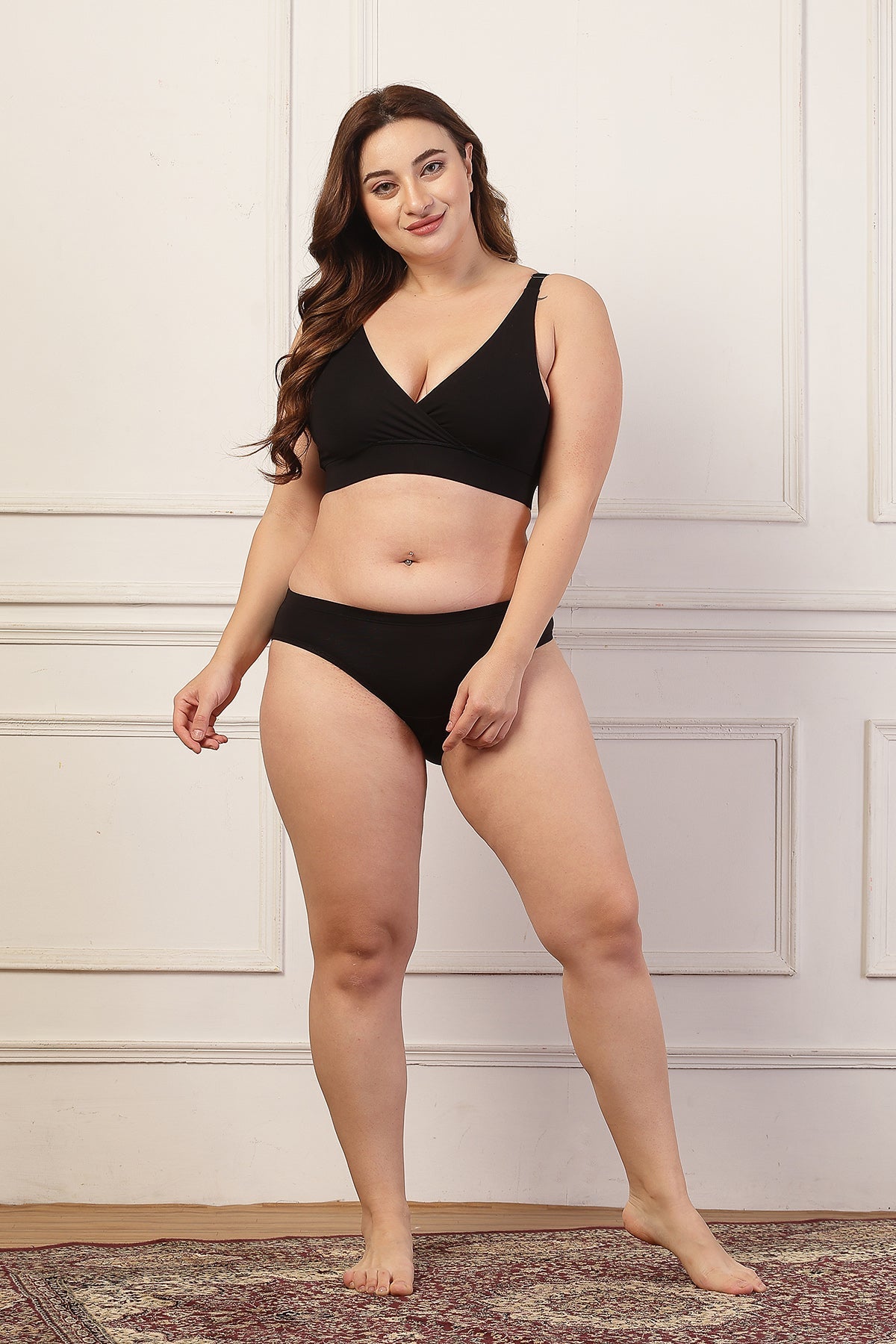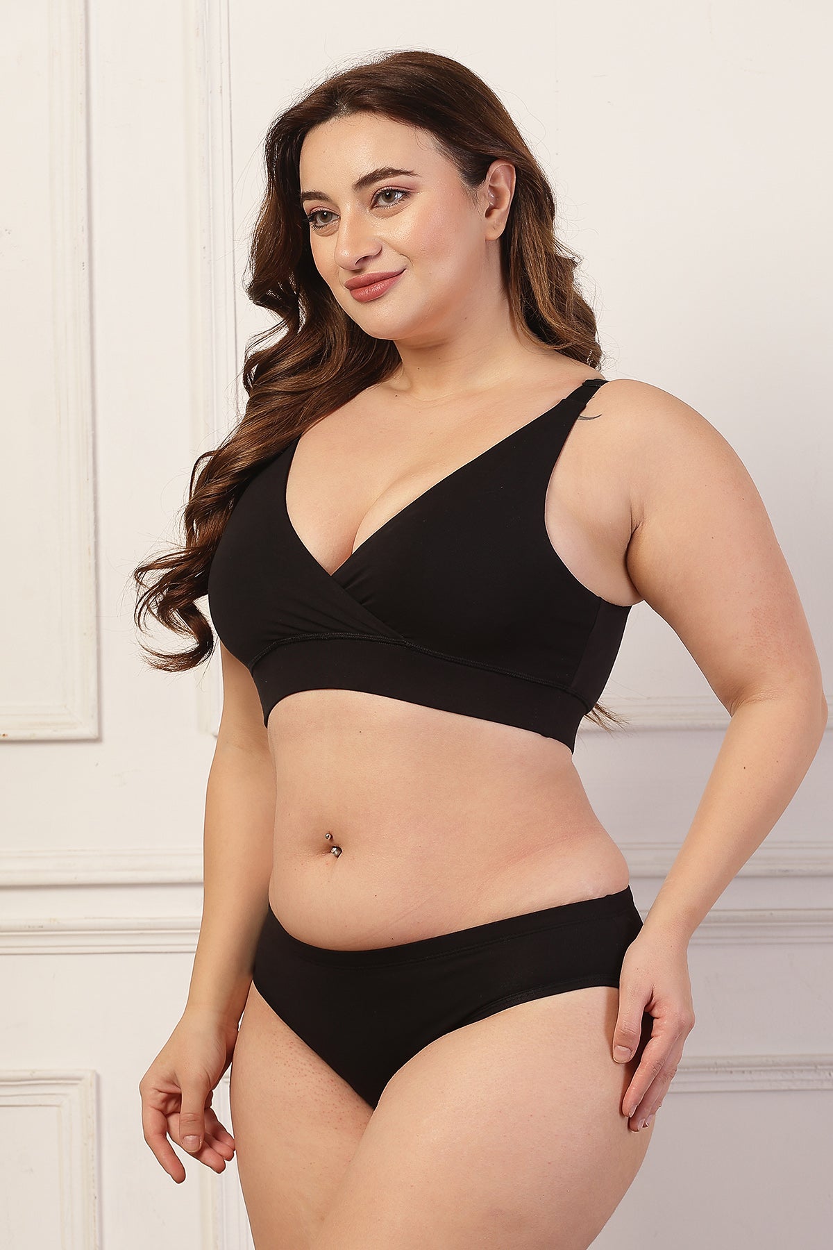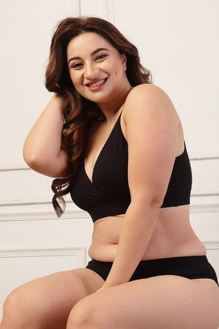We obsessed over this fabric. It’s our super-soft cotton blend with perfect flex - the durable support you need. This black bra was 2x bio-washed, making it velvet-soft on your skin. It's the ultimate coverage bra: non-padded, but with smart side slits for quick padding inserts. Forget the basics. Wear this with quiet confidence.