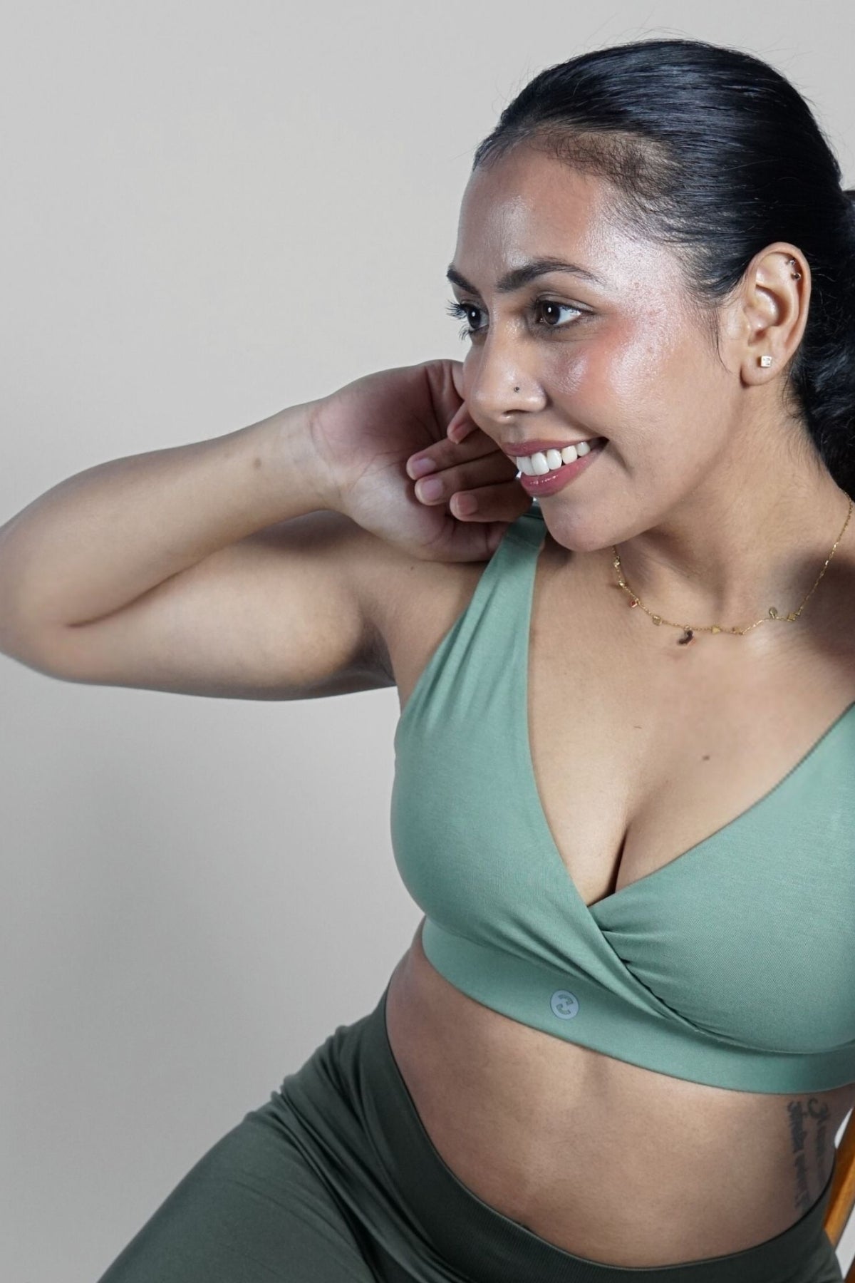 We obsessed over this fabric. It’s our super-soft cotton blend with perfect flex - the durable support you need. This green bra was 2x bio-washed, making it velvet-soft on your skin. It's the ultimate coverage bra: non-padded, but with smart side slits for quick padding inserts. Forget basics. Wear this with quiet confidence.