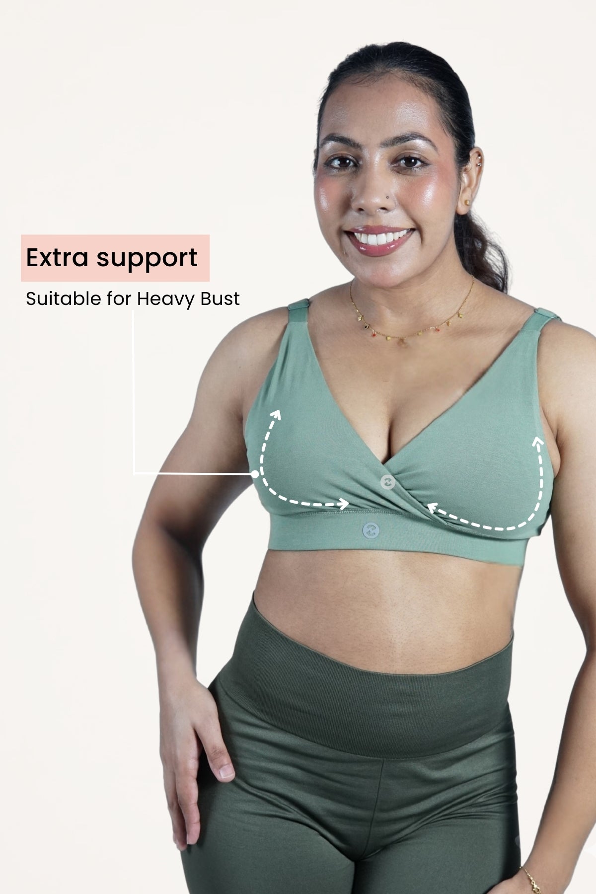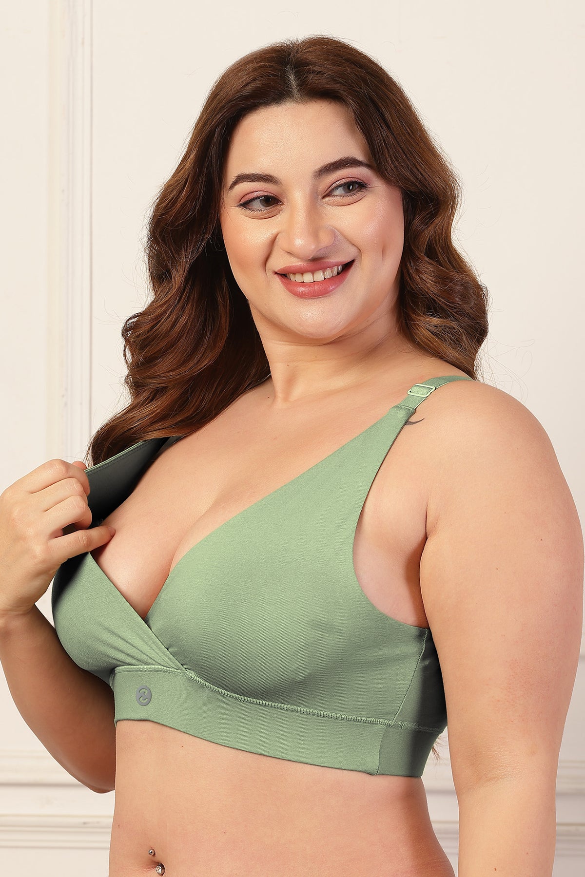 247 Extra Support Cotton Feeding Bra with Adjuster - Medium Green