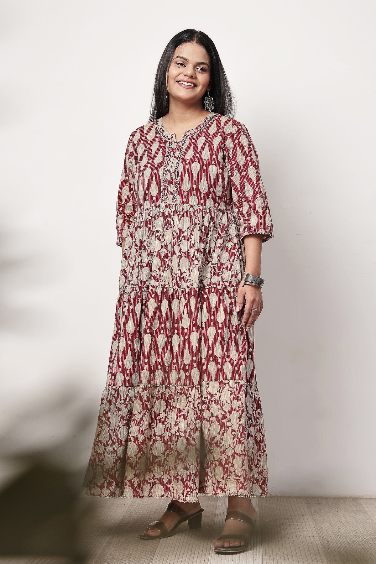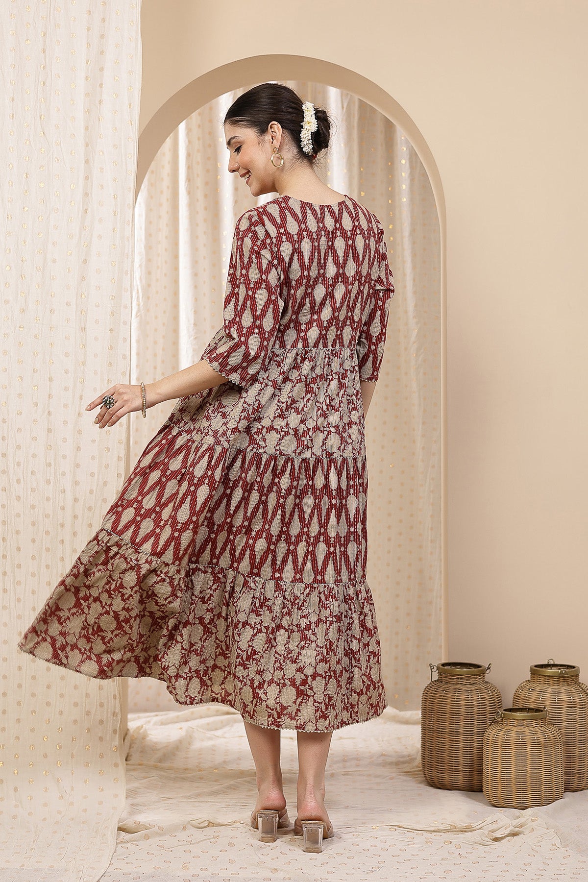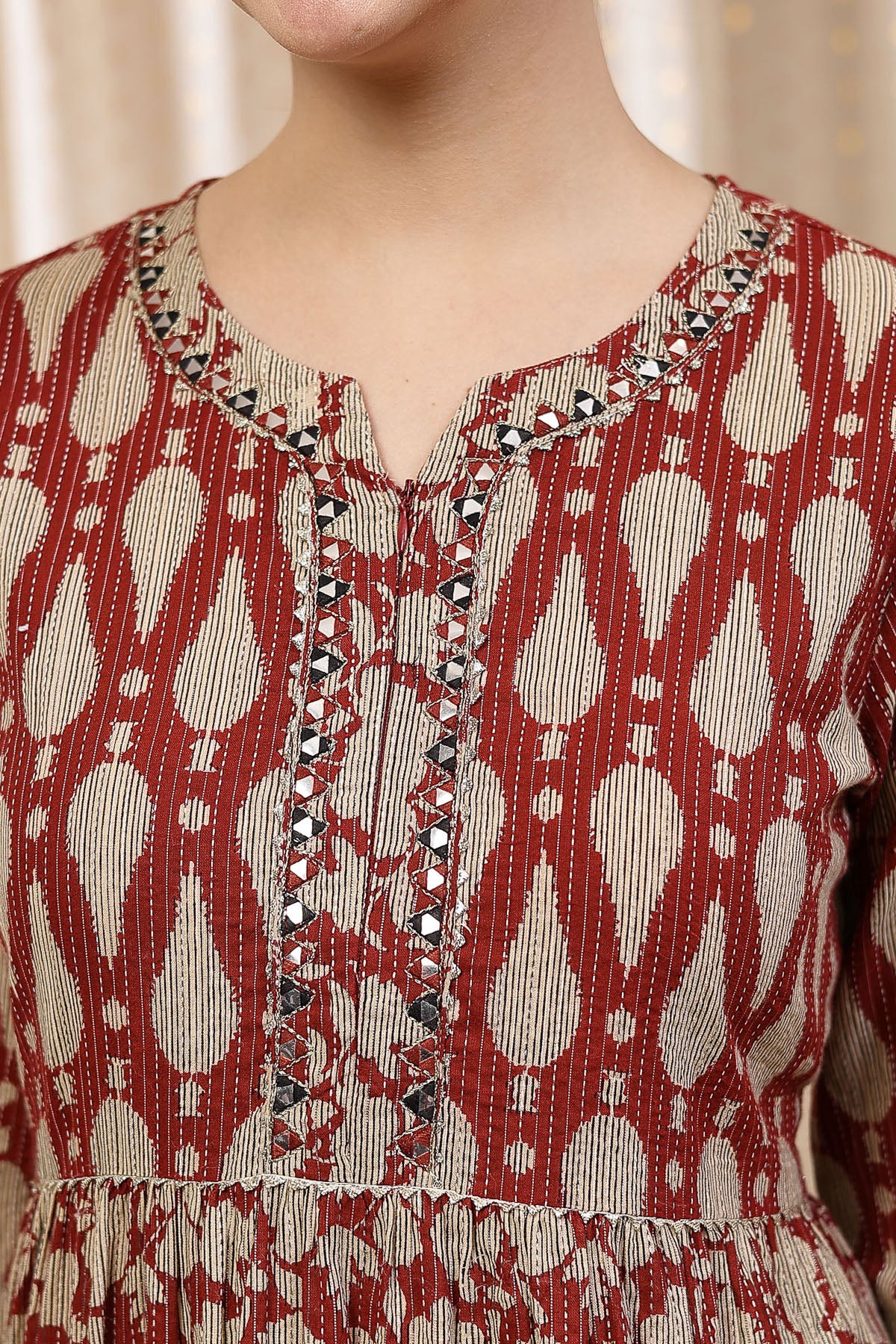 Ethnic Cotton Tiered Maternity Kurti for Feeding - Rust