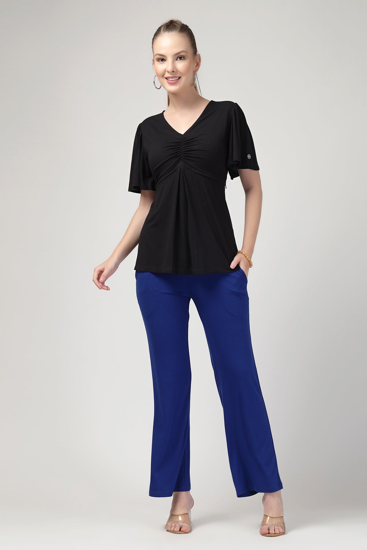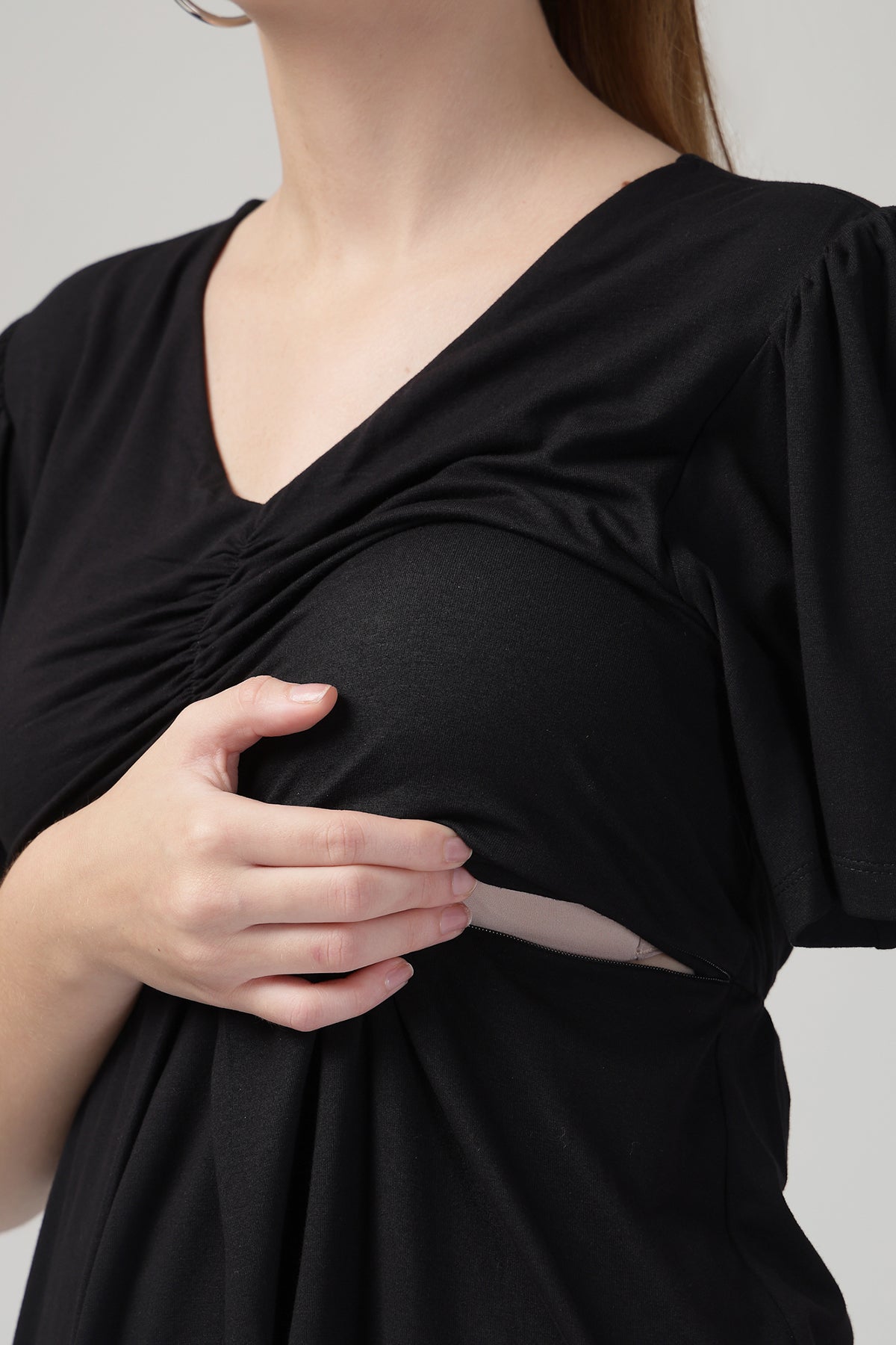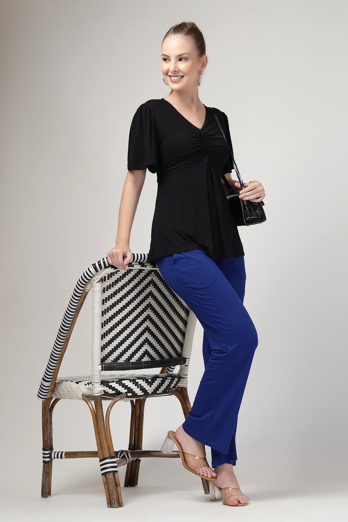 Pair this elegant top with maternity pants or jeans for a chic daytime look. Add minimal jewelry and comfy flats for a relaxed yet refined style — perfect for brunches, casual outings, or cozy home wear.