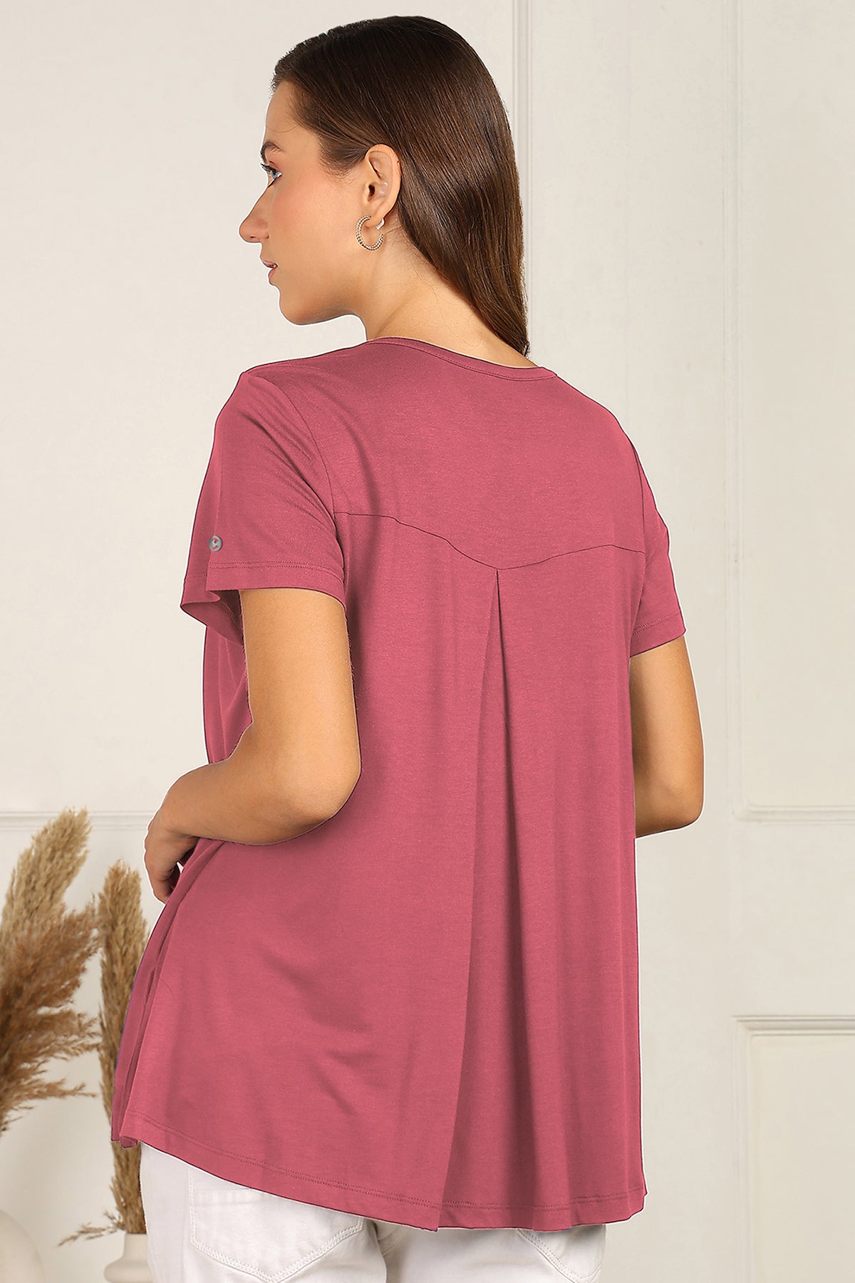 Dusty Rose Front & Back Pleated Zipless Nursing Top