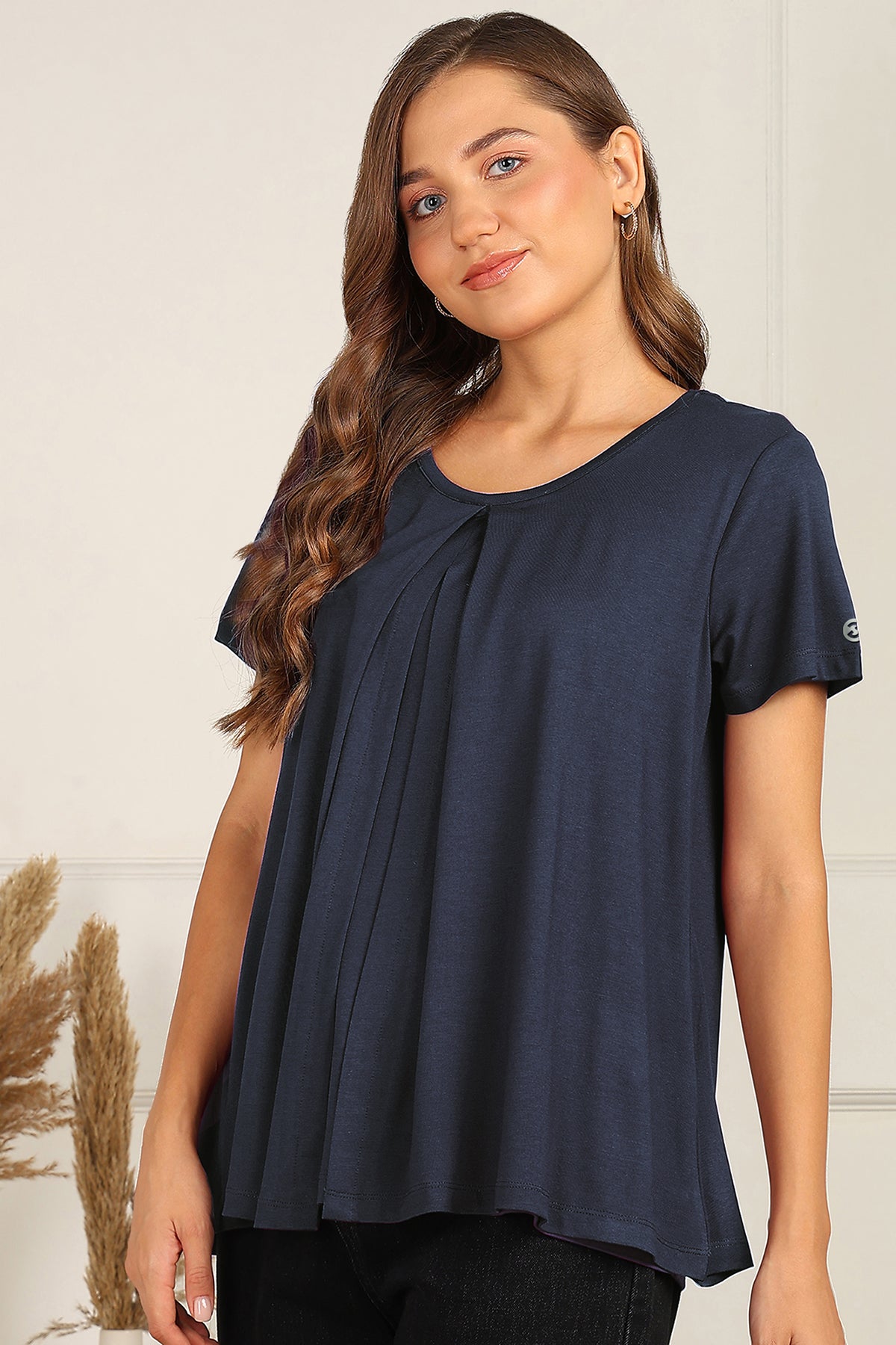 A specially designed nursing top offering discreet breastfeeding access, perfect for maintaining privacy and comfort. Made with 4-way stretch fabric, it ensures ease of movement during pregnancy and beyond. The lightweight, bio-washed Viscose yarn with elastane provides a soft, relaxing feel. The fabric's super recovery feature keeps the garment in shape, and the color lock technology ensures no fading after multiple washes.