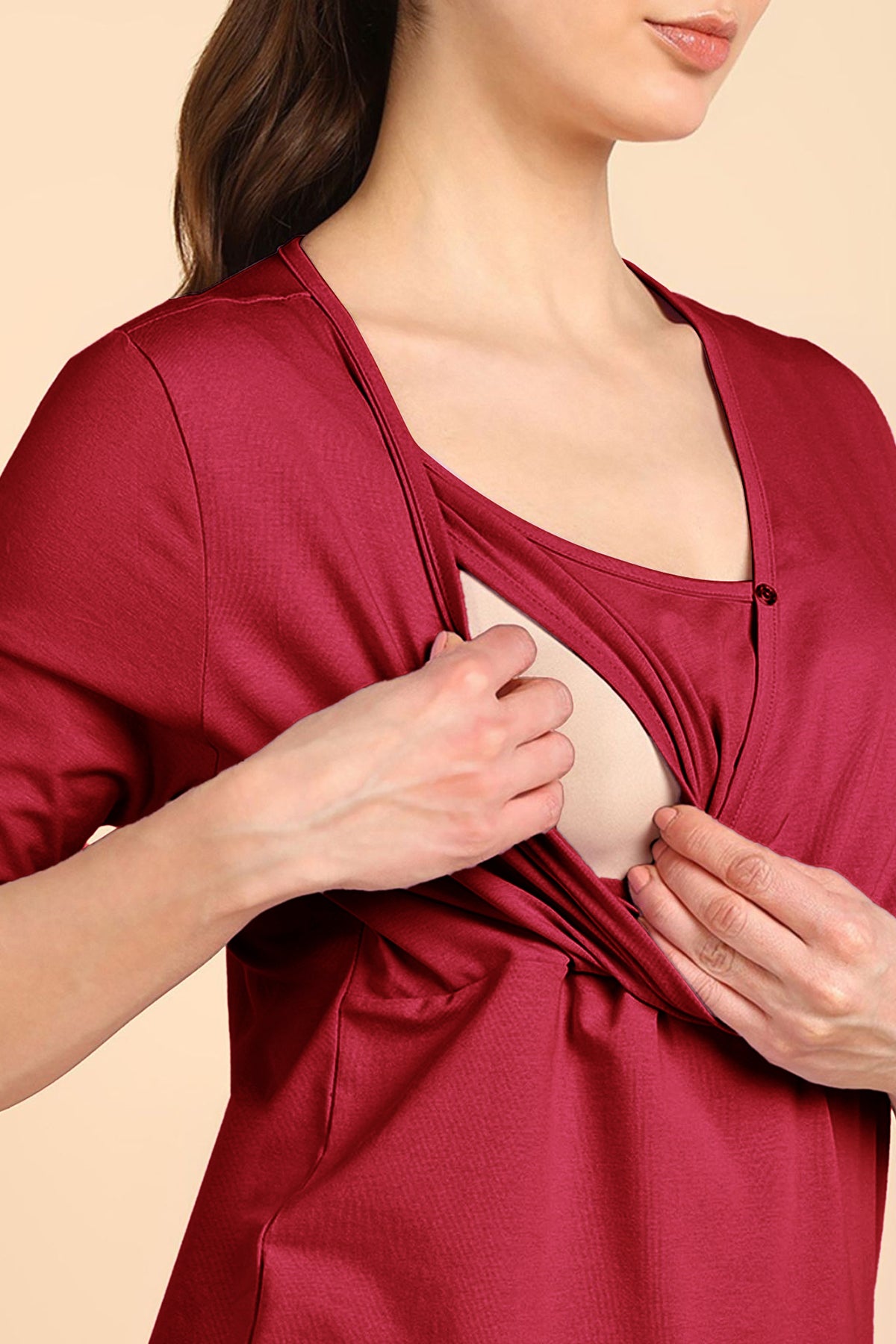 247 Zactive™ Deep Red Zipless Maternity Feeding Top