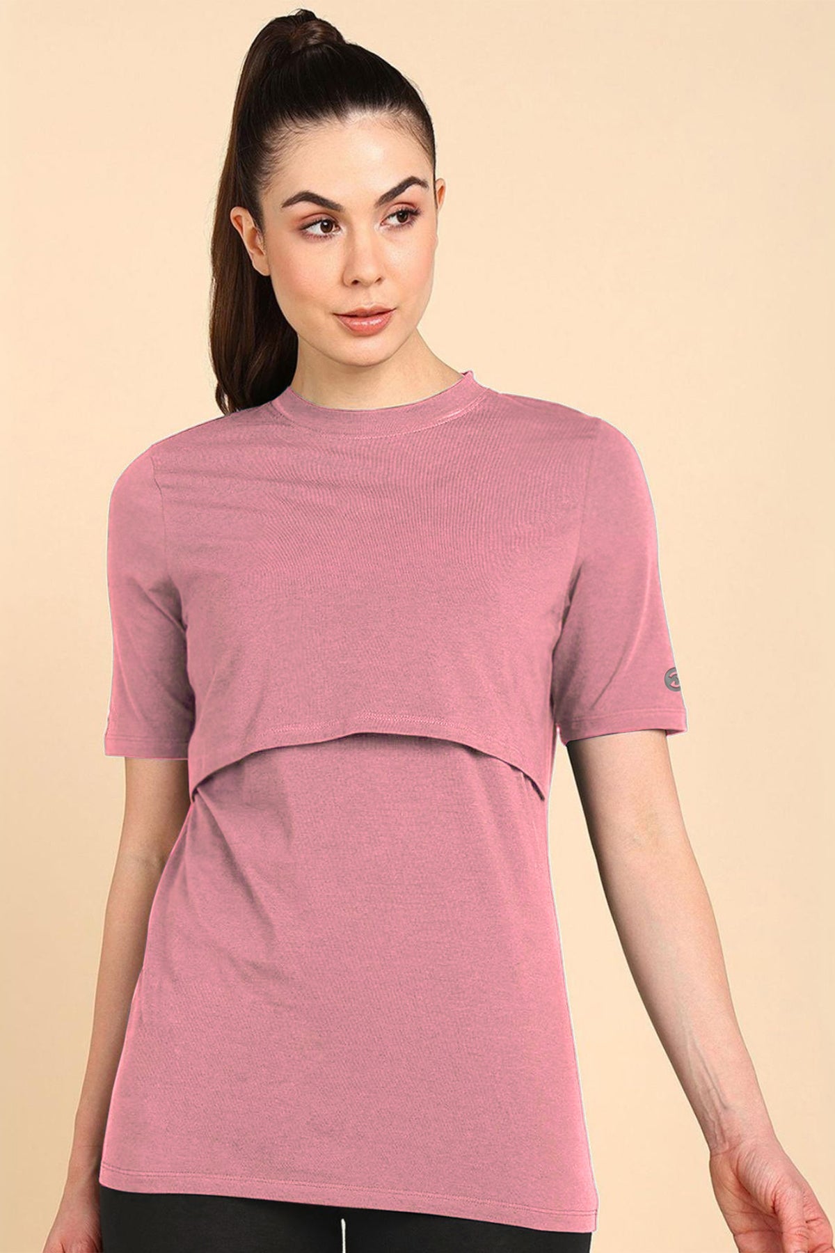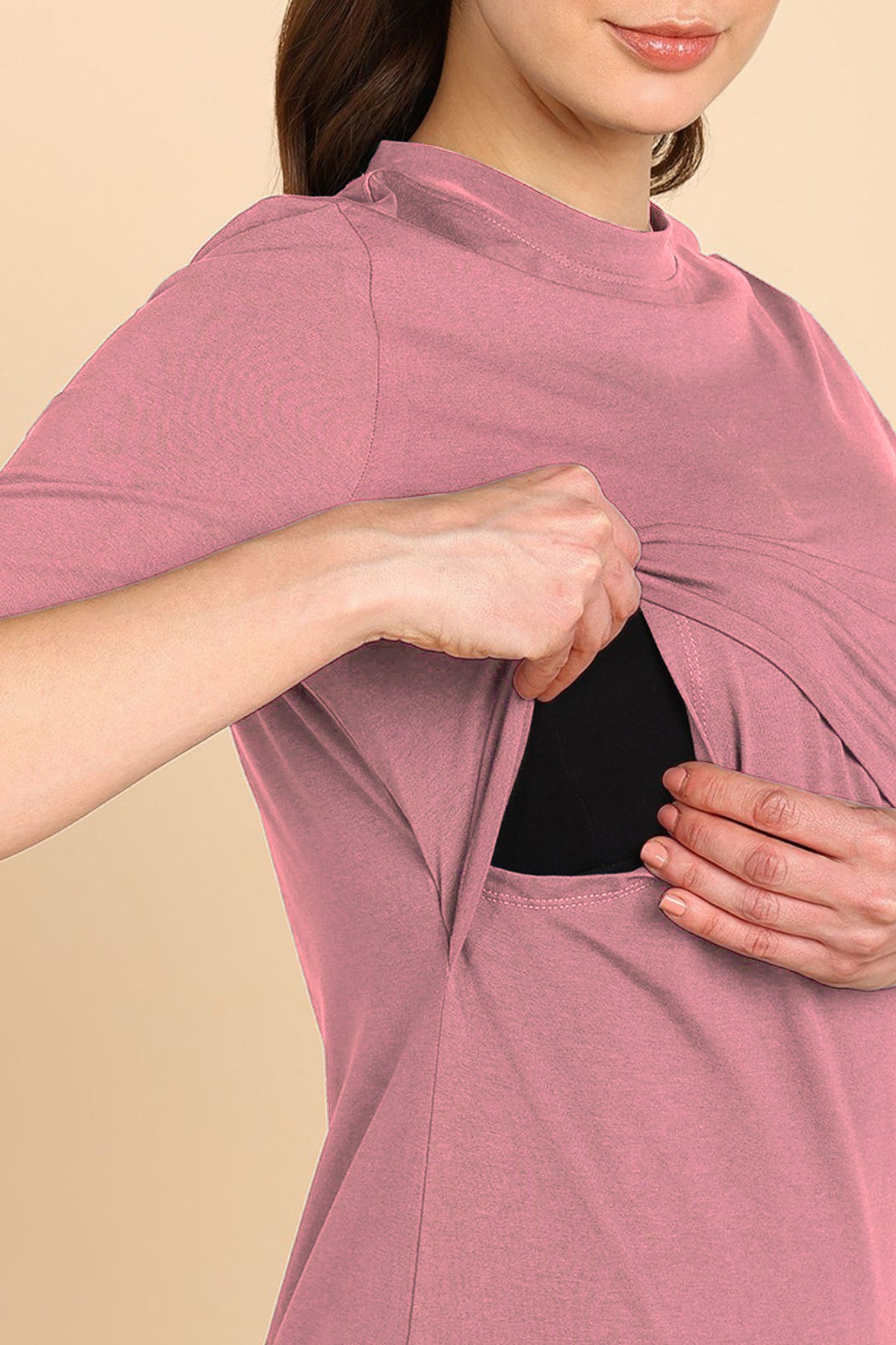 Deep Salmon Round Neck Zipless Maternity Feeding Top