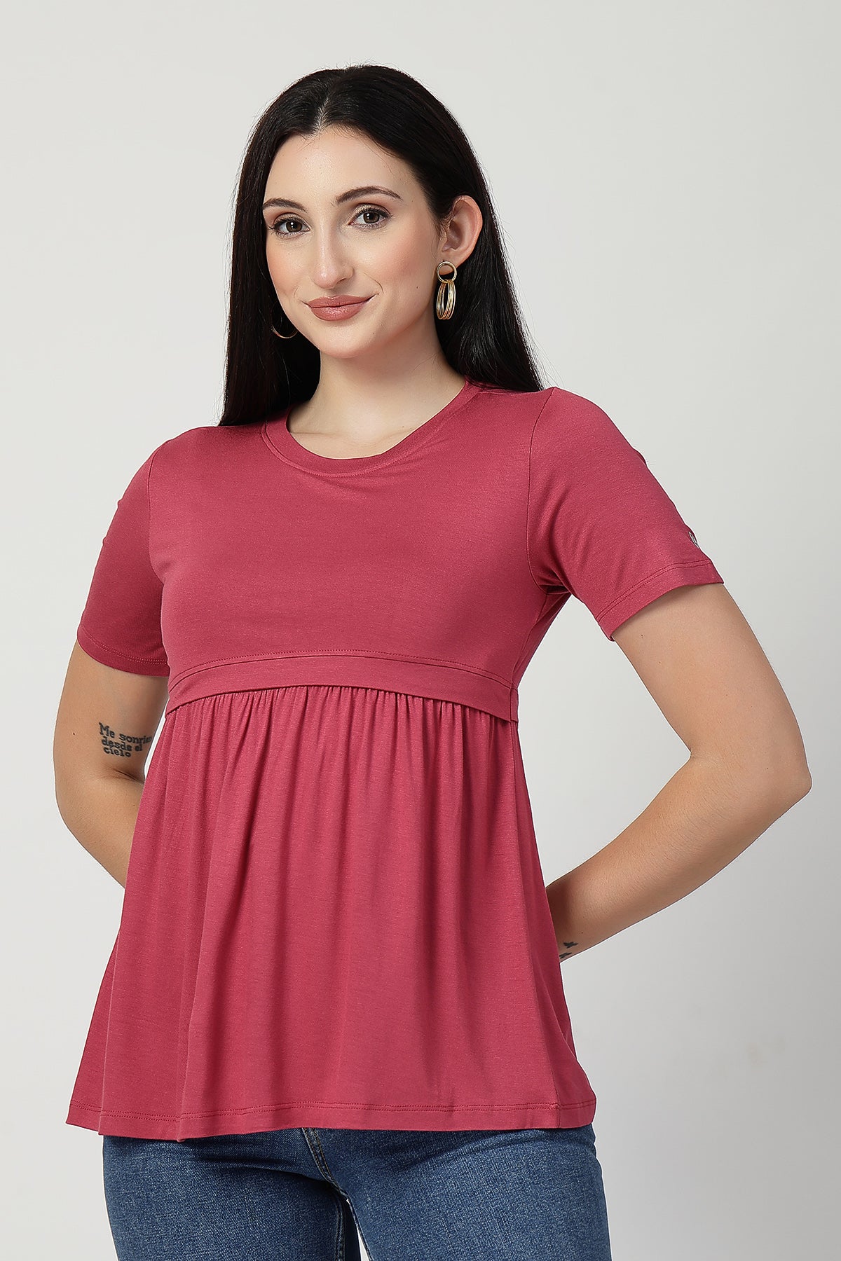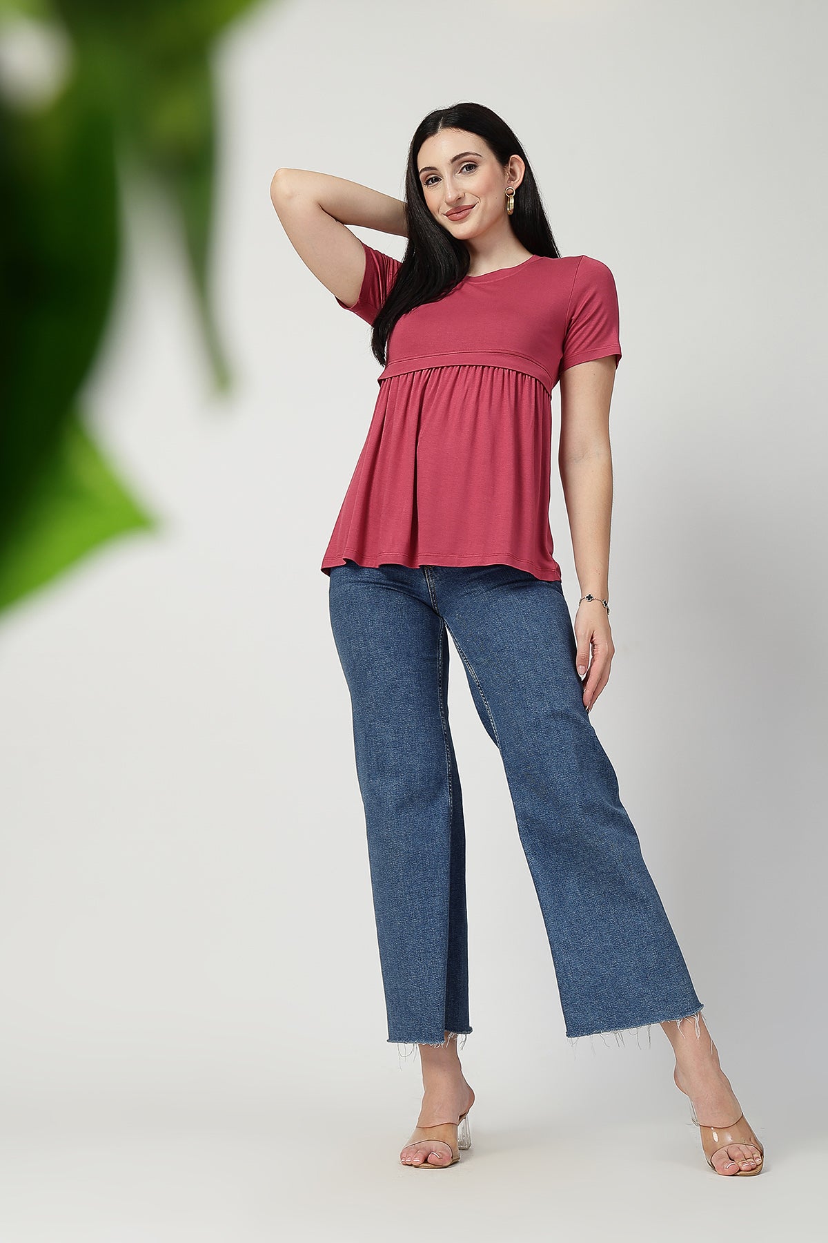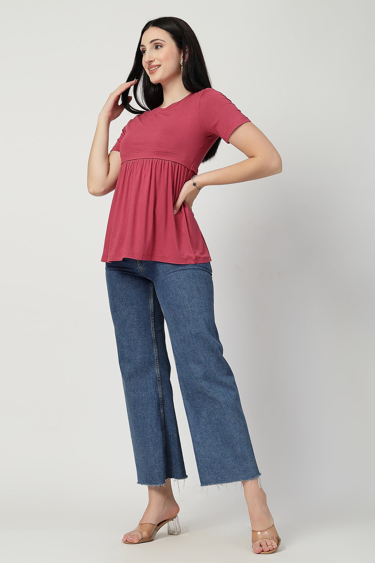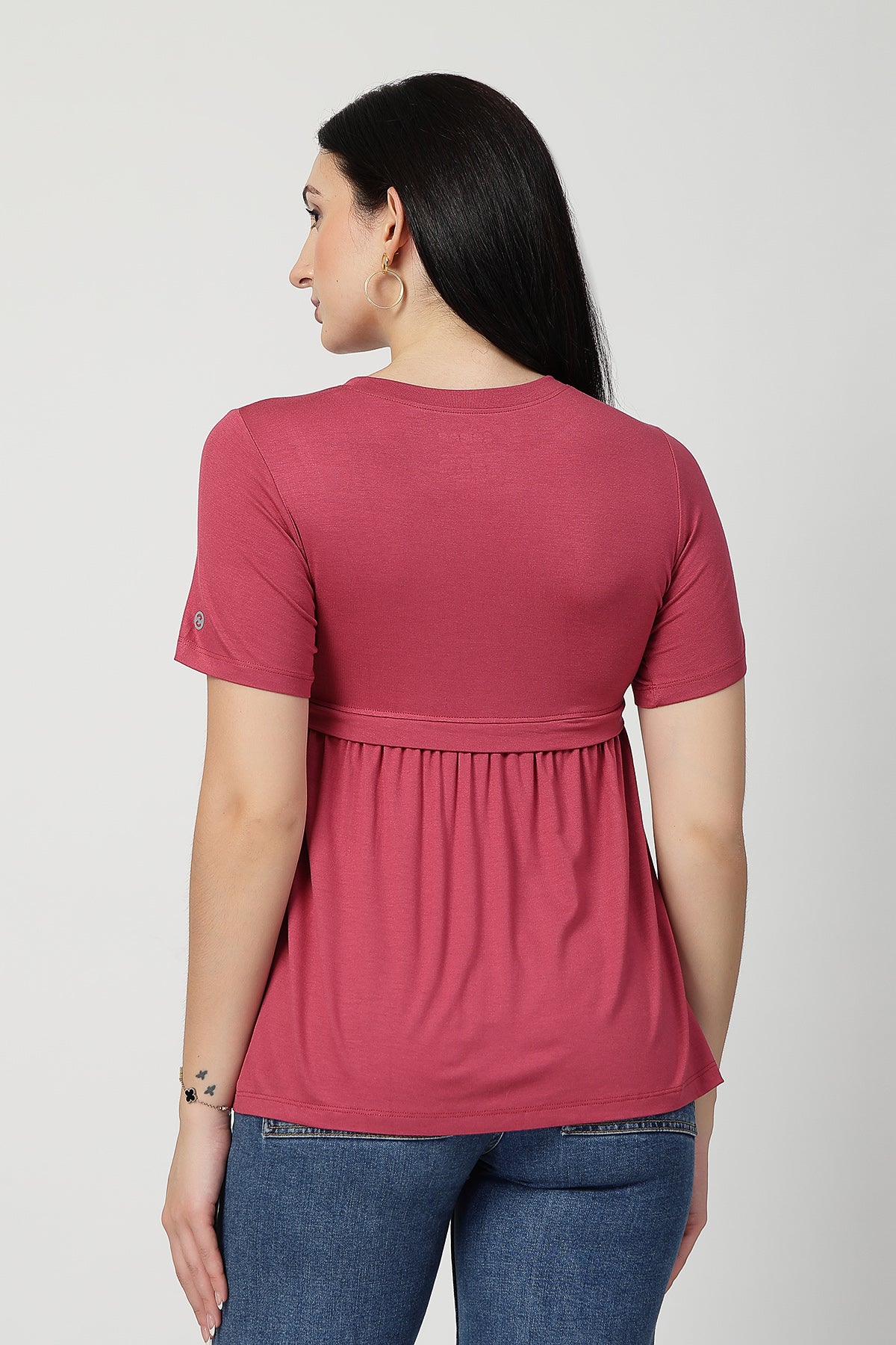 Dusty Rose Maternity Zipless Feeding Gathered Top