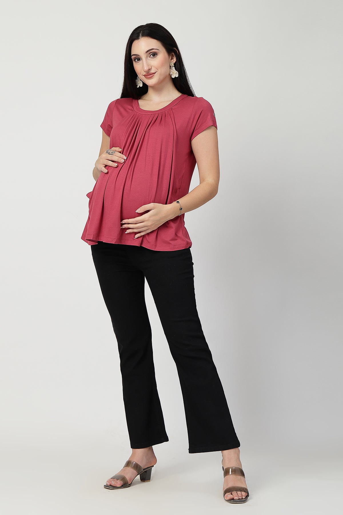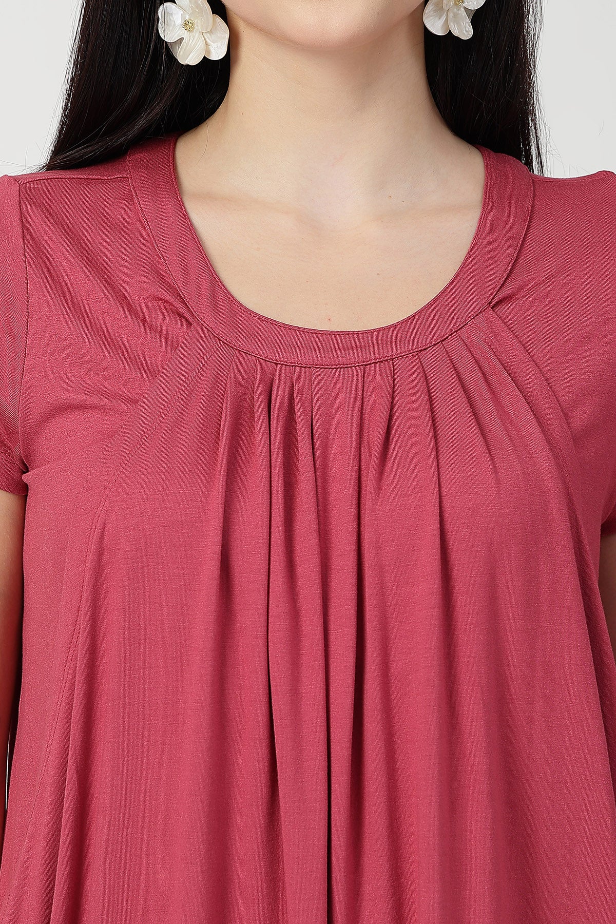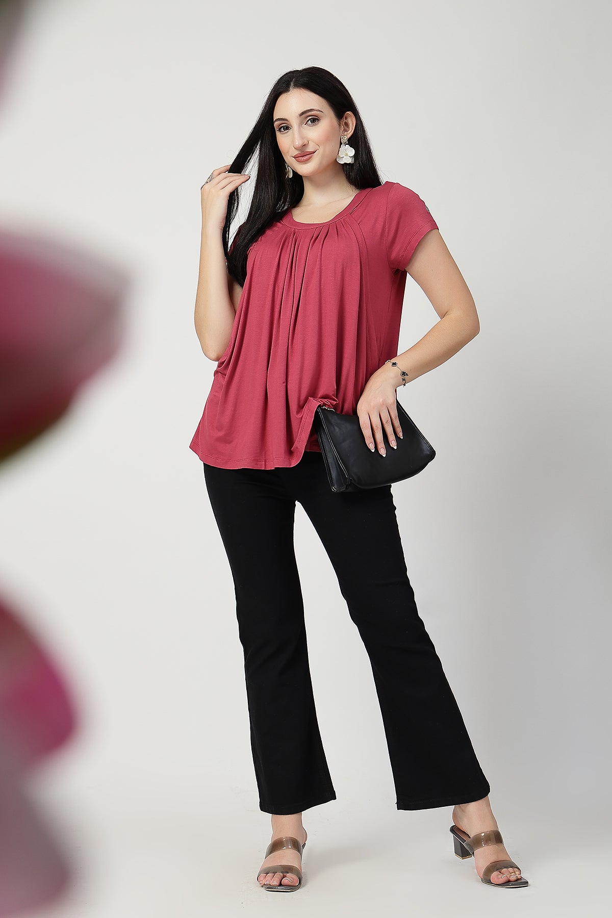 Deep Rose Solid Smocked Waist Zipless Feeding Dress