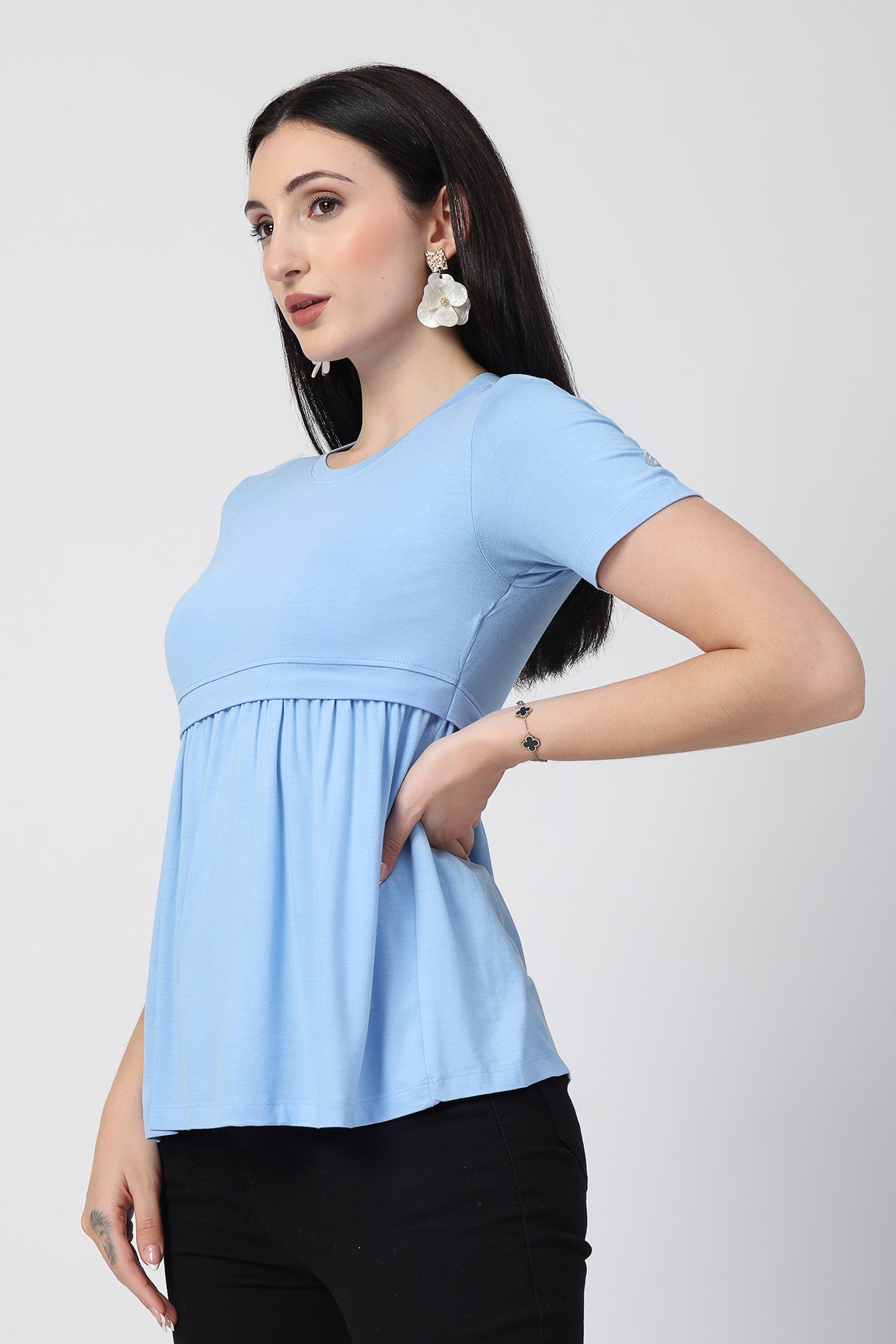 Ice Blue Maternity Zipless Feeding Gathered Top