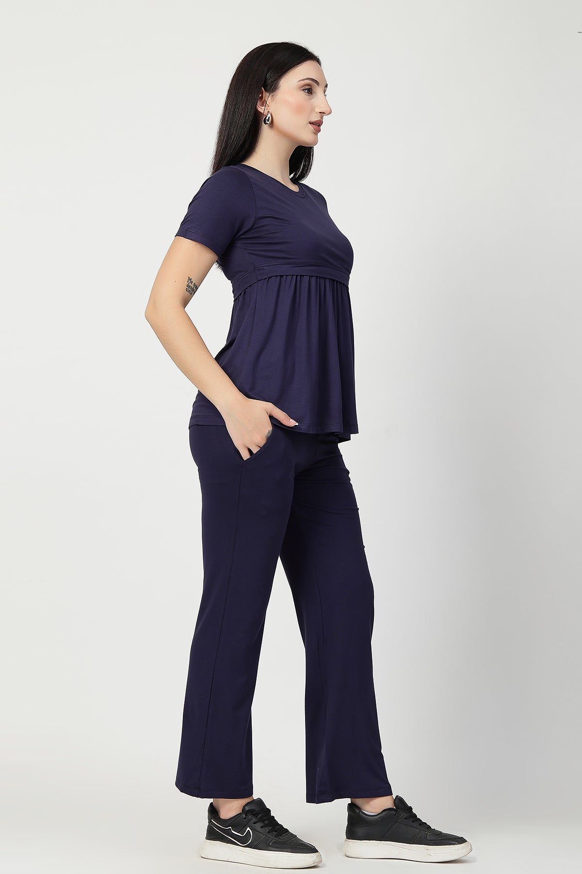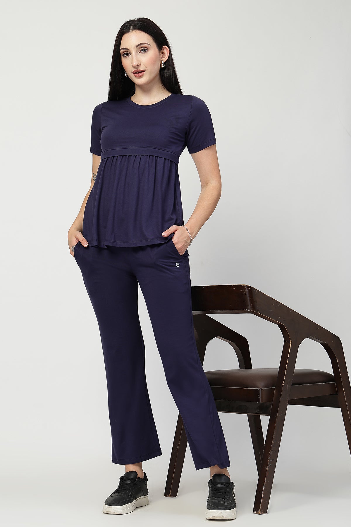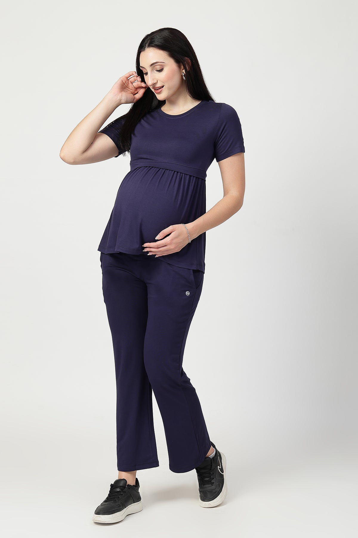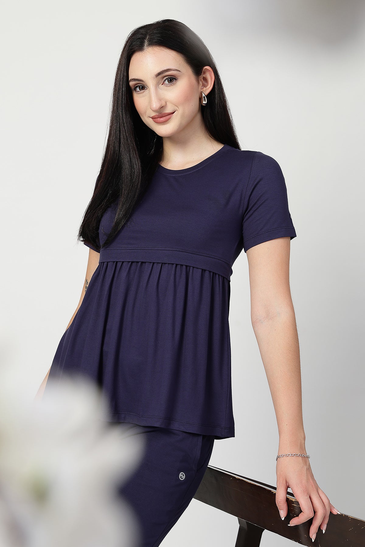 Pair this nursing top with maternity leggings or flared pants for a relaxed yet refined look. Add a pair of earrings or sliders for an effortlessly stylish everyday outfit—ideal for home, outings, or casual meetups.