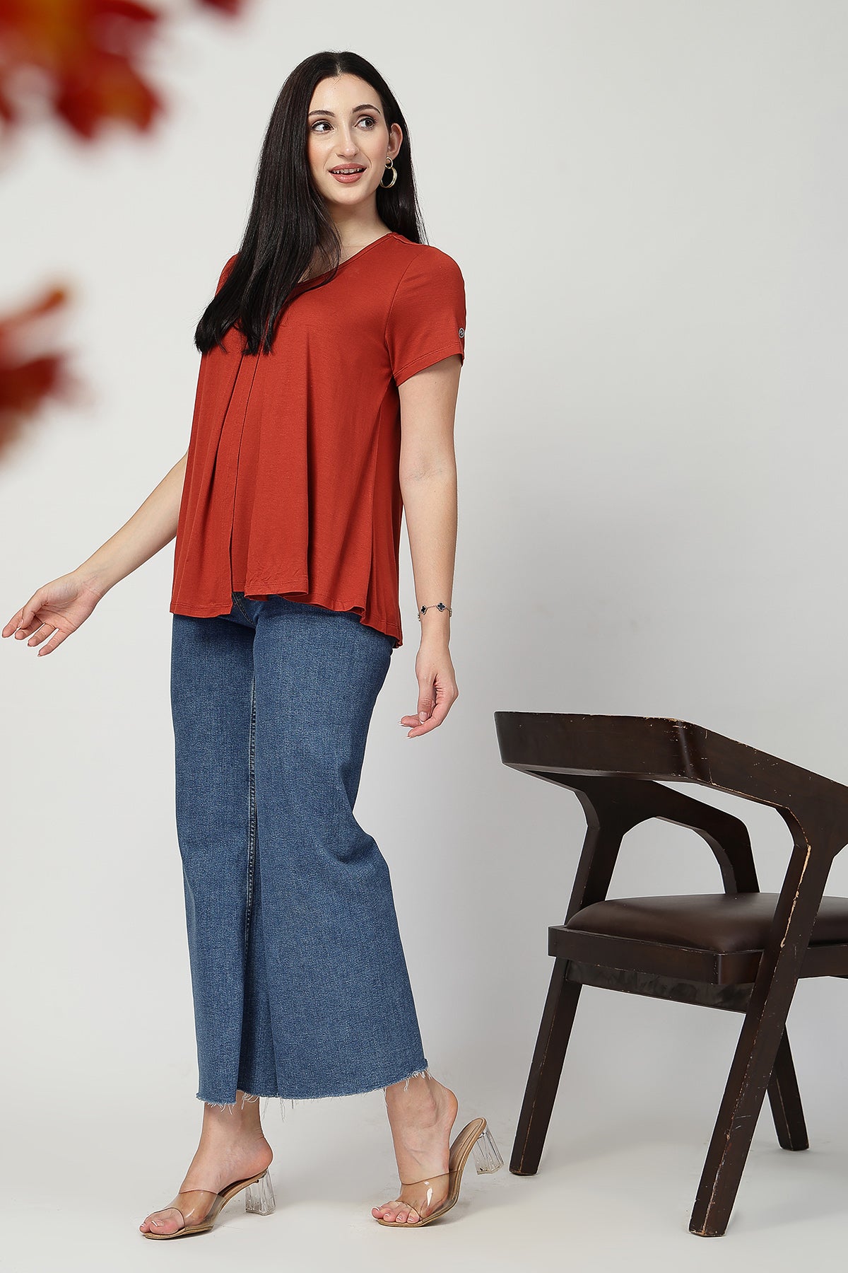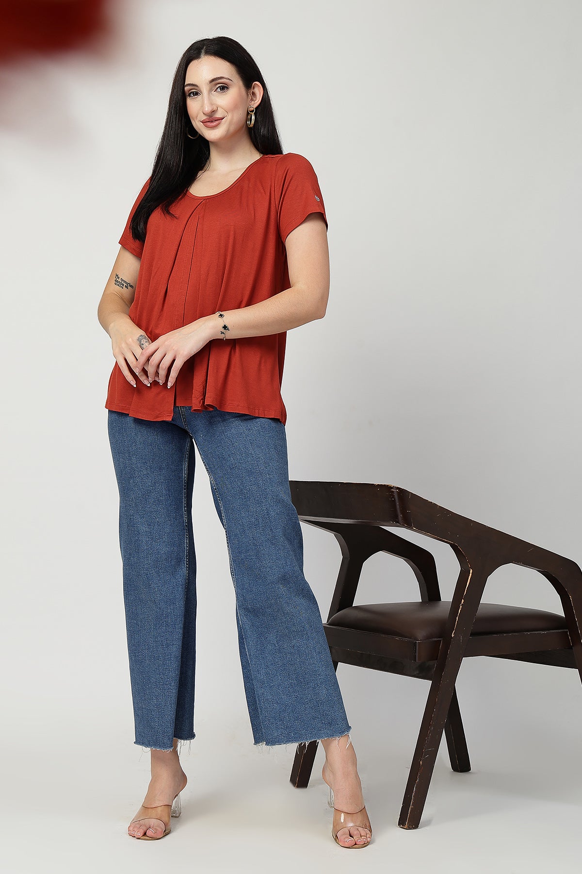 A specially designed nursing top offering discreet breastfeeding access, perfect for maintaining privacy and comfort. Made with 4-way stretch fabric, it ensures ease of movement during pregnancy and beyond. The lightweight, bio-washed Viscose yarn with elastane provides a soft, relaxing feel. The fabric's super recovery feature keeps the garment in shape, and the color lock technology ensures no fading after multiple washes.