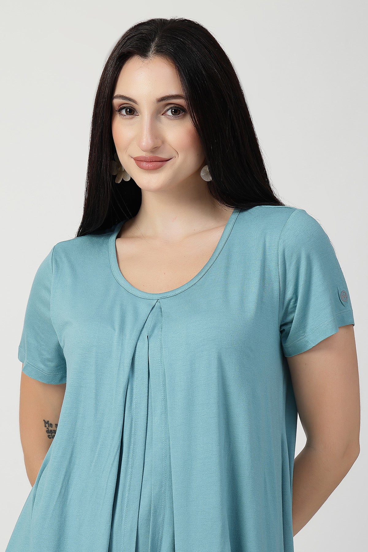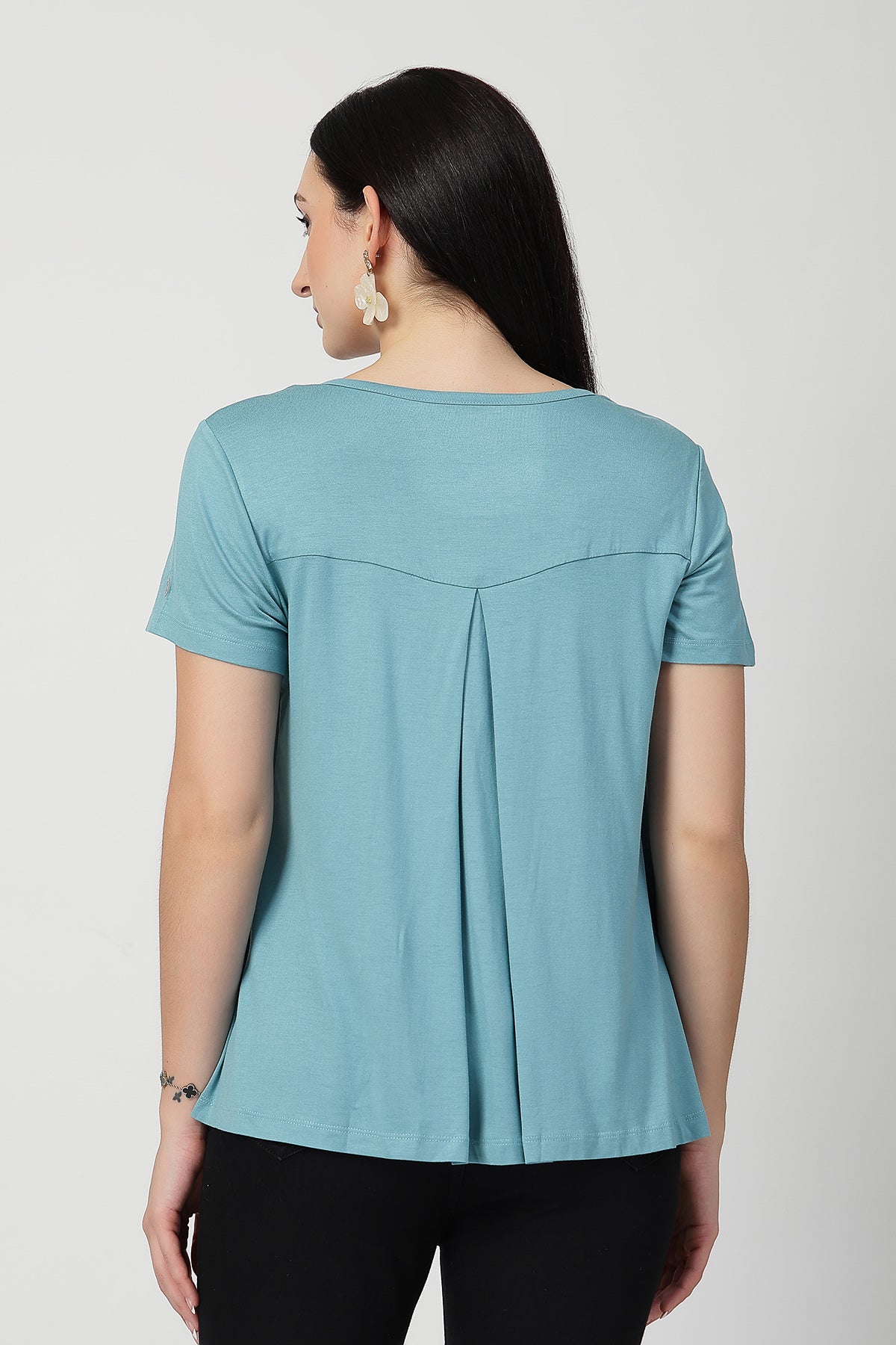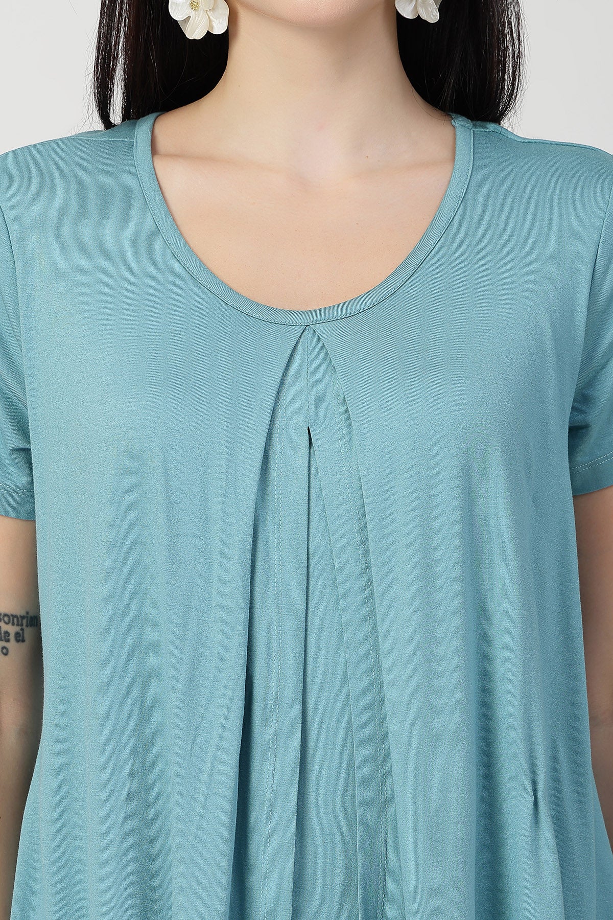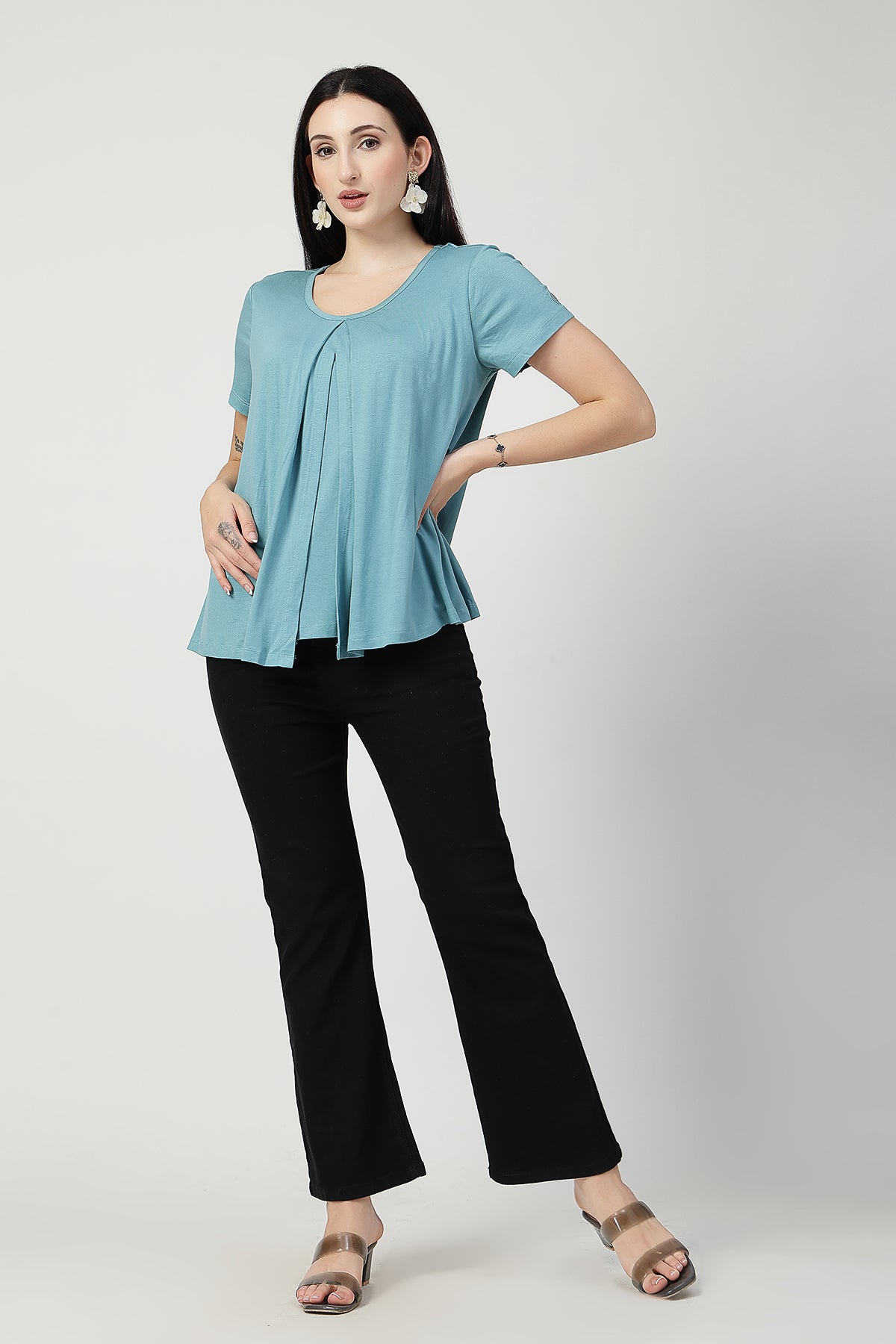 Sea Green Front & Back Pleated Zipless Nursing Top