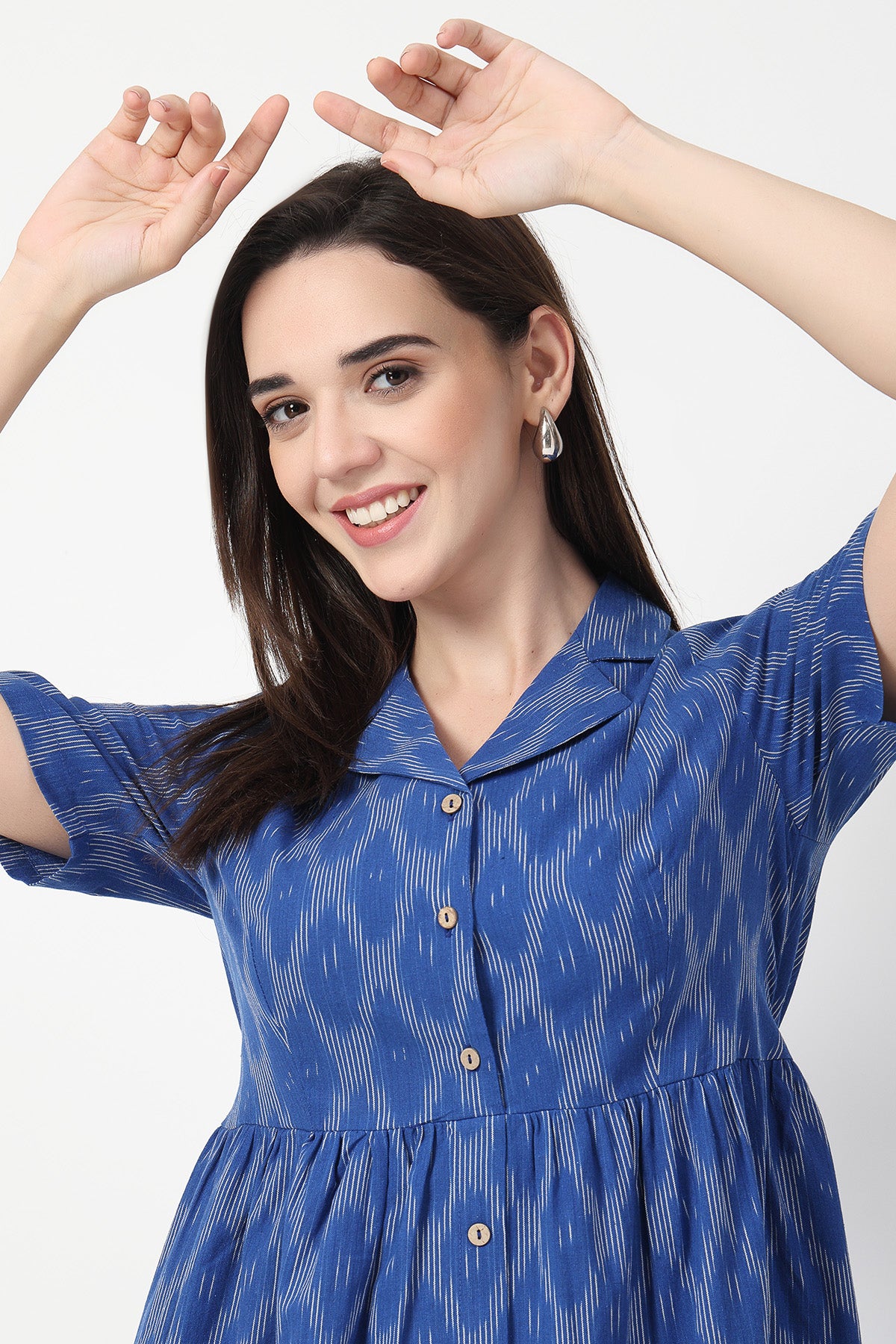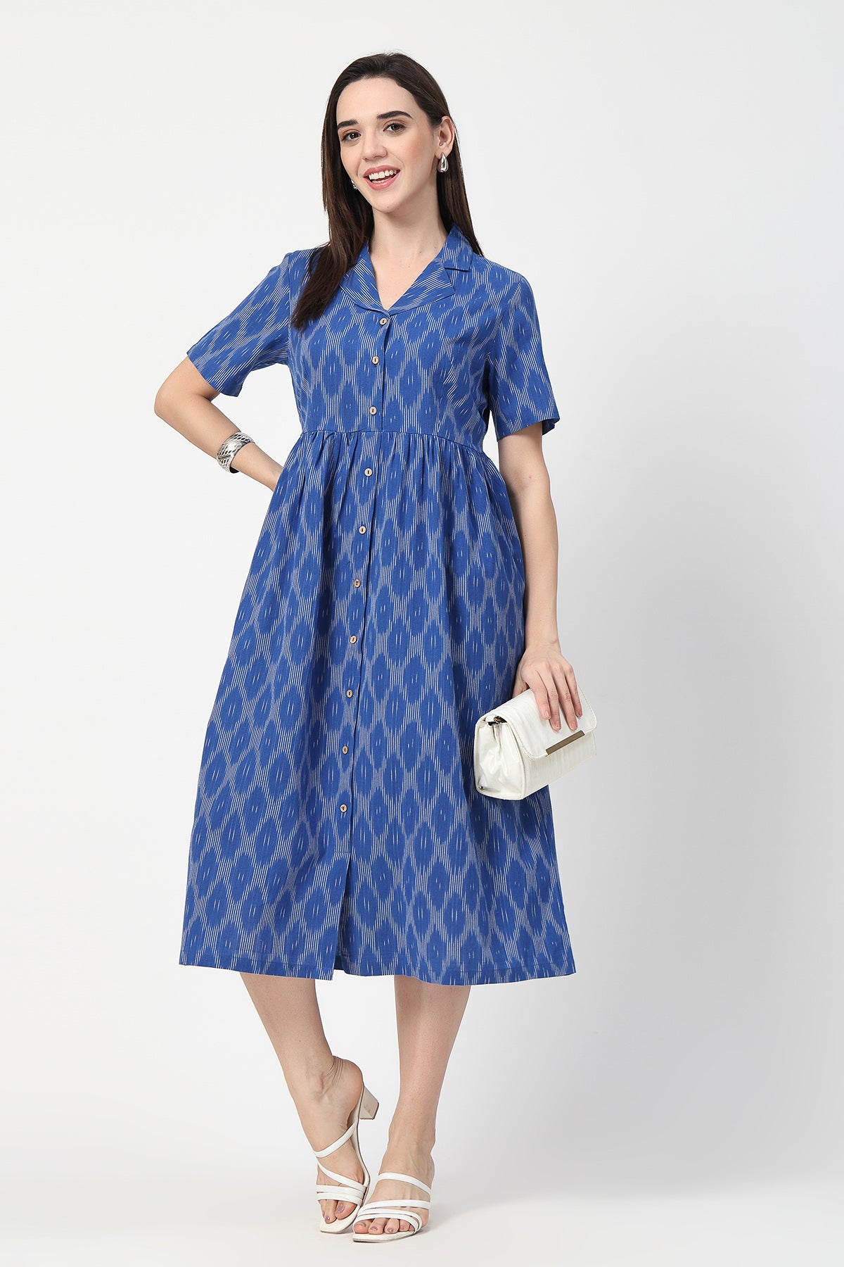 Ikat Print Zipless Feeding Dress - Royal Blue