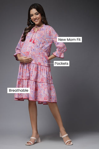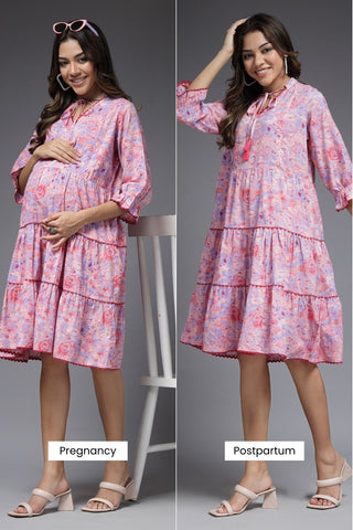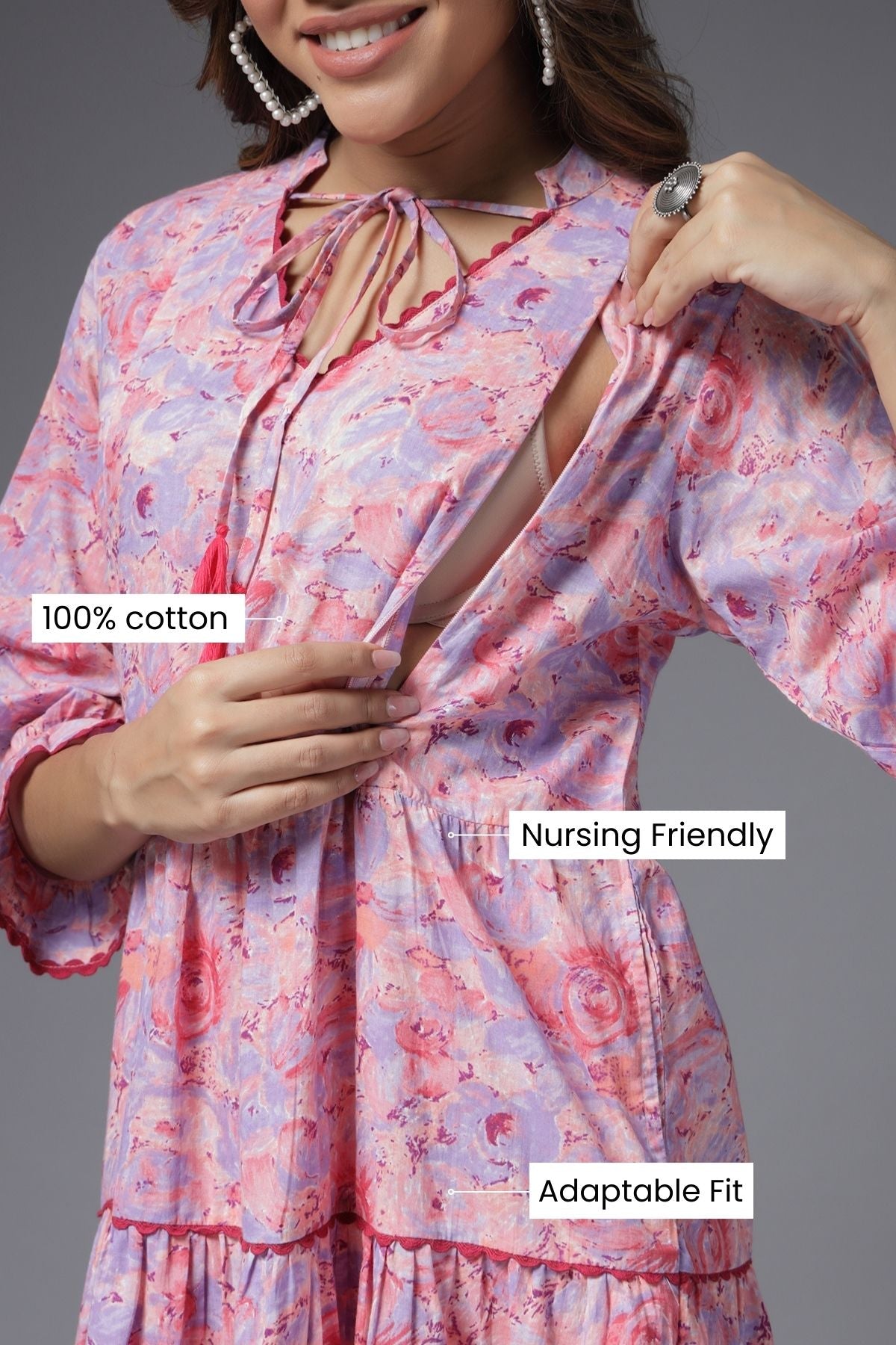 Indulge in effortless elegance with our Pastel Paradise Maternity & Feeding Tier Dress. Crafted from 100% cotton, this ensemble drapes gracefully over your curves, offering unparalleled comfort and breathability.