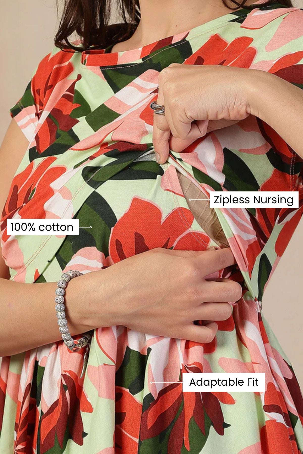 - Feeding-Friendly Design: Designed with ease in mind, this zipless dress ensures a hassle-free breastfeeding experience for new mothers. The relaxed fit makes it versatile for pregnancy and postpartum wear, offering both practicality and comfort without compromising on style.
