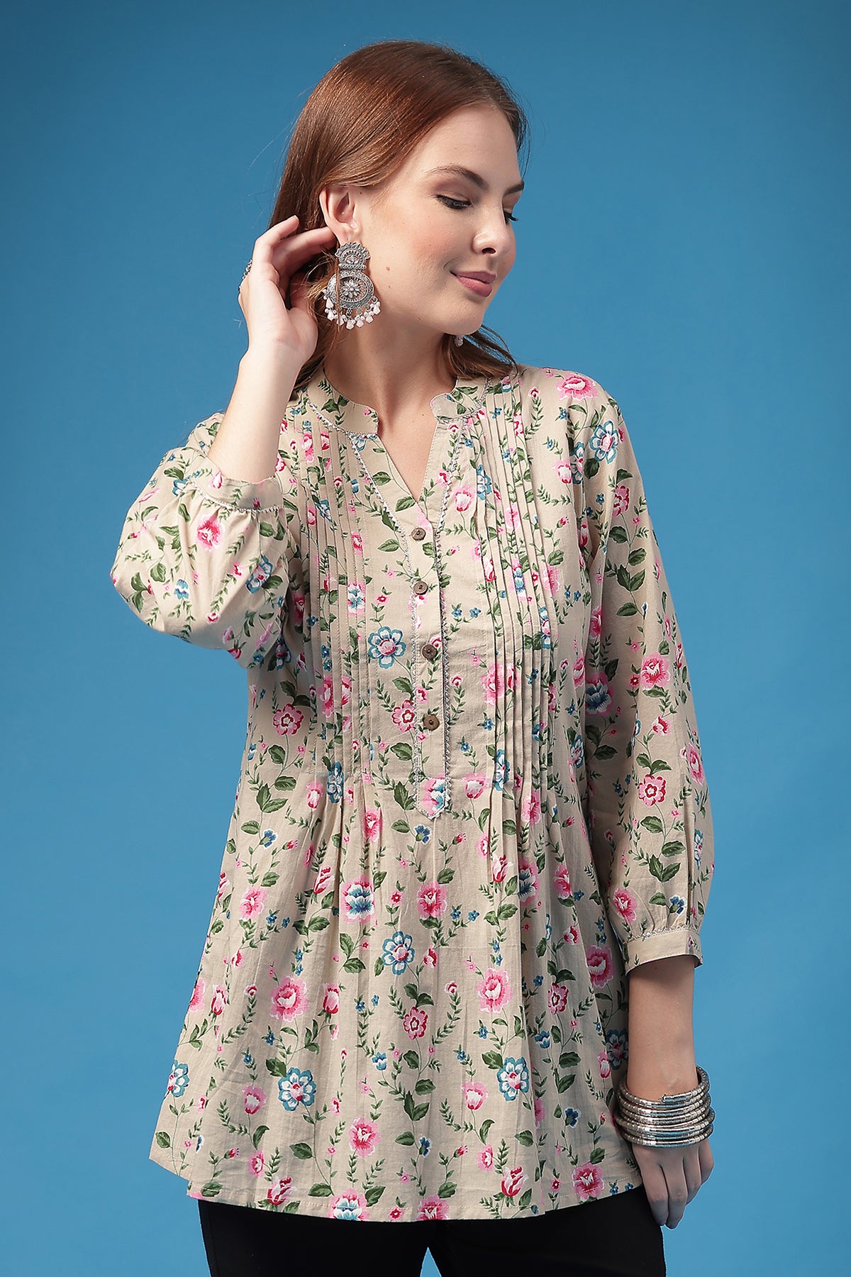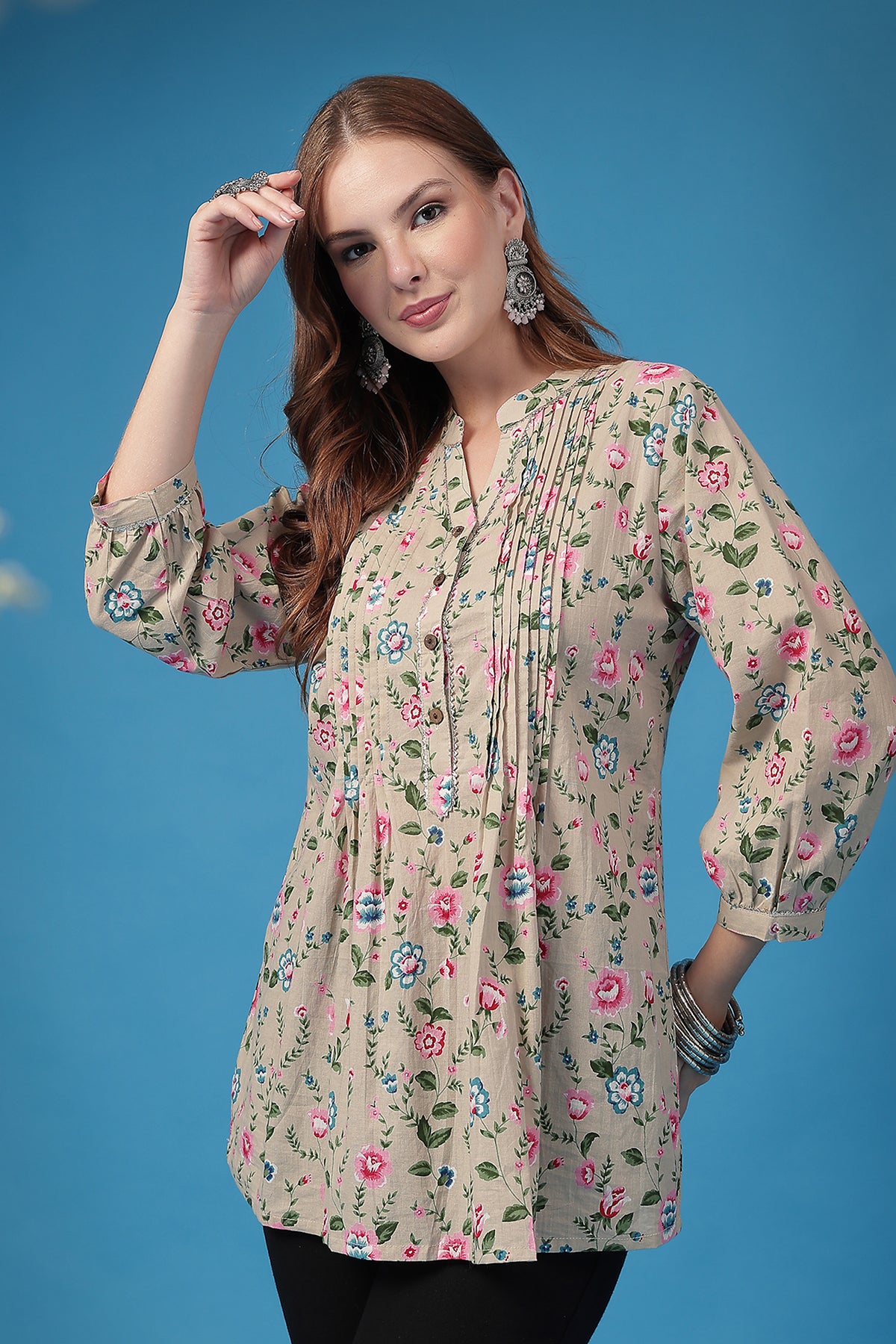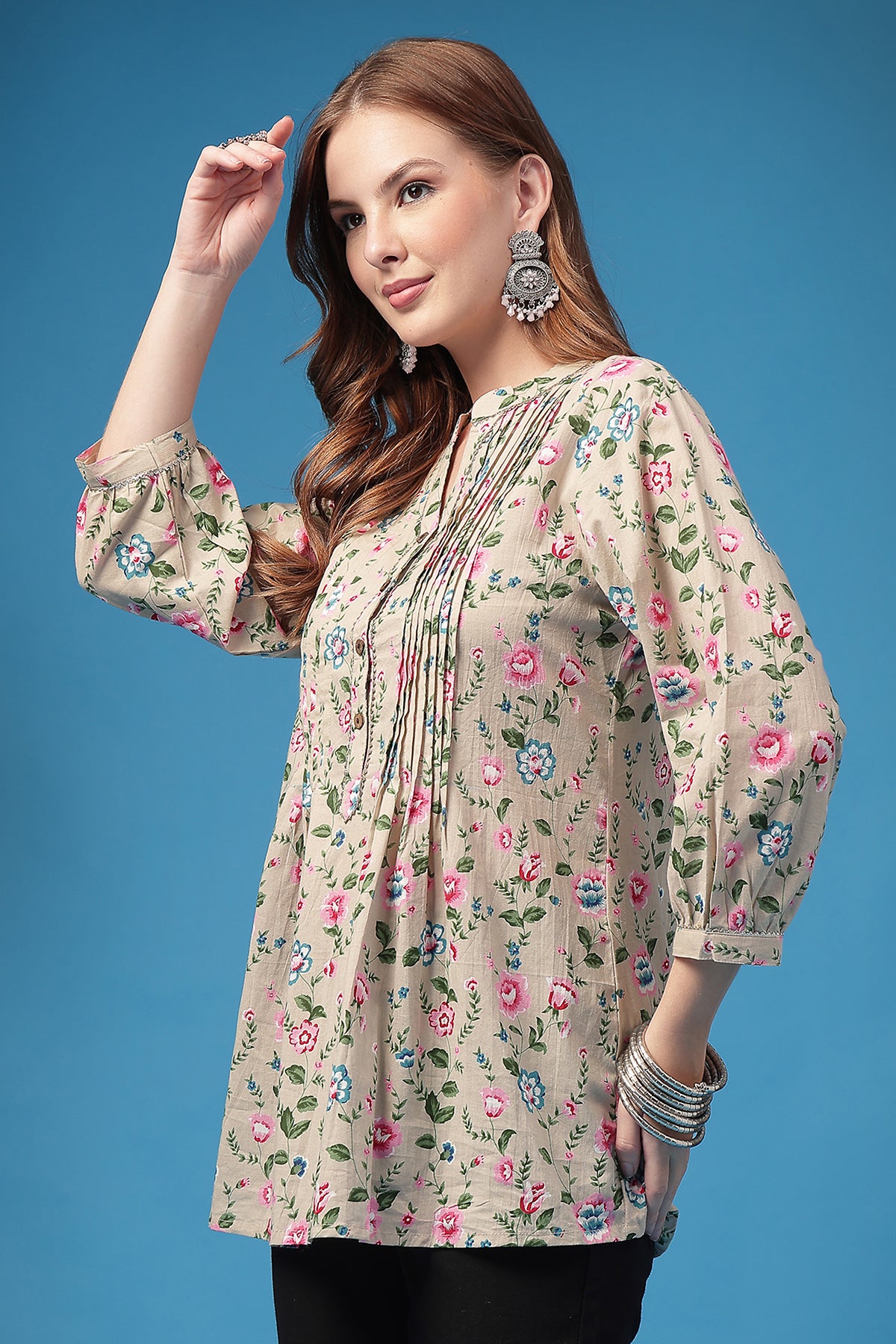 All Over Printed Zipless Feeding Pleated Top - Light Pink