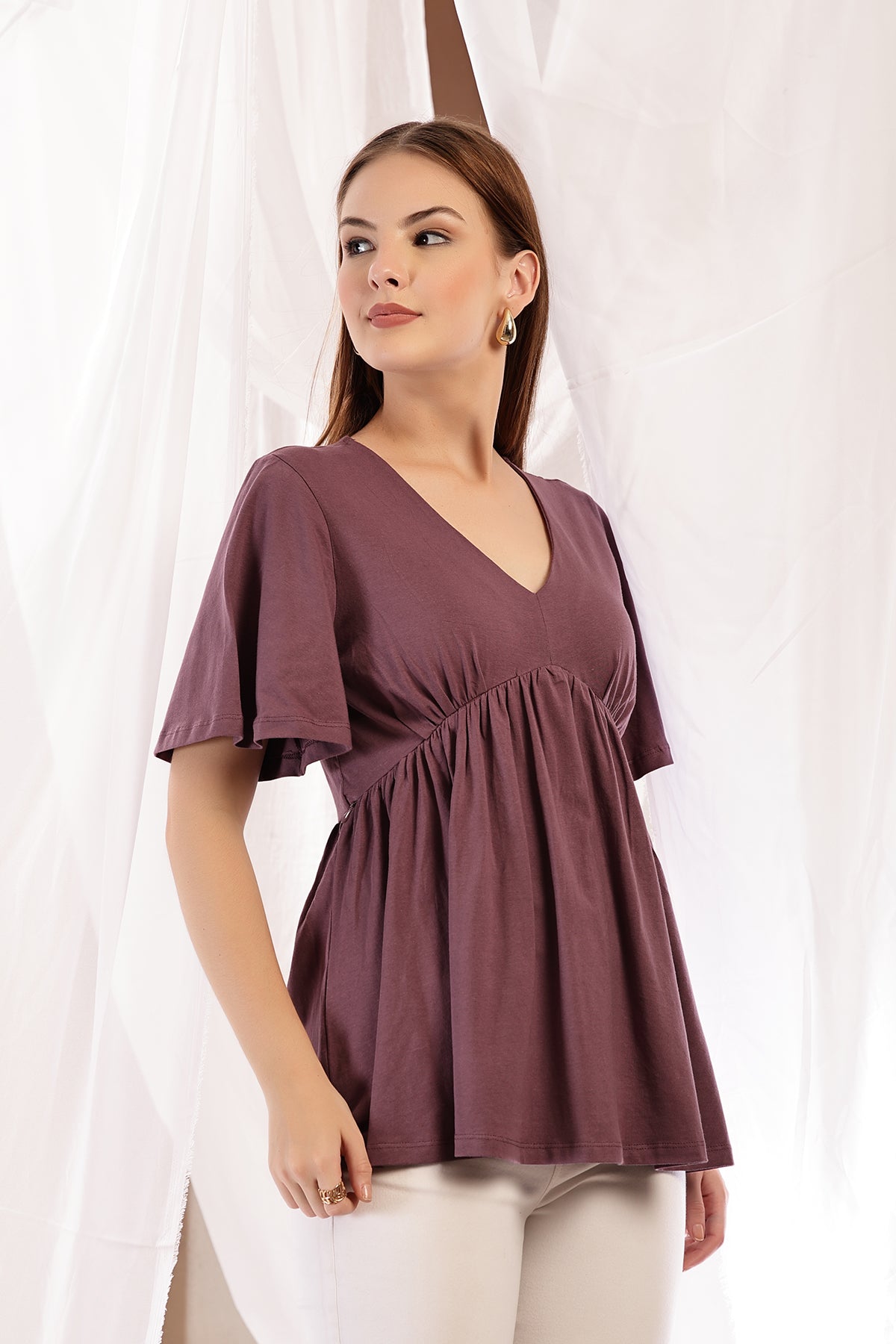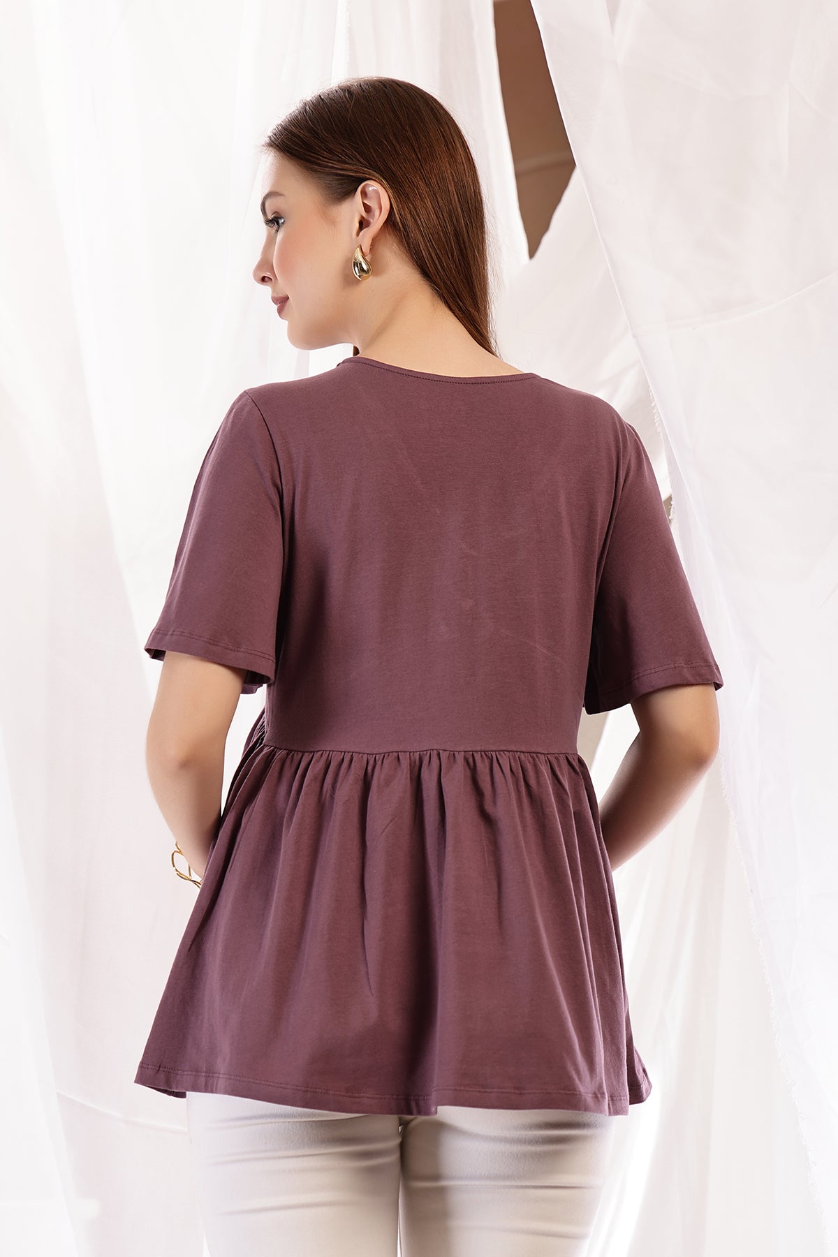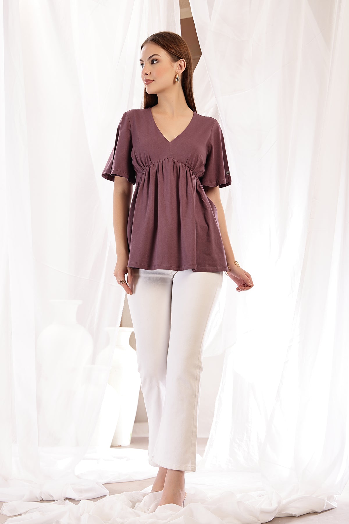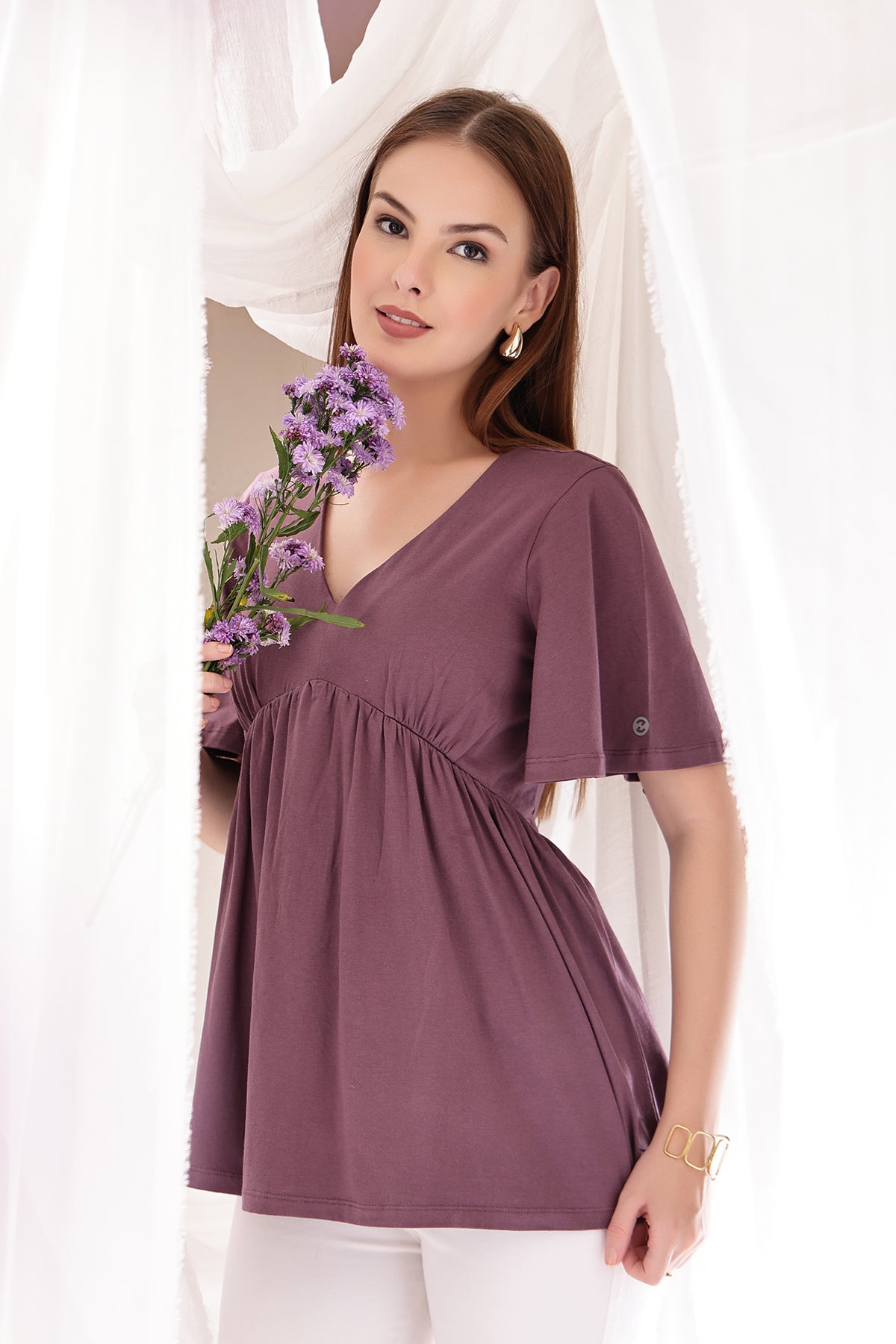 V-Neck Cotton Maternity Nursing Top - Rosewood