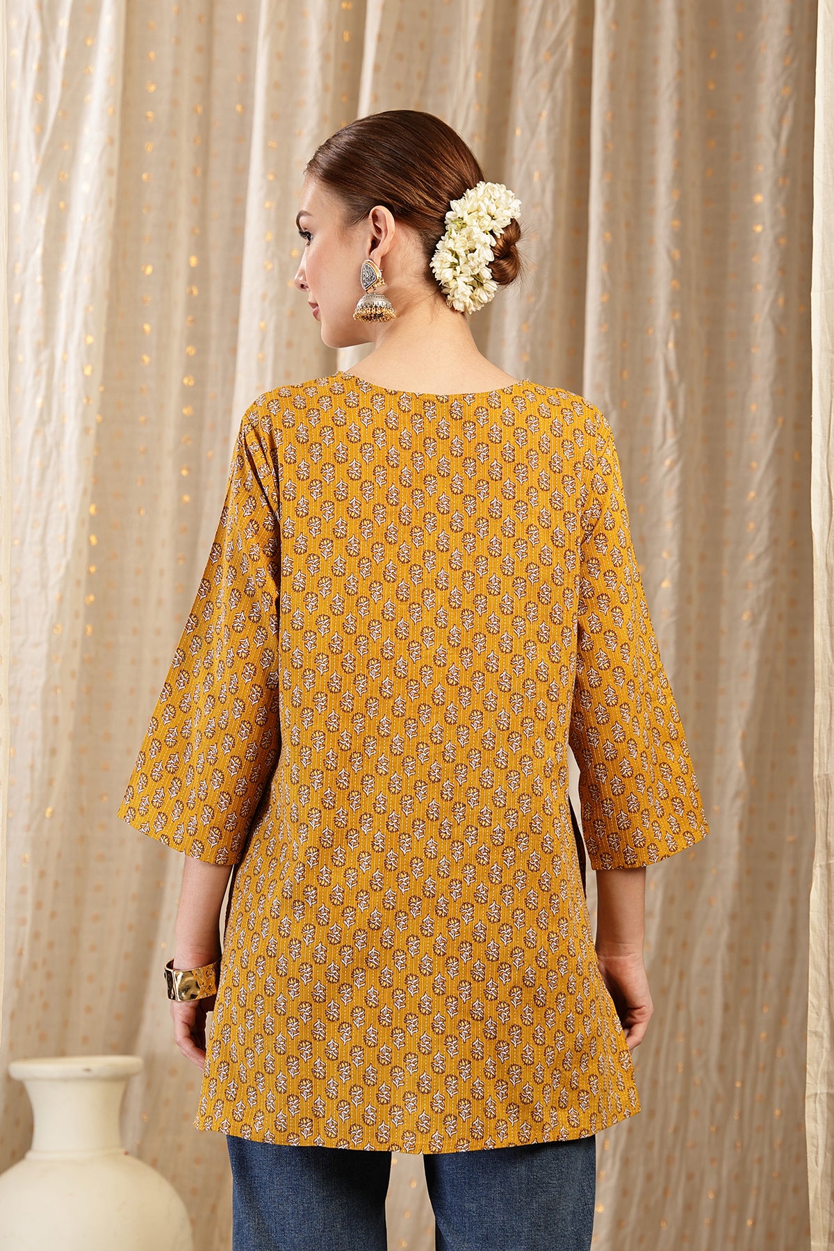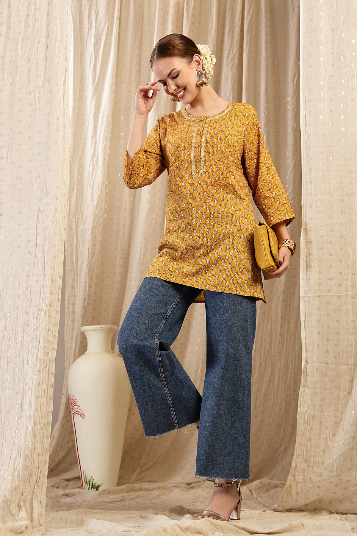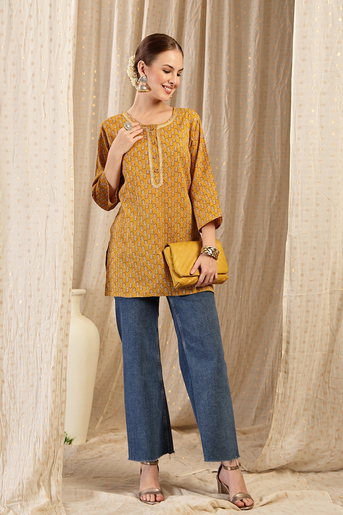 Zipless Feeding Cotton Top with Embroidered Neck - Ocher Booty