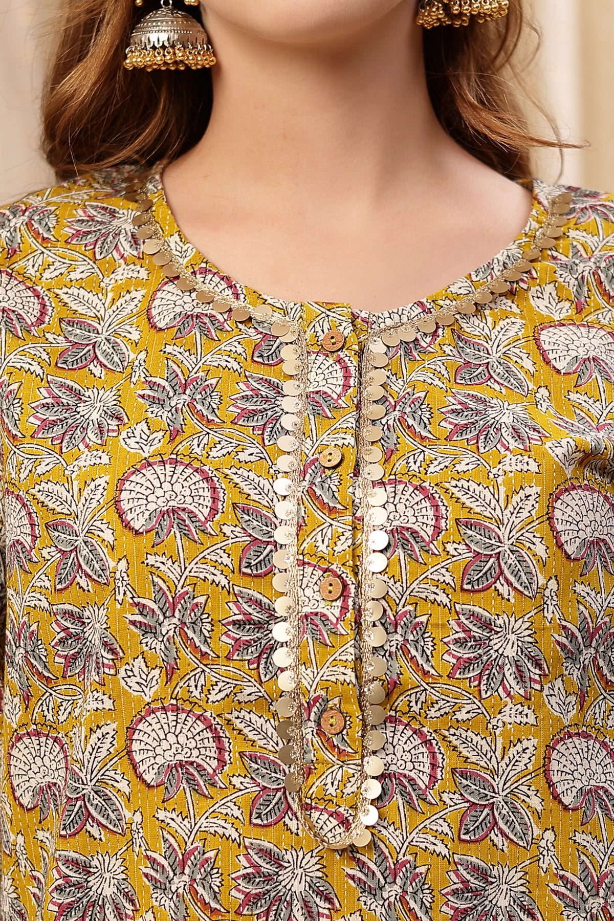 Zipless Feeding Cotton Top with Embroidered Neck - Yellow
