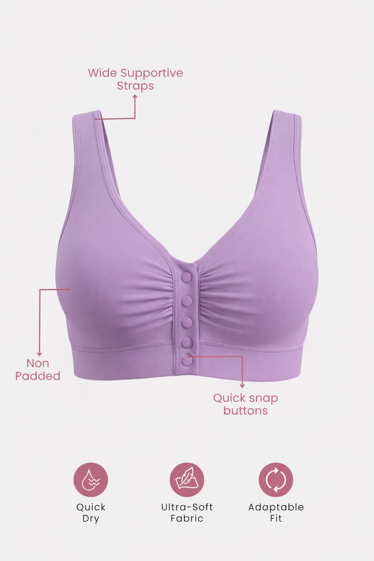 This bra features a simple, pull-on design or front open panel whichever way you might want to wear it on, that slips on easily and stays in place.