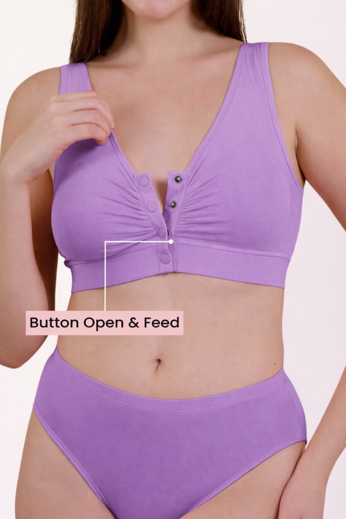 From just pregnancy to postpartum, your body is constantly evolving. This non-padded ruched bra is designed to evolve with every changing you. Whether you're nursing, napping, or simply taking a breather, it delivers soft support and gentle softness because you deserve to feel wrapped, not restricted. Wear this new lilac shade to keep your hot girl energy intact !