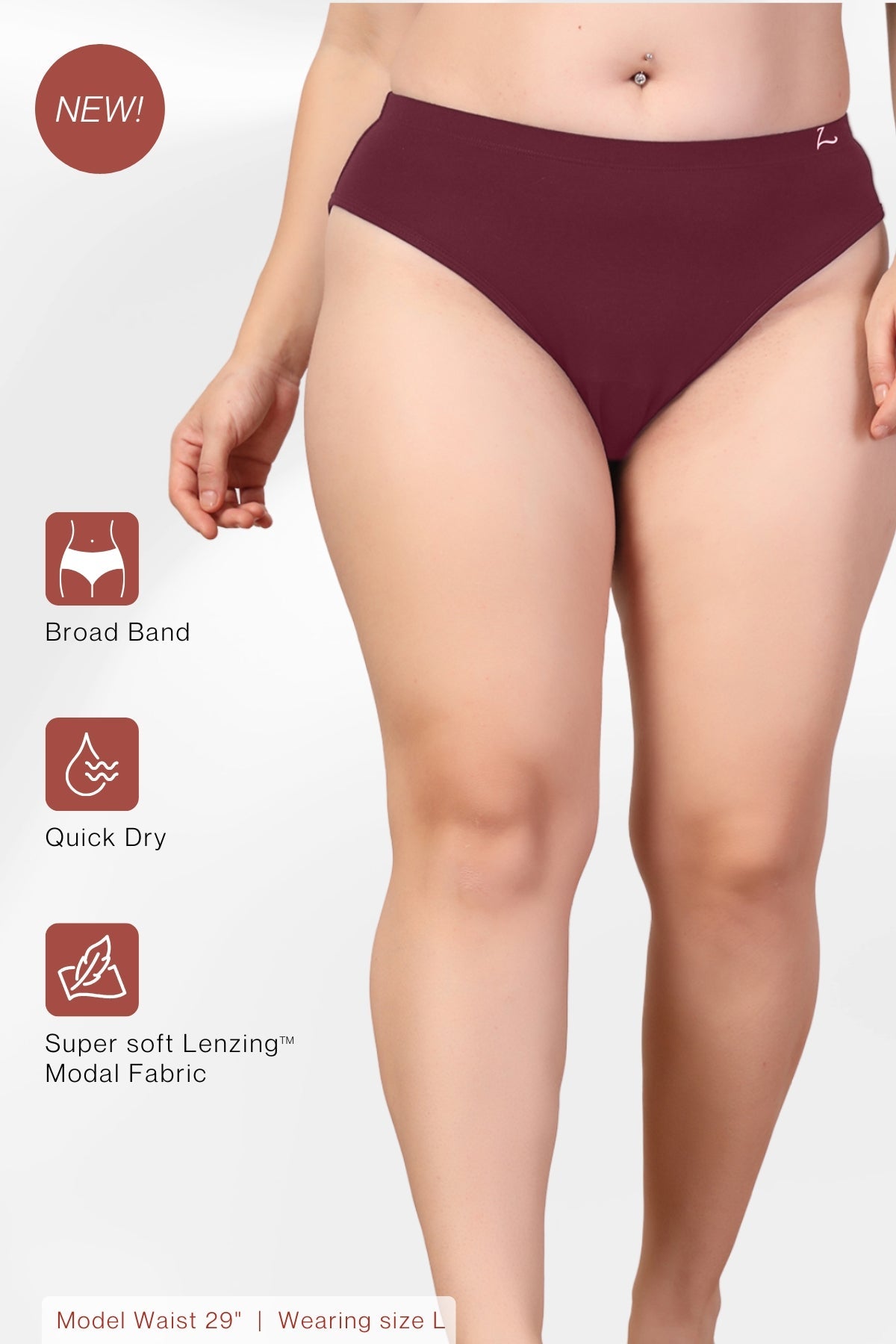 Crafted from Soft Lenzing™ Modal, 4 way stretch fabric for adaptability and an elasticated waistline for support & snuggle fit. Comes with a three-layer protection system, say goodbye to unwanted stain problems, wear it all day long – sleep, lounge, casual outings. No chafing poking or seethrough! Classic Maroon to light up your inner girl is here.