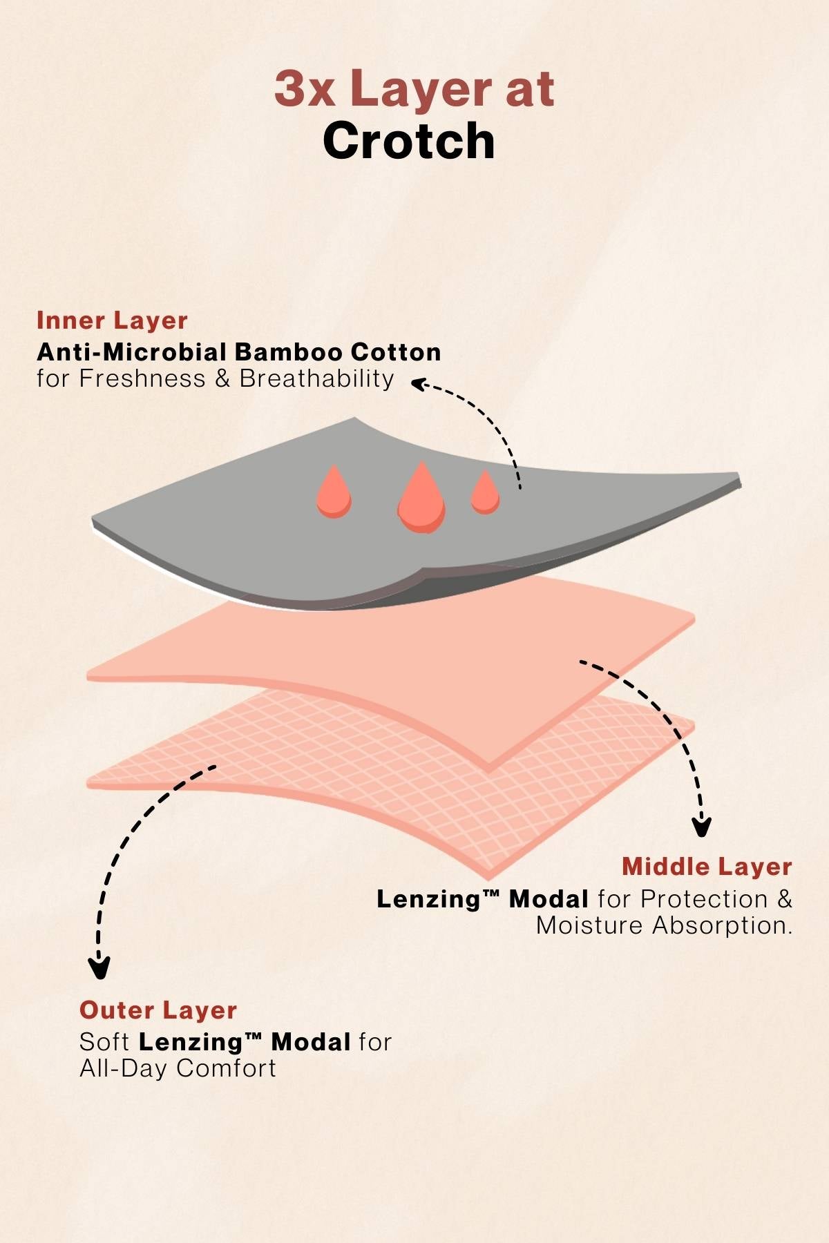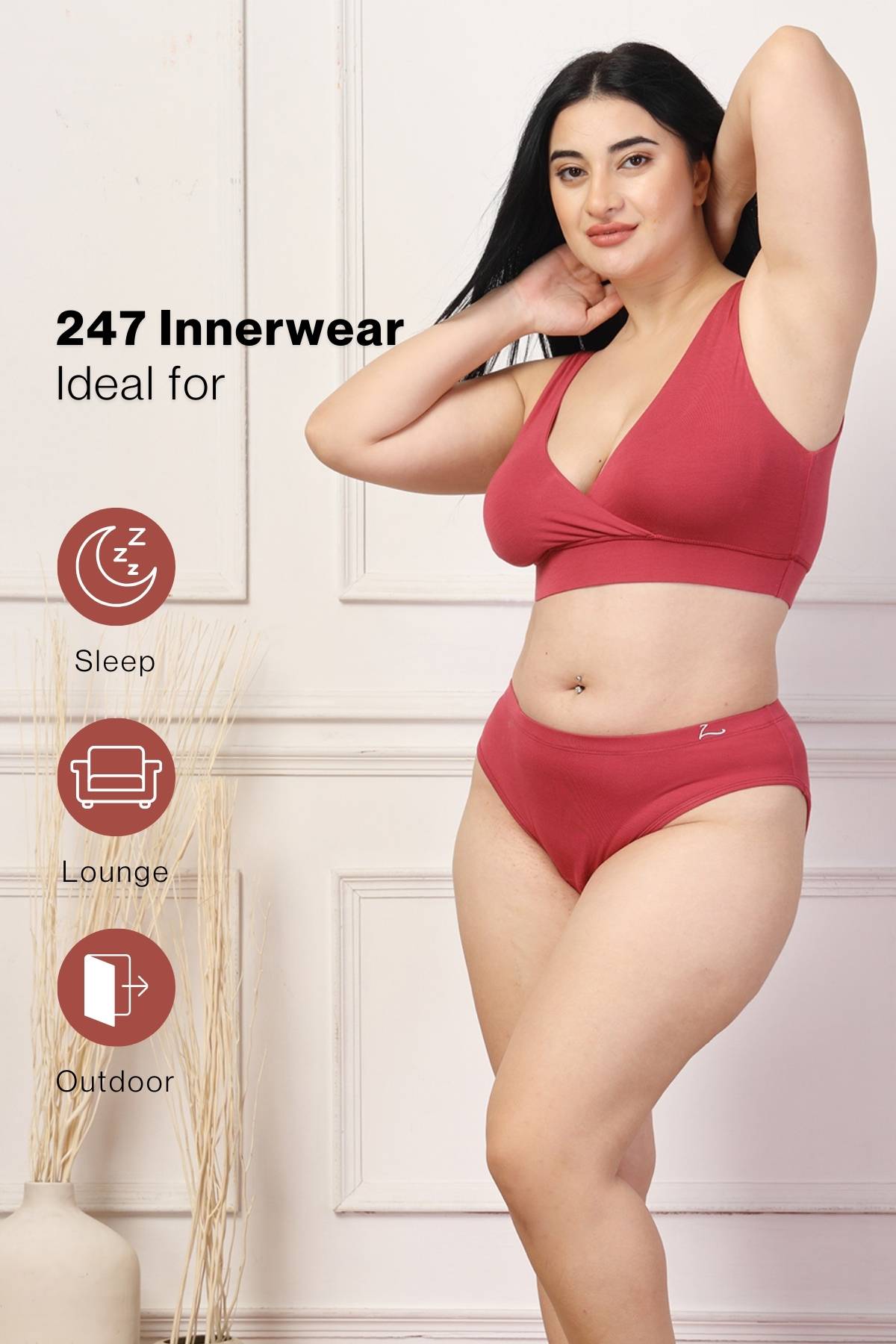 Crafted from Soft Lenzing™ Modal, 4 way stretch fabric for adaptability and an elasticated waistline for support & snuggle fit. Comes with a three-layer protection system, say goodbye to unwanted stain problems, wear it all day long – sleep, lounge, casual outings. No chafing poking or seethrough! Rustic red is here to light up your inner girl energy.