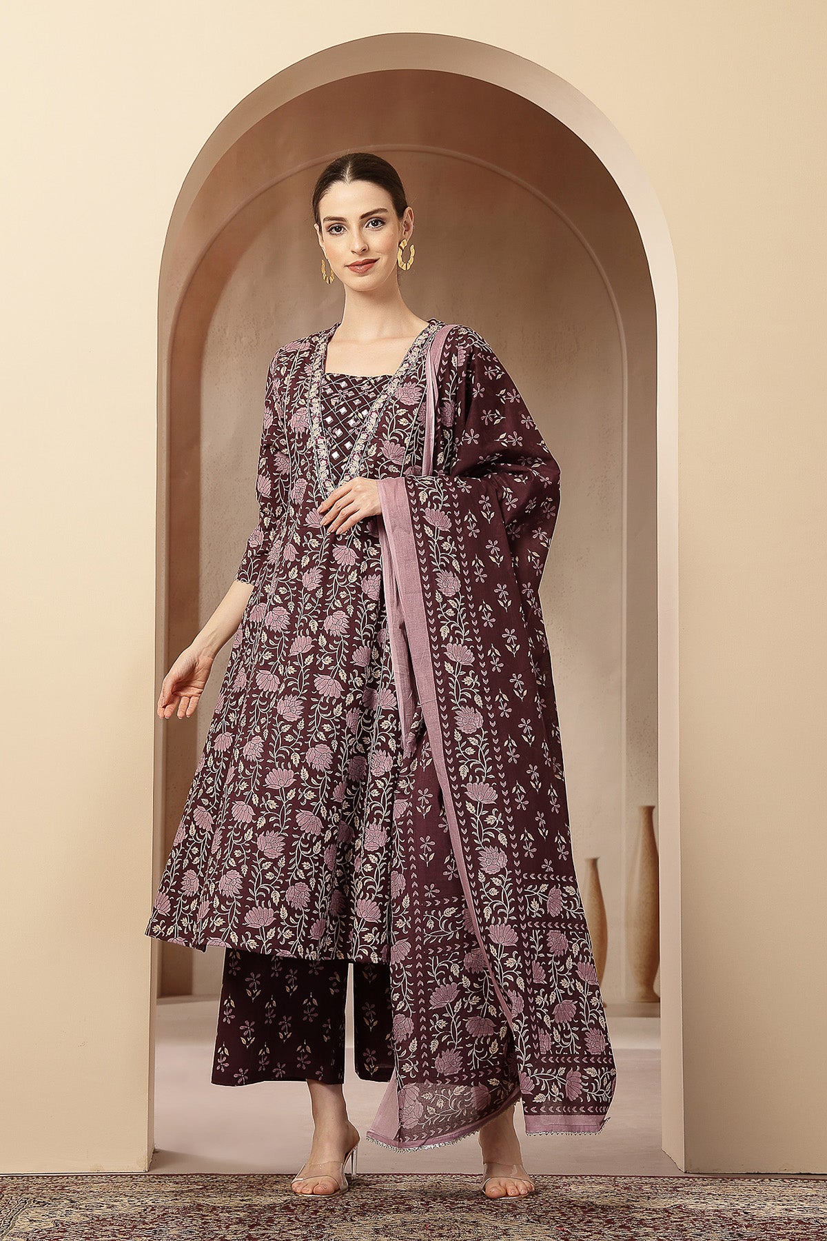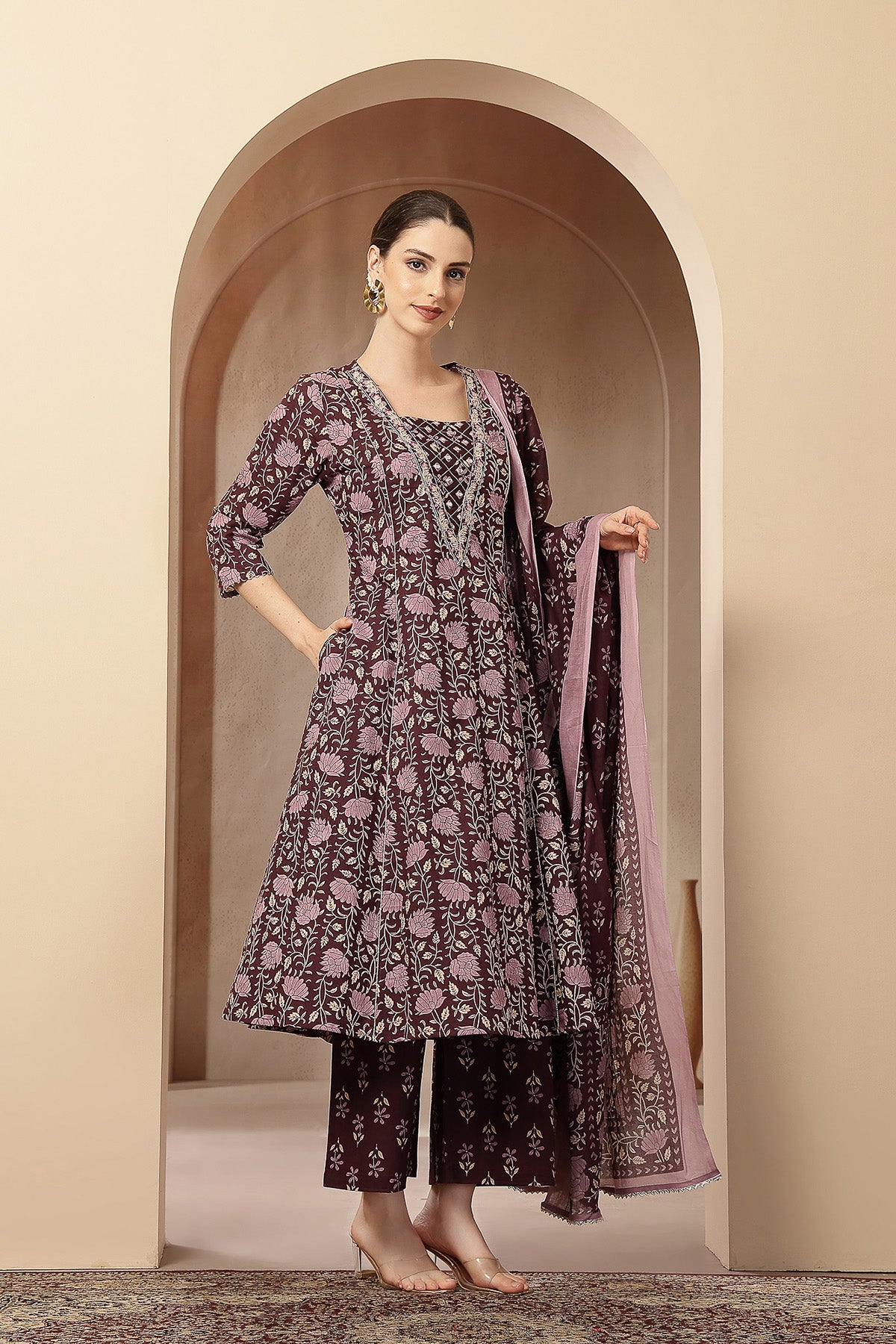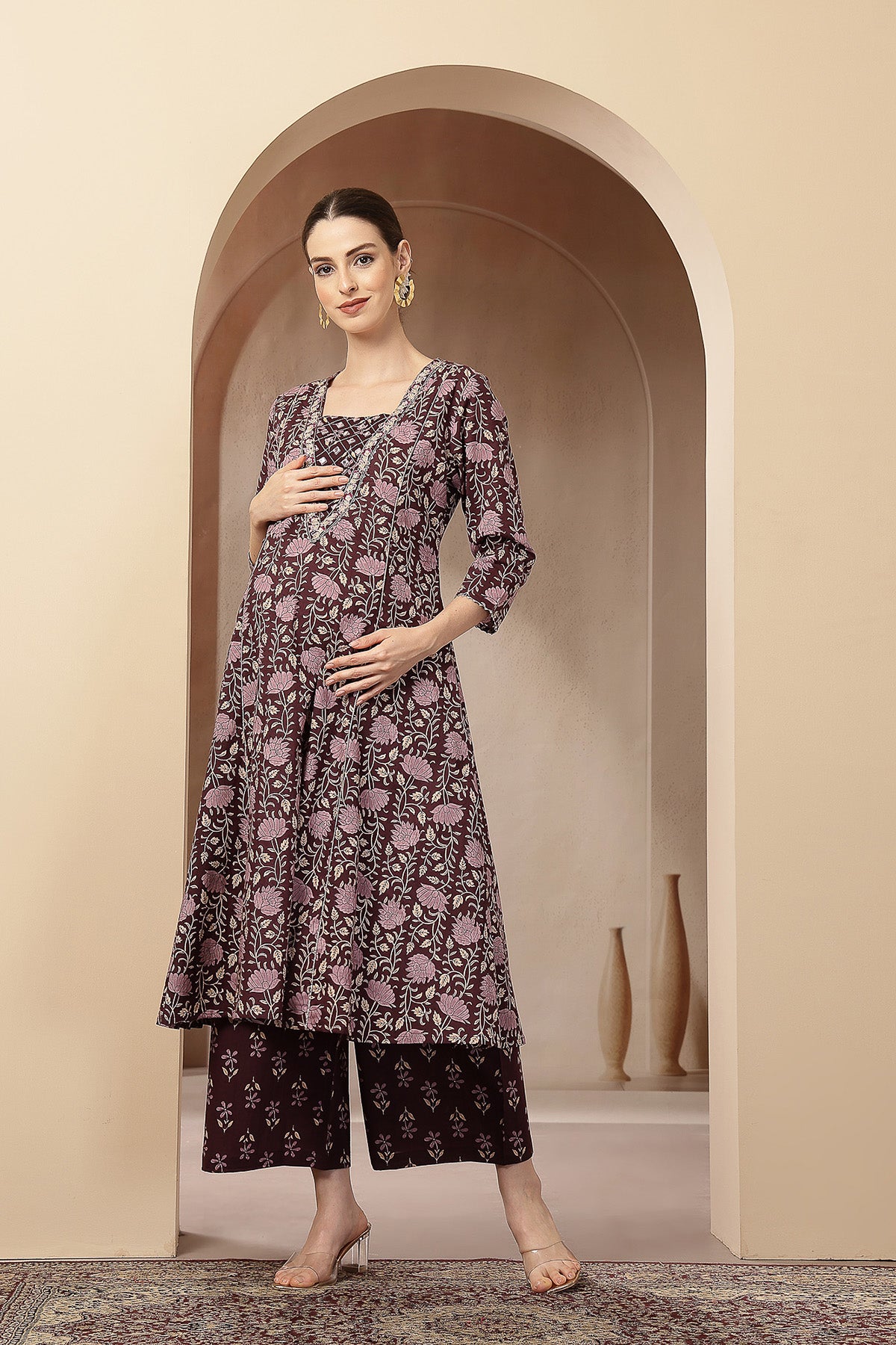 Pair this graceful kurta set with statement earrings and block heels for a chic ethnic look, or keep it minimal with flats for everyday elegance. Its flattering silhouette and soothing print make it a go-to outfit for expecting and new moms who want comfort without compromising on style.