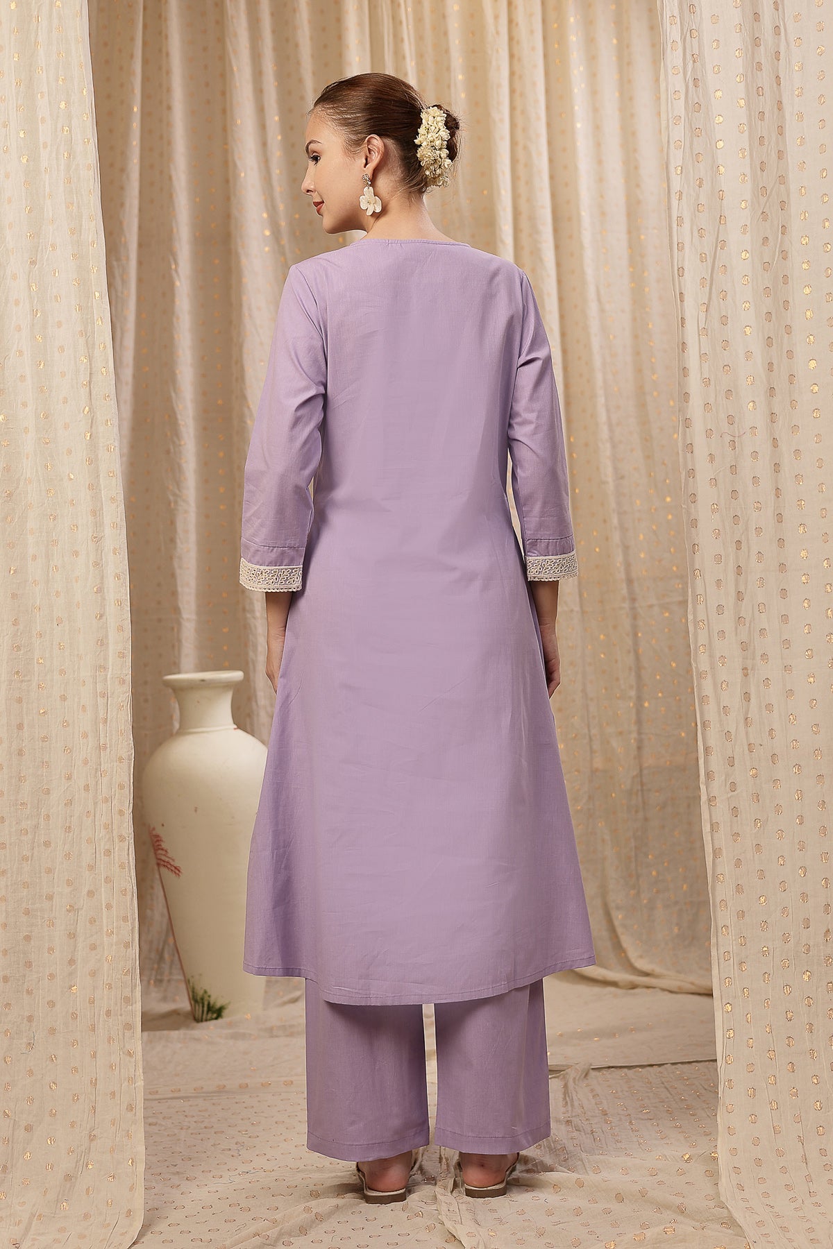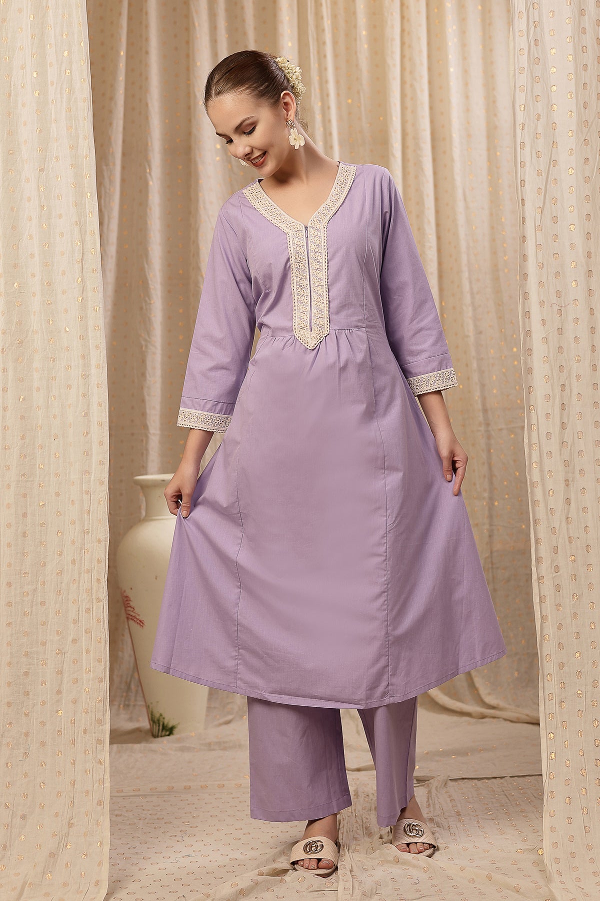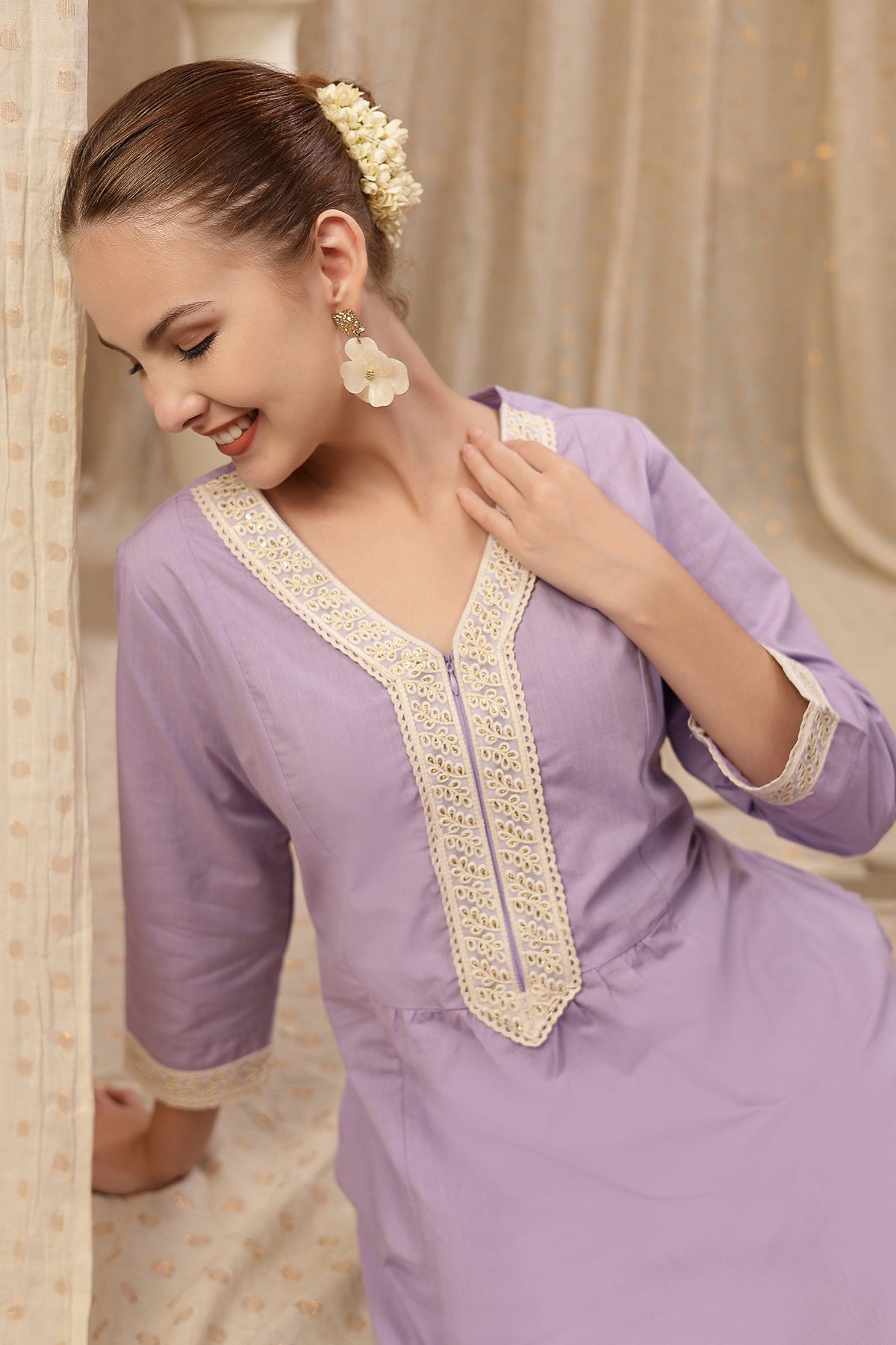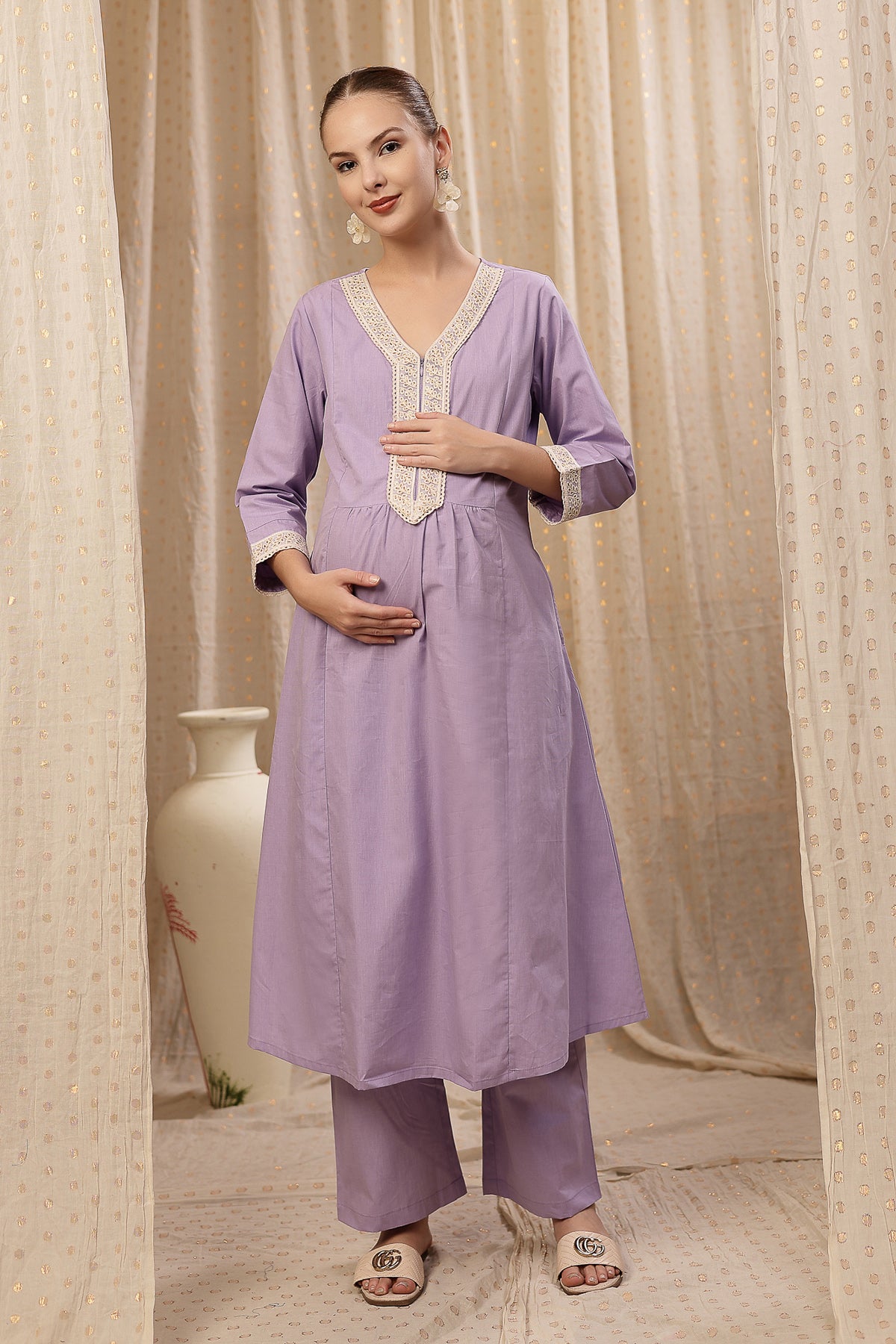 Effortless yet chic, this kurta pant set is a wardrobe essential for pregnancy, postpartum, and beyond. Pair it with statement earrings and sliders for a graceful festive look, or keep it minimal for daily wear. Its soft pastel tone and intricate lace accents make it versatile for both home gatherings and casual outings.