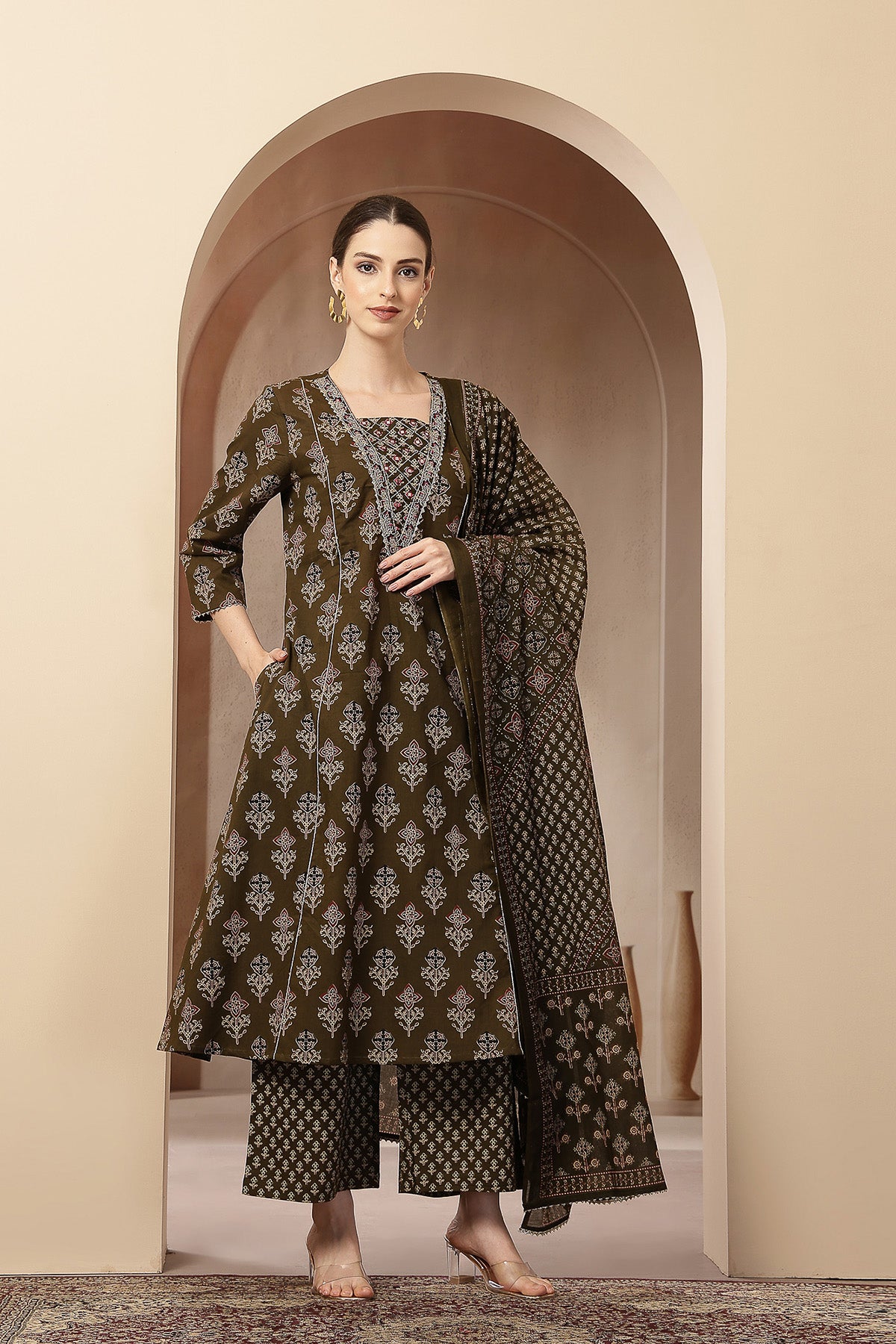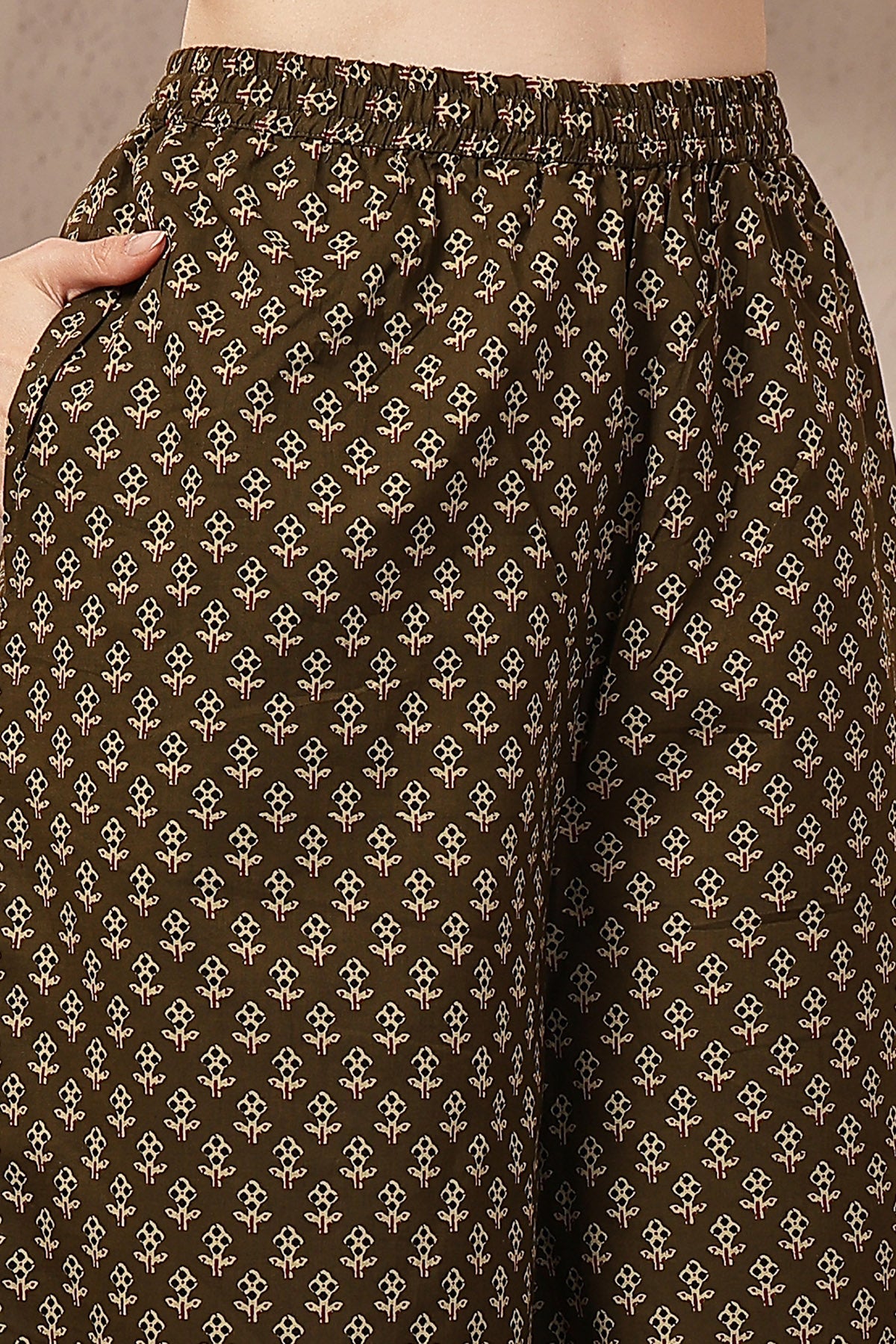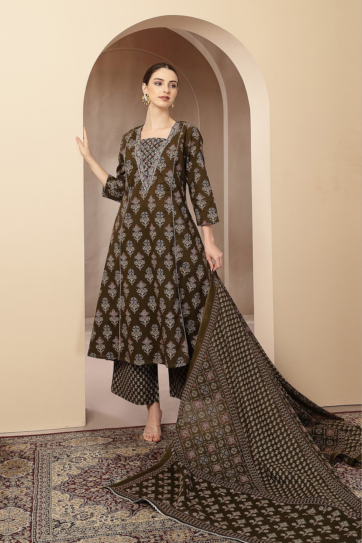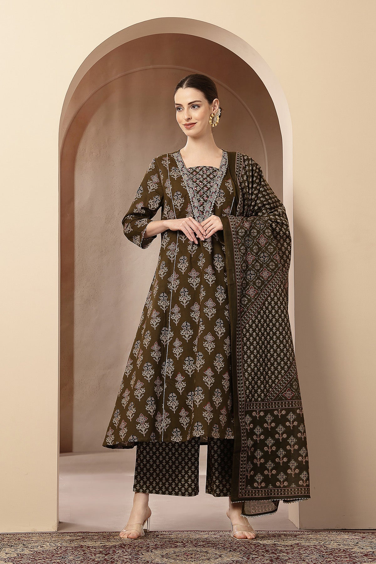 Olive Green 100% Cotton Concealed Zip Feeding Maternity Kurta Set with Dupatta