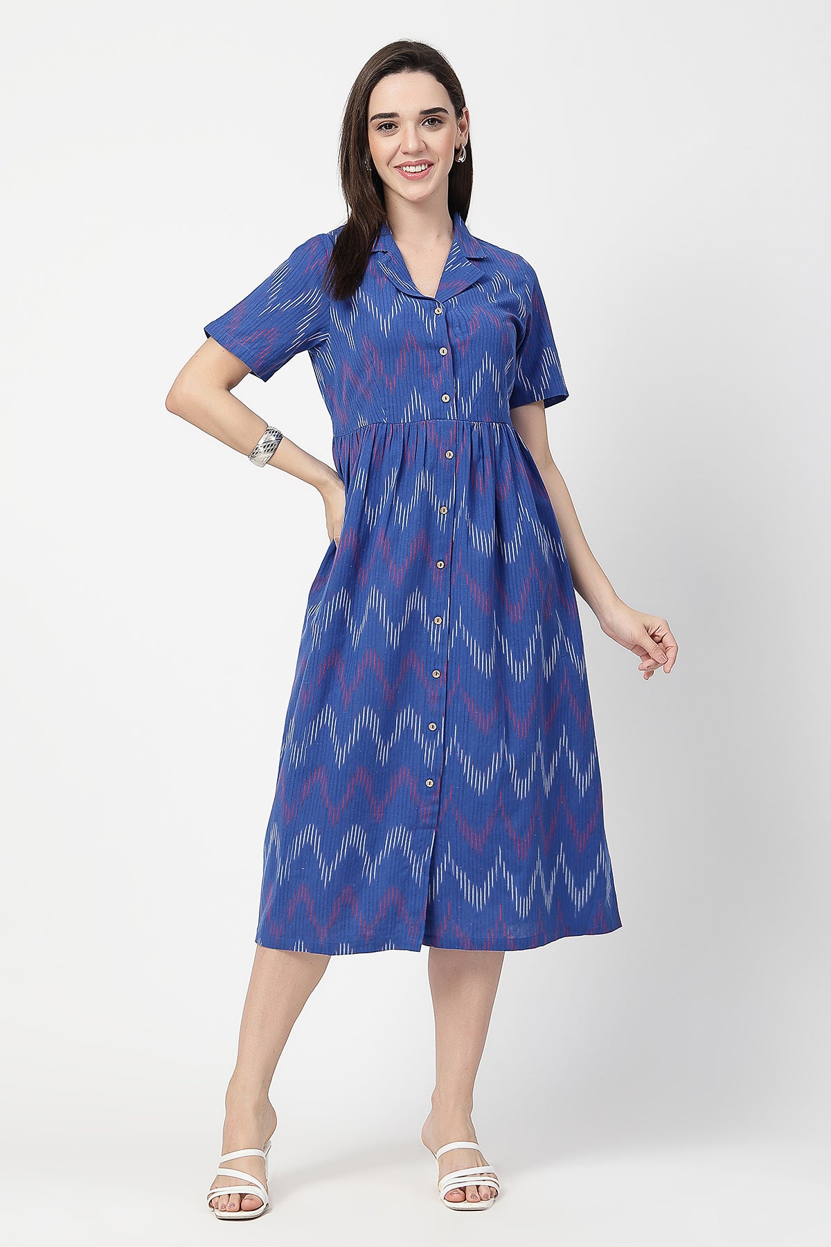 Ikat Print Zipless Feeding Dress - Blue