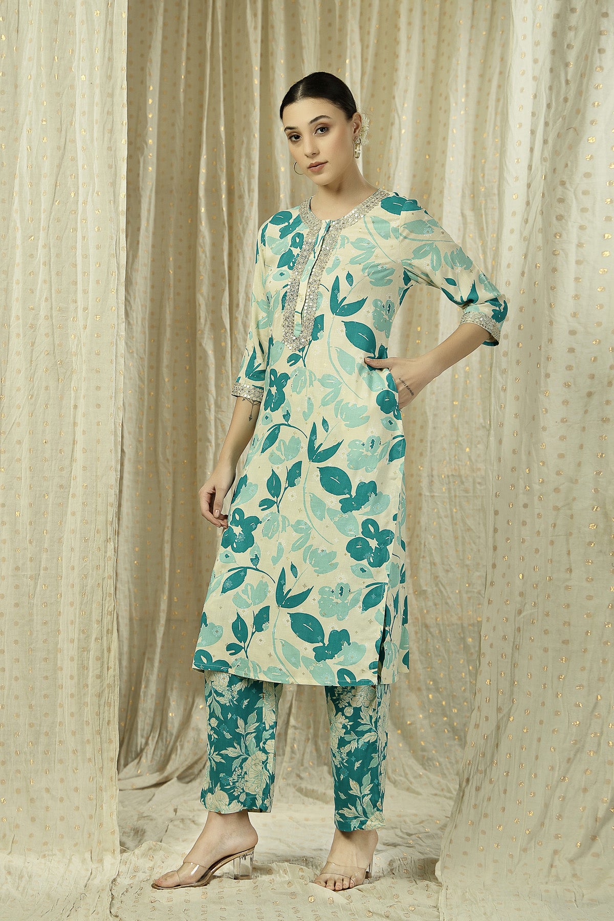 This set is your go-to for everyday outings, work days, or relaxed at-home moments. Pair it with delicate jhumkas and classic juttis to complete the look. Effortless, comfortable and thoughtfully designed—this is maternity wear that doesn’t look like maternity wear.