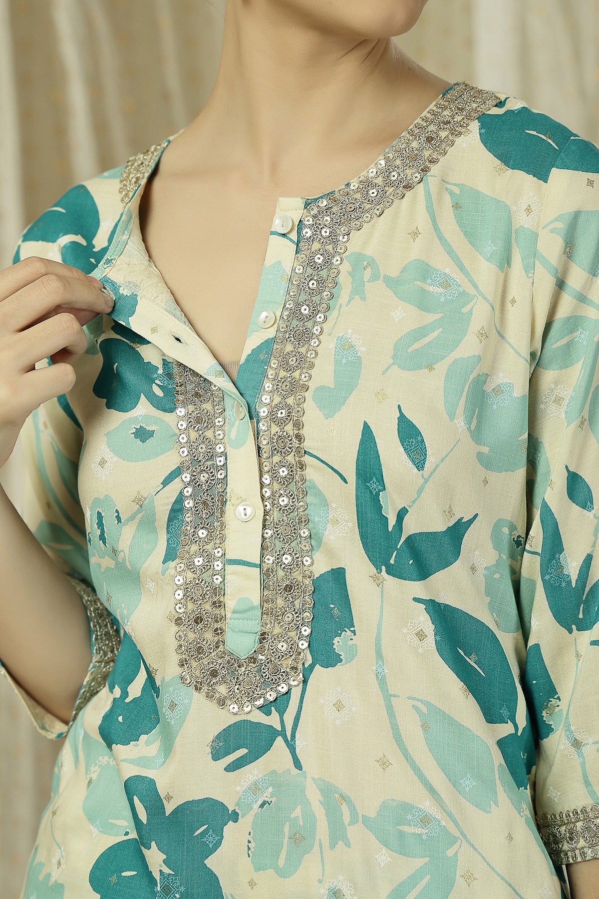 Experience effortless comfort and elegance with this zipless feeding kurta pant set, crafted in 100% soft rayon for all-day breathability. Designed with a front button closure for easy nursing access, this set combines practicality with a timeless ethnic charm. The kurta features a graceful 3/4th sleeve and a soothing all-over print that pairs beautifully with the matching straight pants. Perfect for pregnancy, postpartum and beyond.