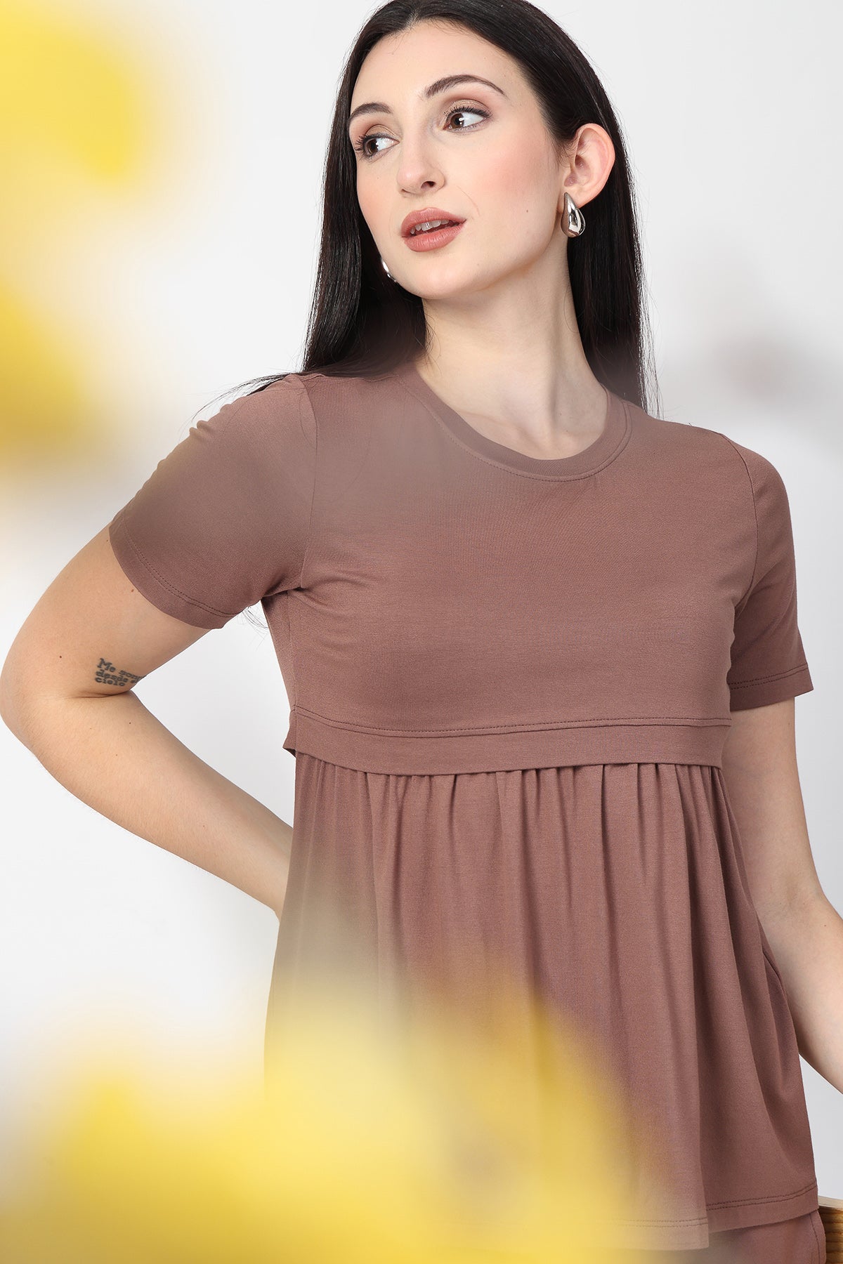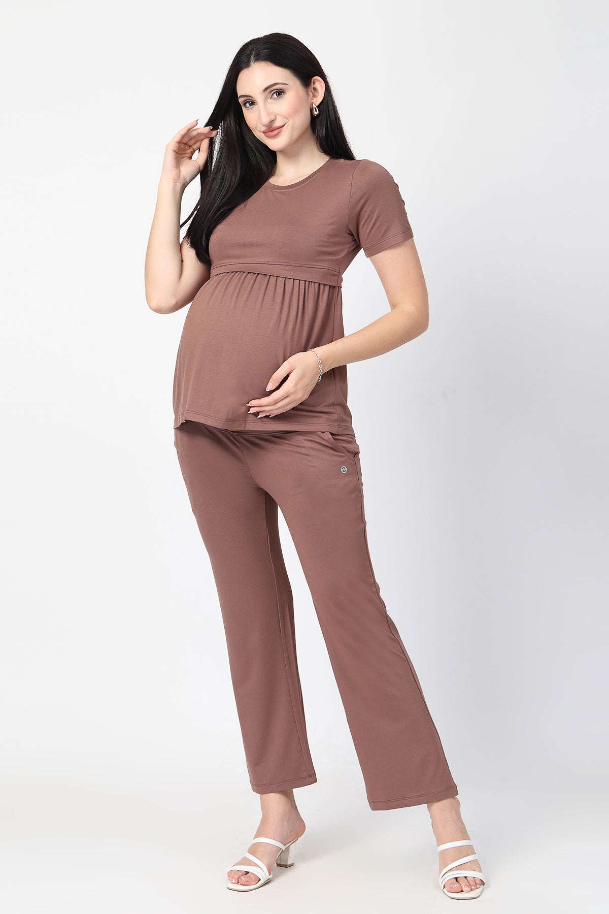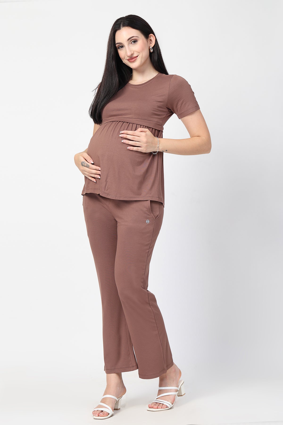 Pair this nursing top with maternity leggings or flared pants for a relaxed yet refined look. Add a pair of earrings or sliders for an effortlessly stylish everyday outfit—ideal for home, outings, or casual meetups.