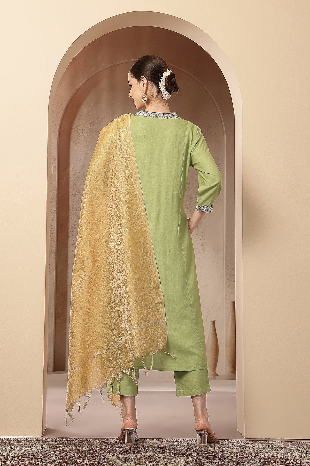 Maternity Concealed Zip Feeding Kurta Set with Dupatta - Parrot Green