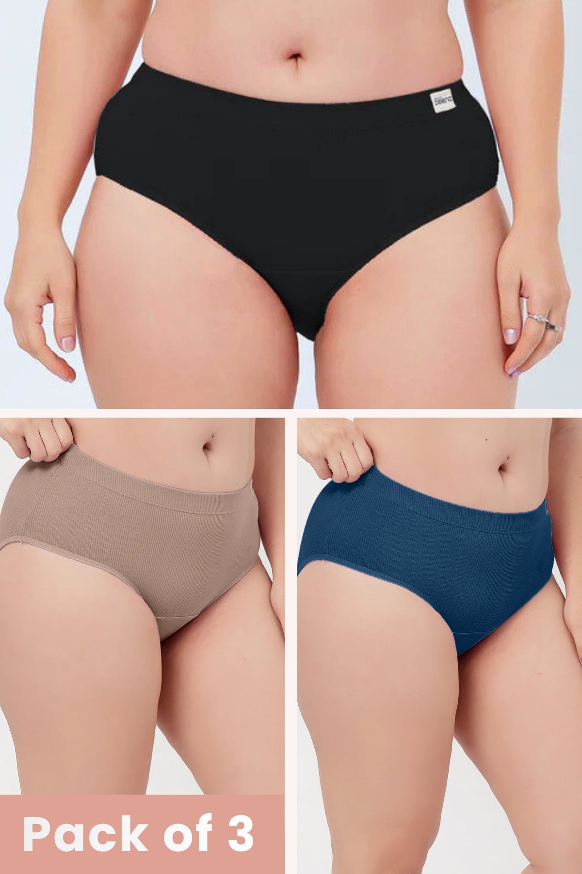 Sera Fine Rib Mid Rise Hipster Pack of 3 - (Skin, Airforce, Black)