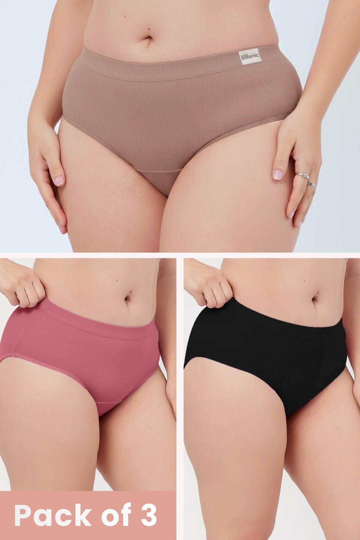Sera Fine Rib Mid Rise Hipster Pack of 3 - (Skin, Blush, Black)