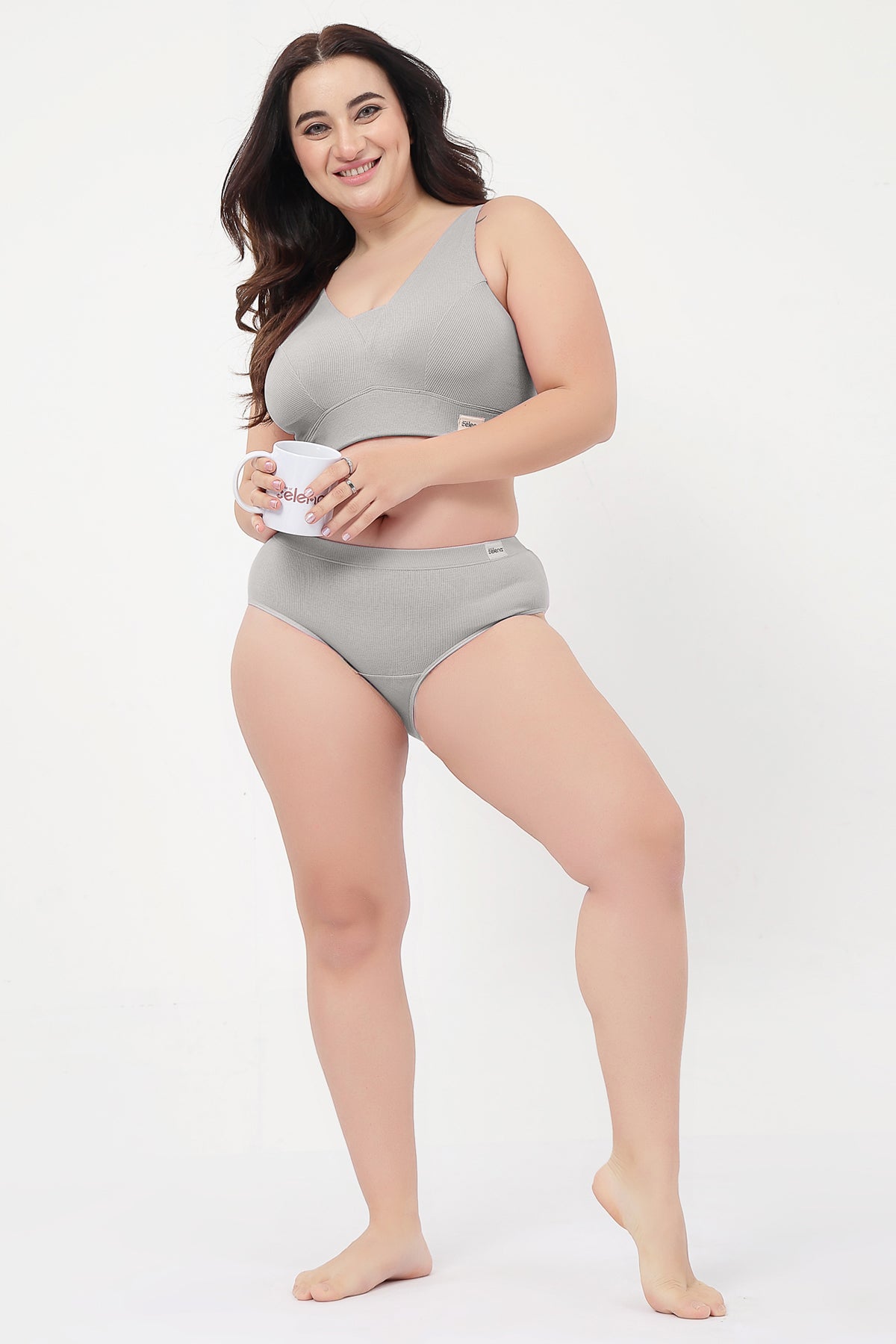 Sera Fine Rib Mid Rise Hipster Pack of 3 - (Skin, Grey Melange, Black)