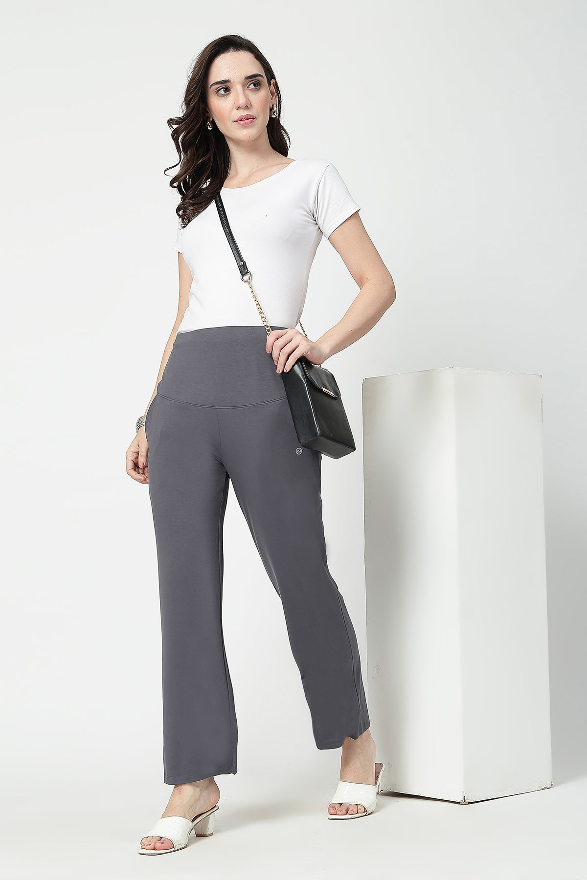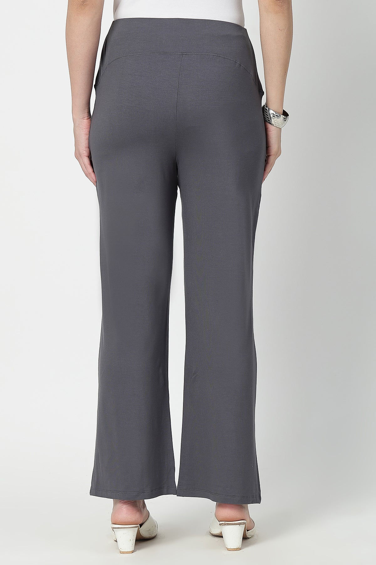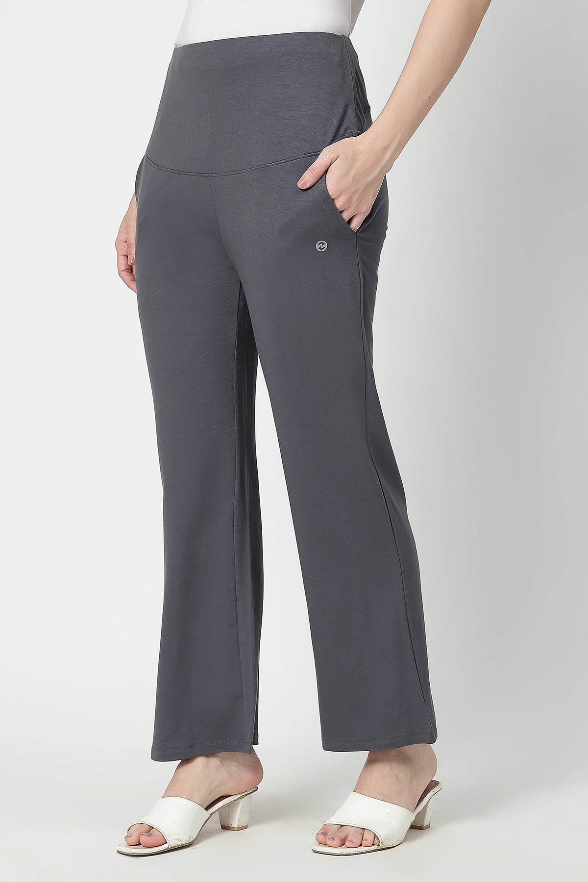 Flared High Waist Maternity Pants with Pockets - Charcoal Grey