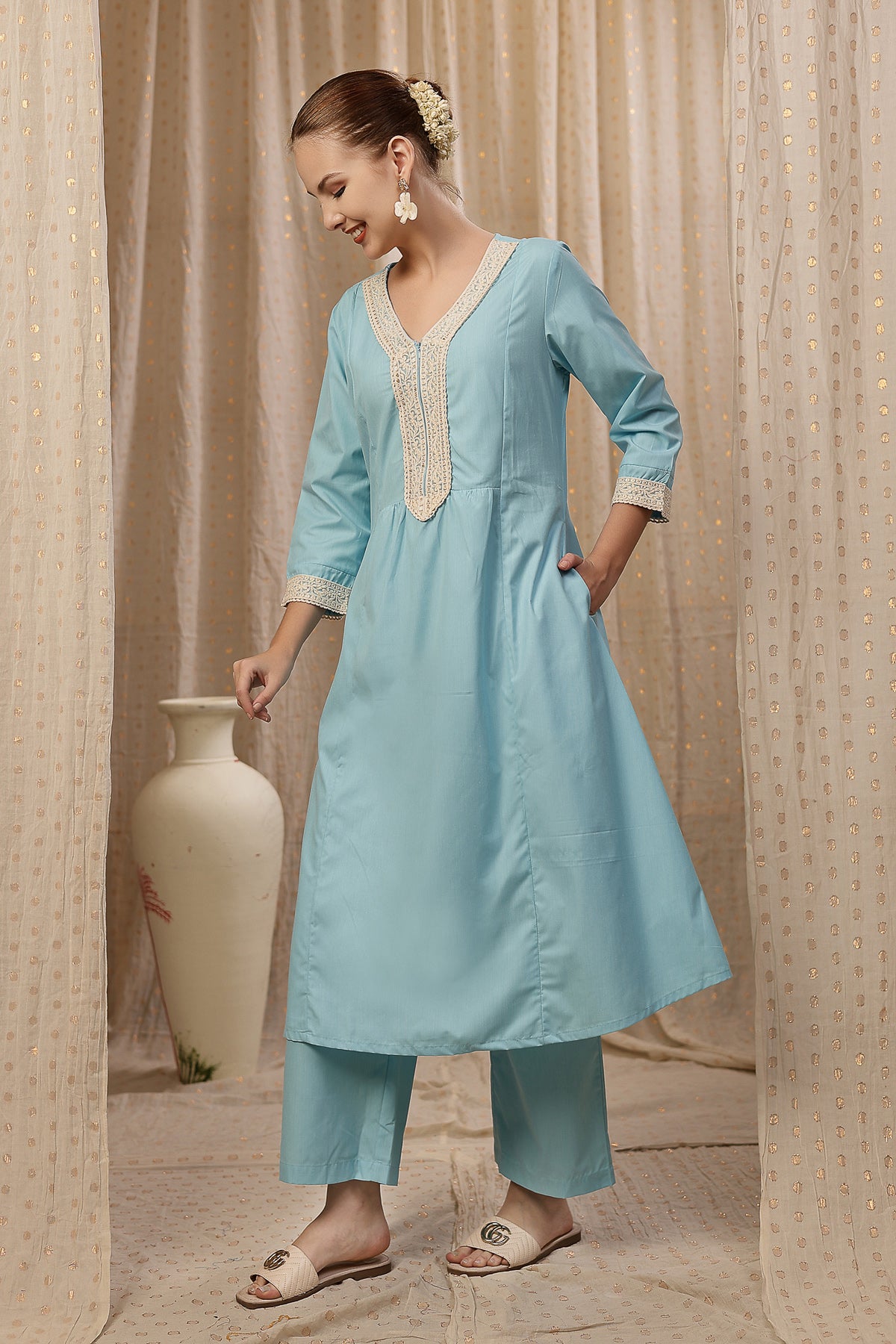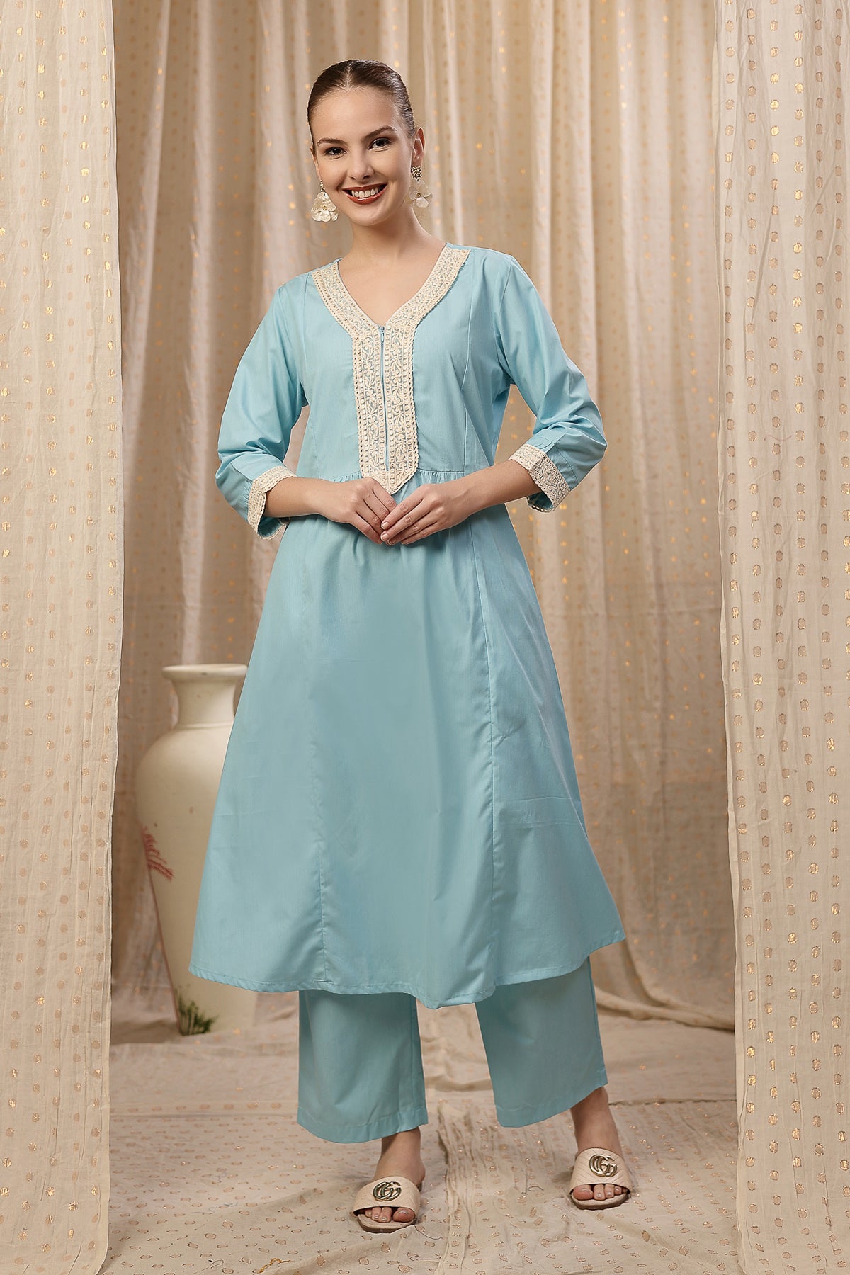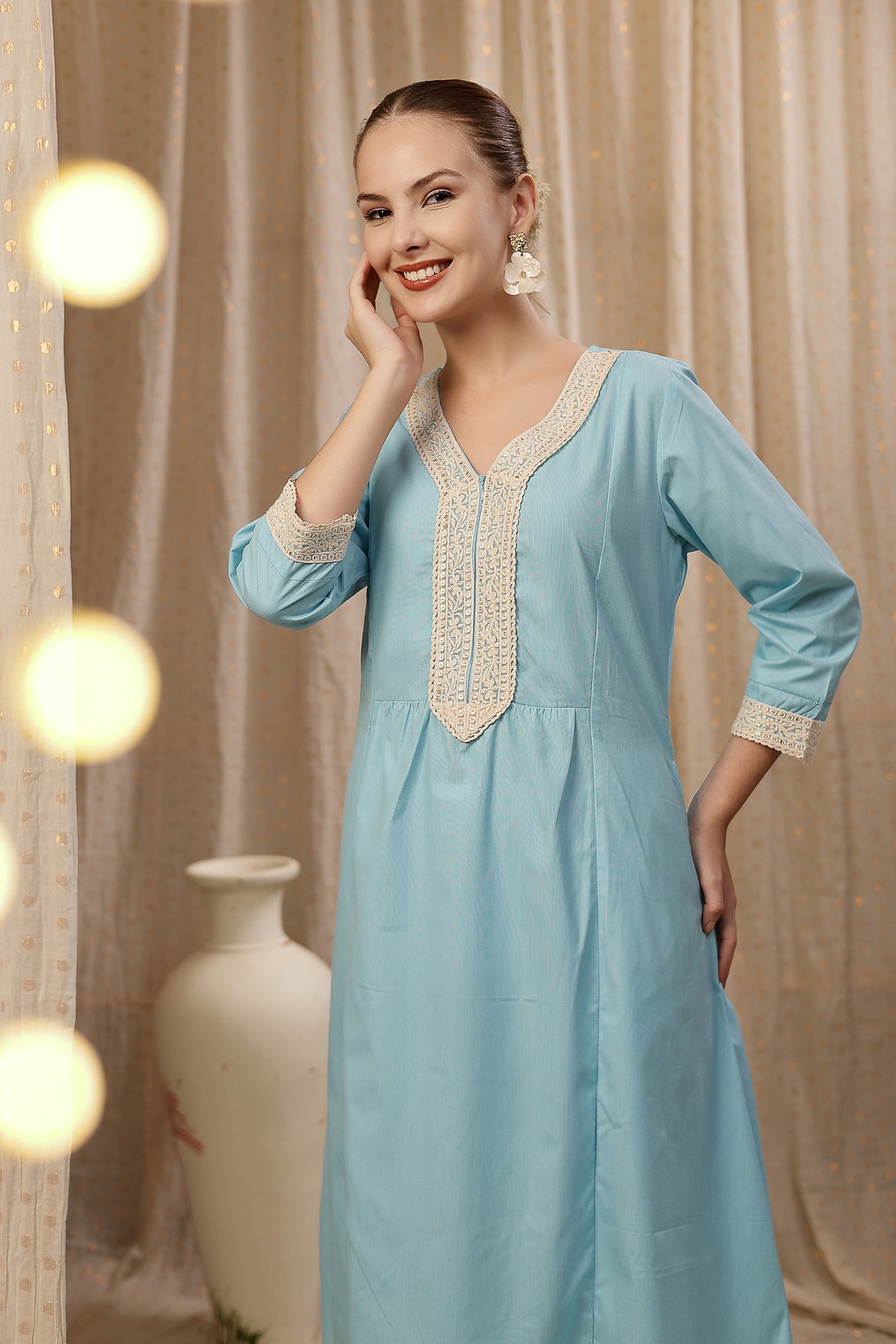 Elevate your everyday ethnic wear with this elegant lavender kurta pant set, thoughtfully designed for both style and functionality. Crafted in 100% breathable cotton, the kurta features a nursing-friendly zip opening that blends seamlessly with the design, making it perfect for new moms. The highlight of the piece is the delicate lace detailing along the neckline and sleeve hems, adding a touch of sophistication. The straight-cut pants ensure comfort, while the kurta’s practical side pocket offers convenience.