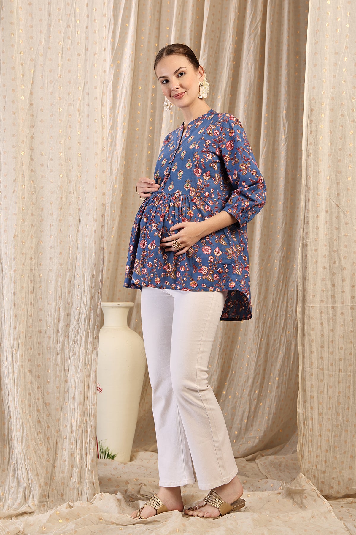 Crafted from100% soft and breathable cotton fabric, this top offers a relaxed fit that adapts to your changing body during pregnancy and continues to provide comfort and functionality post-birth.