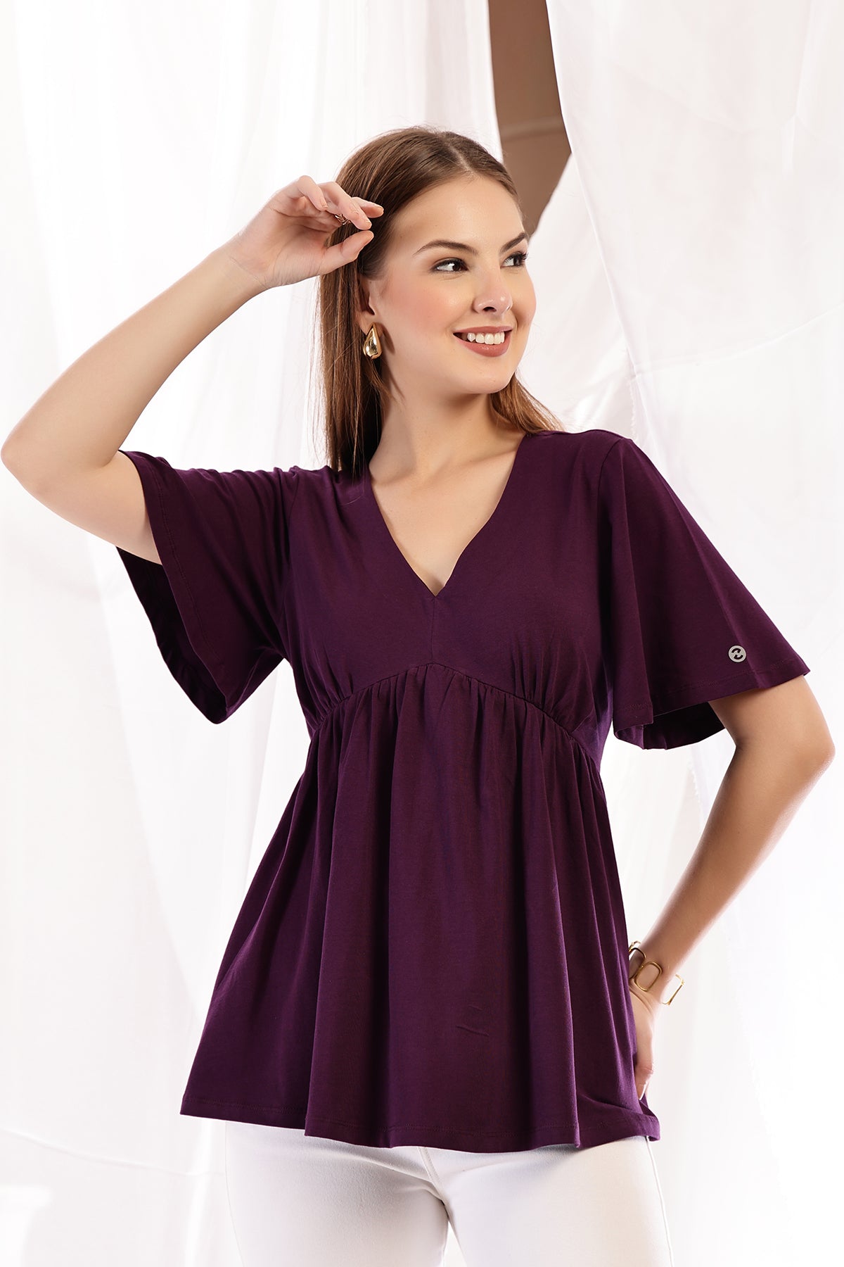 Pair this versatile top with black jeggings or maternity denims for a chic everyday look. Add statement earrings or a sleek watch to elevate your style while staying comfortable. Perfect for casual outings, work-from-home, or relaxed evenings.